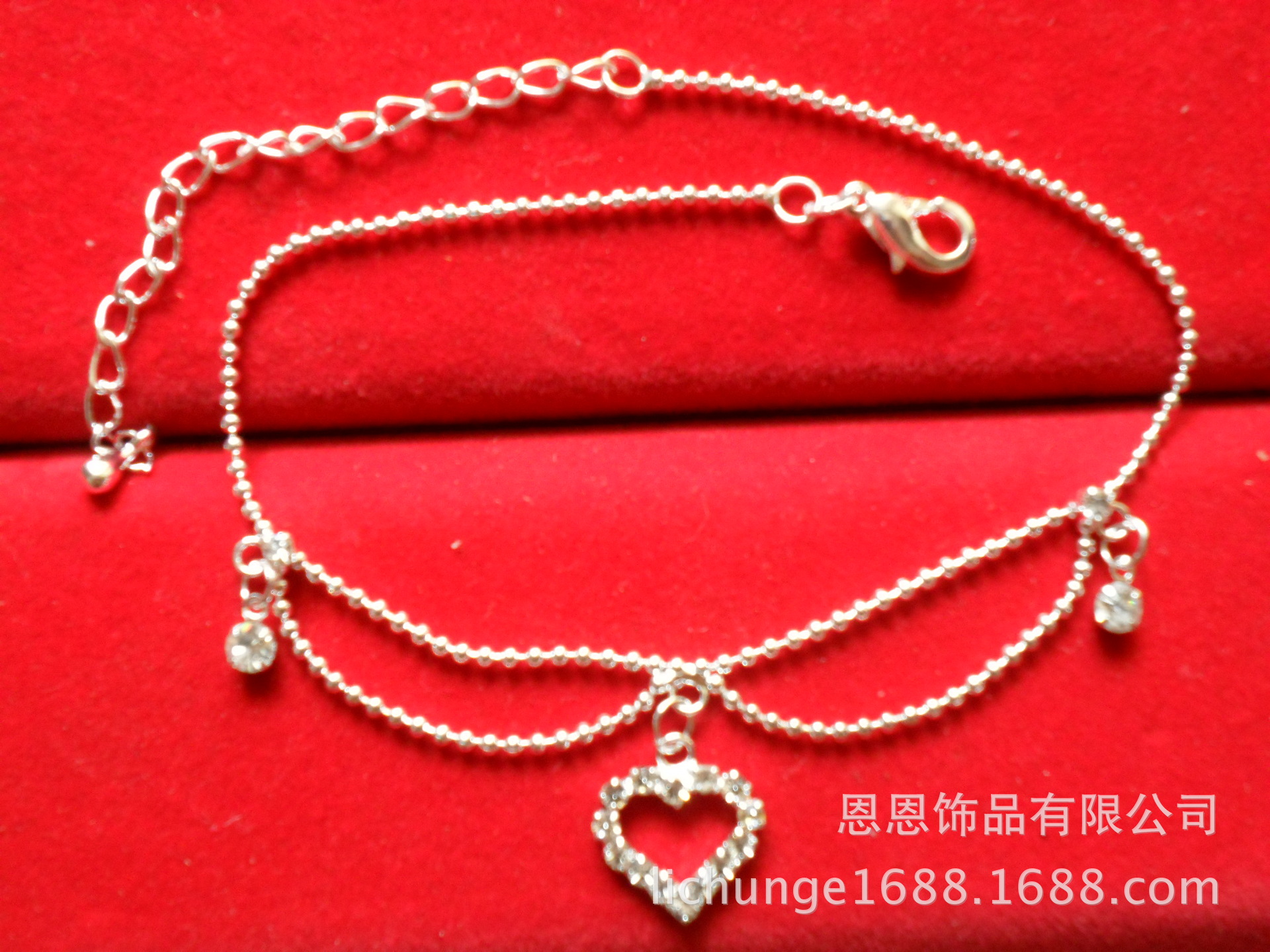 欧美时尚心型脚链 异国情调女式百搭镶钻脚饰