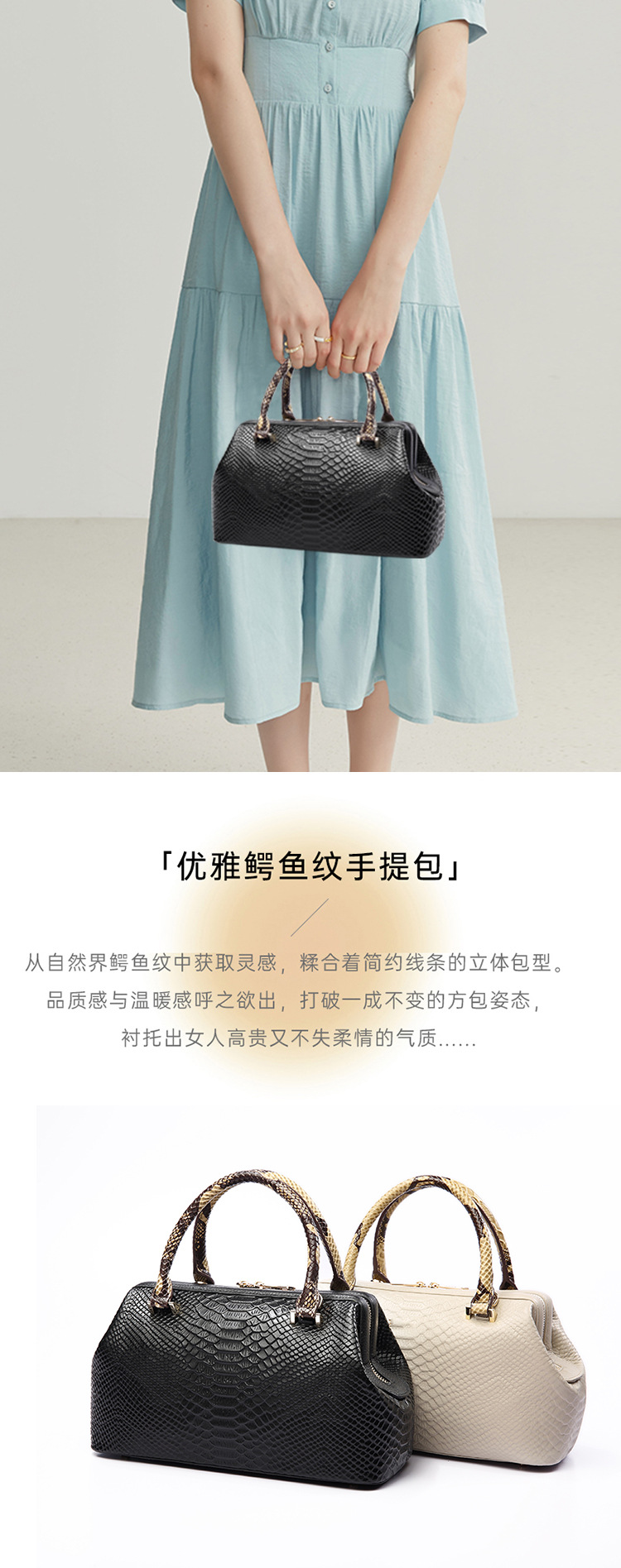 头层牛皮鳄鱼纹真皮女士手拎包2022新款高级感洋气跨境手提女包超值价:¥140