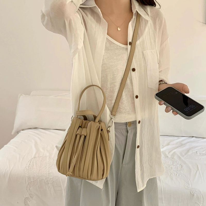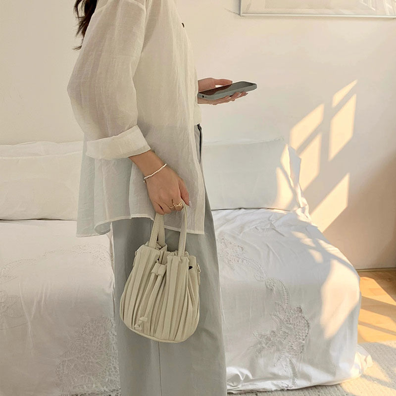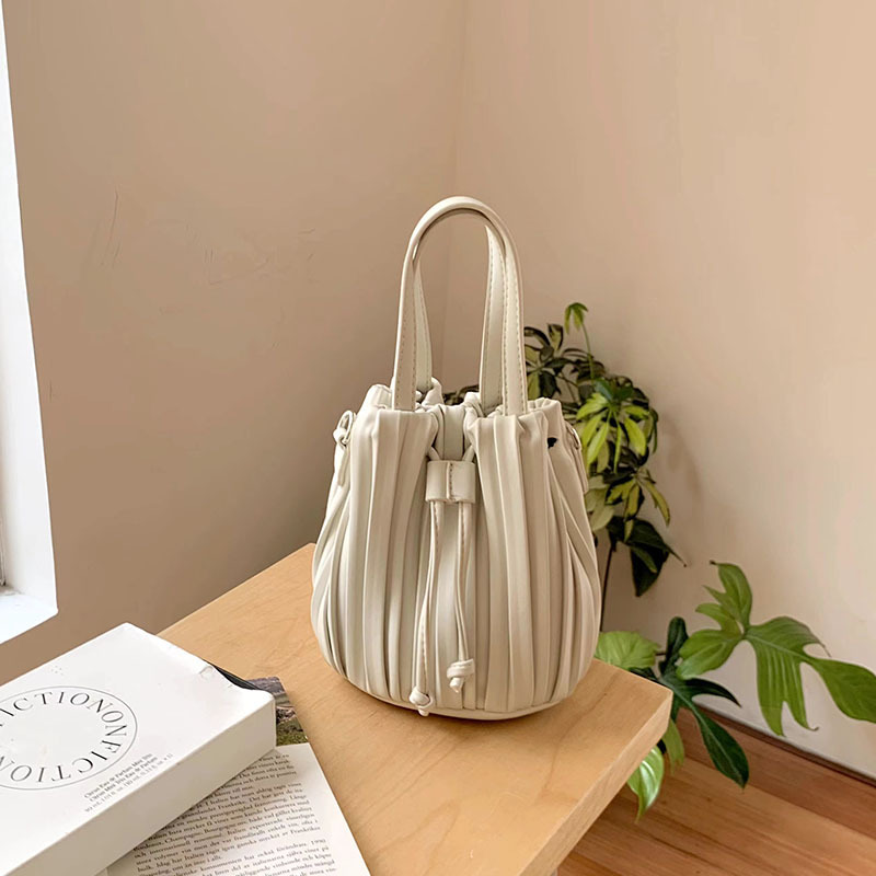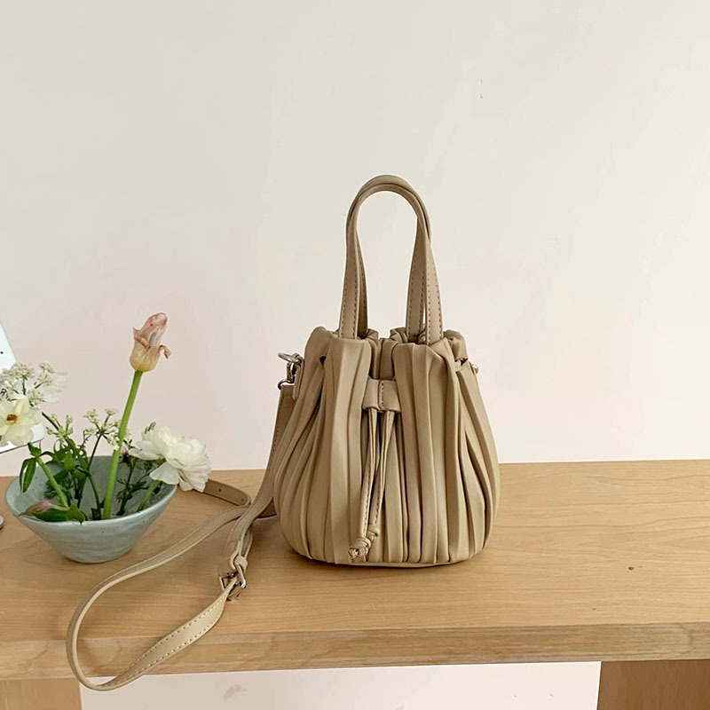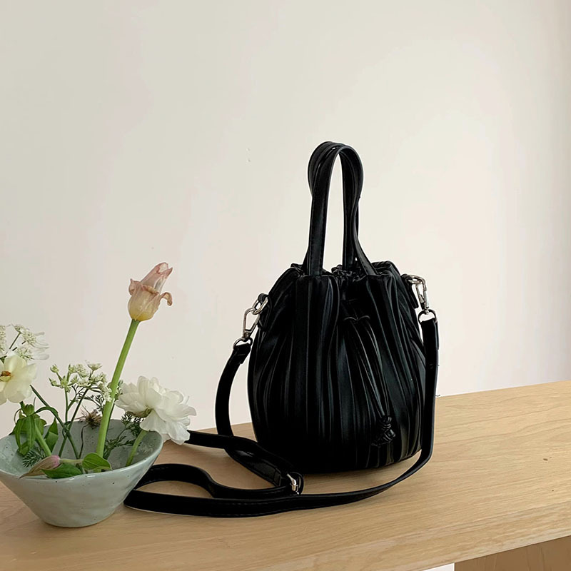 小众设计褶皱斜挎水桶包包女2024新款手提洋气时尚单肩腋下包