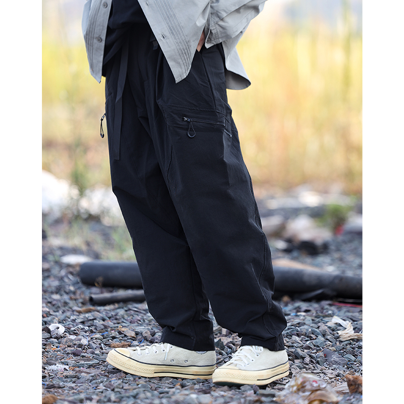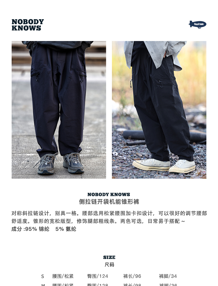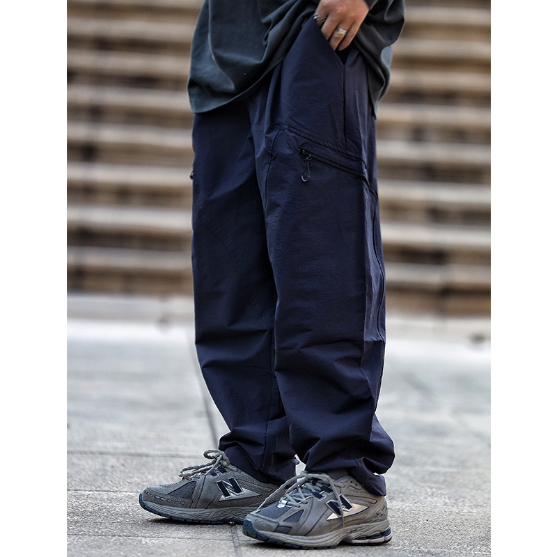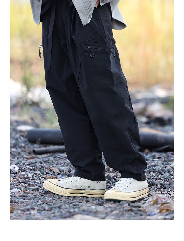 Nobodyknows 日系純色口袋機能廓形休閒百搭長褲工裝褲寬鬆潮褲子