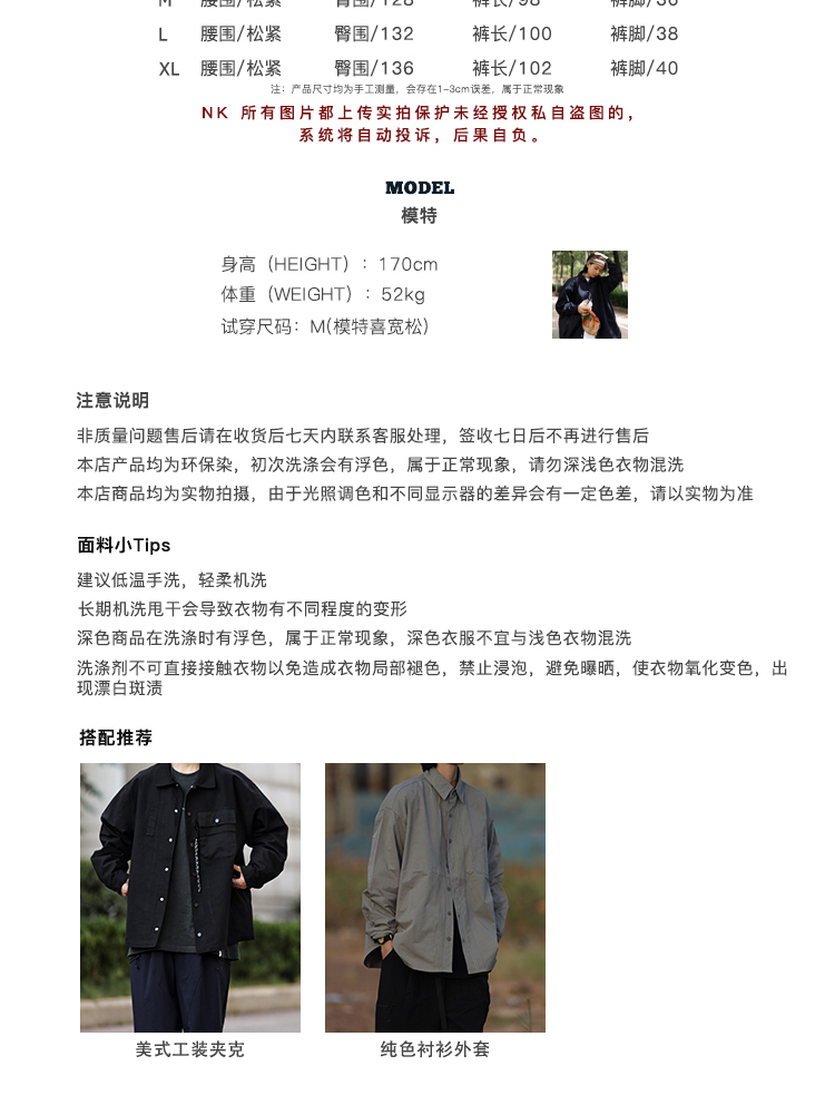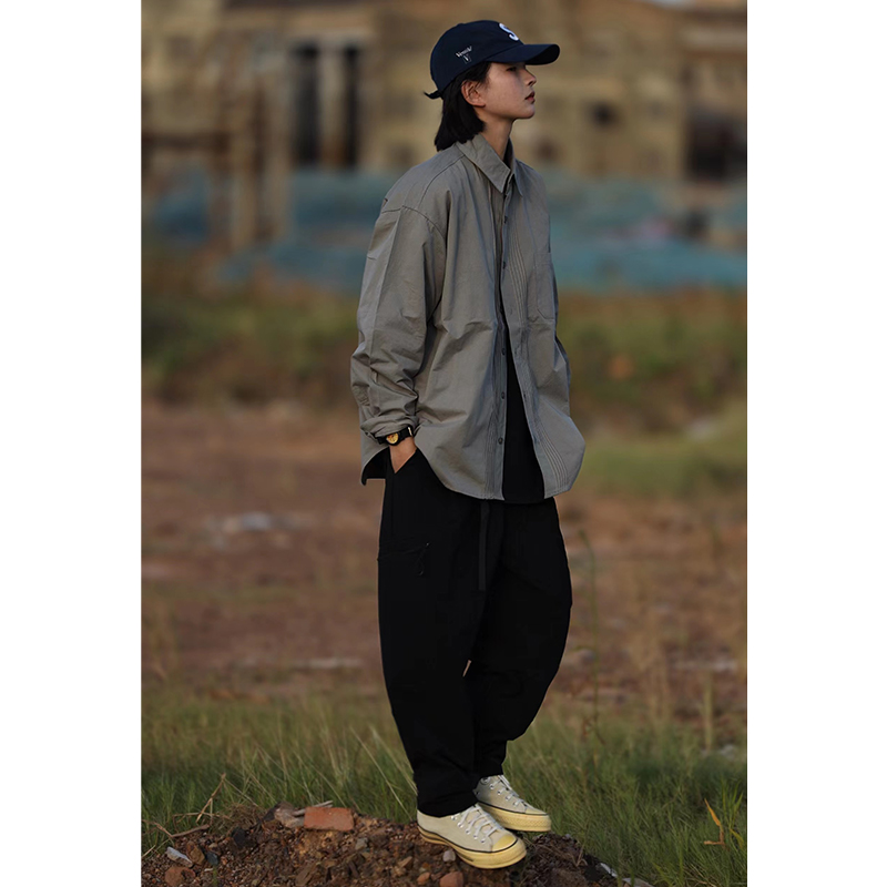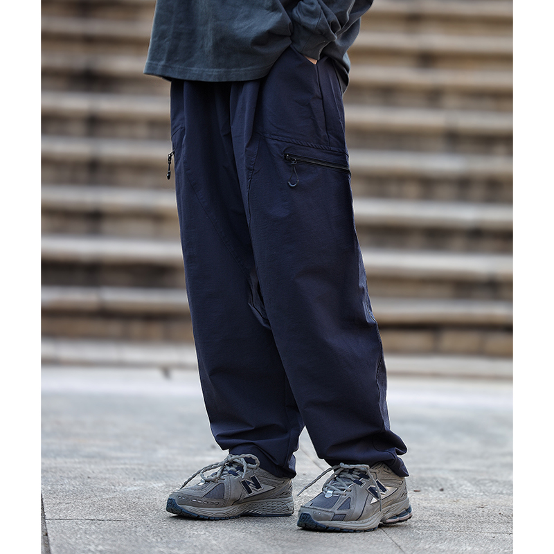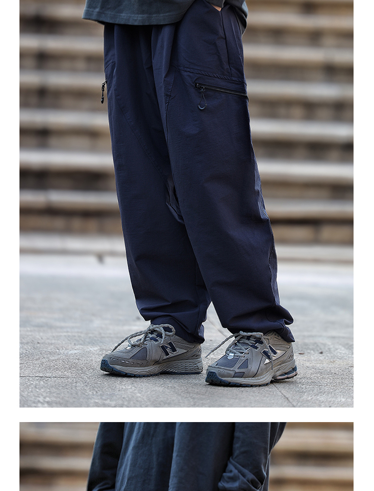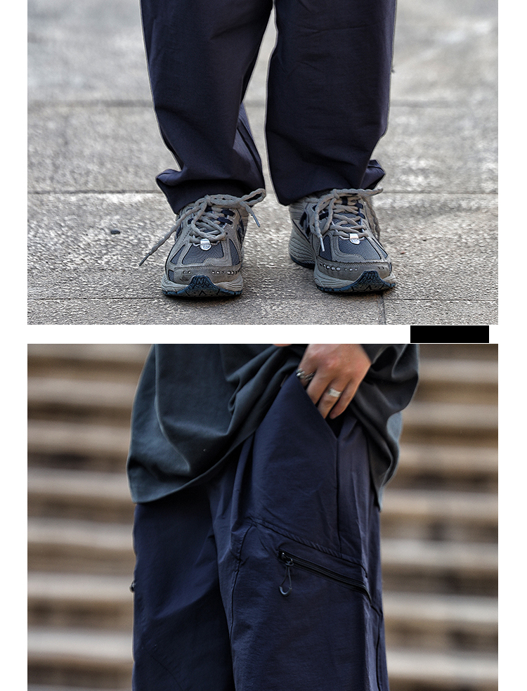 Nobodyknows 日系純色口袋機能廓形休閒百搭長褲工裝褲寬鬆潮褲子