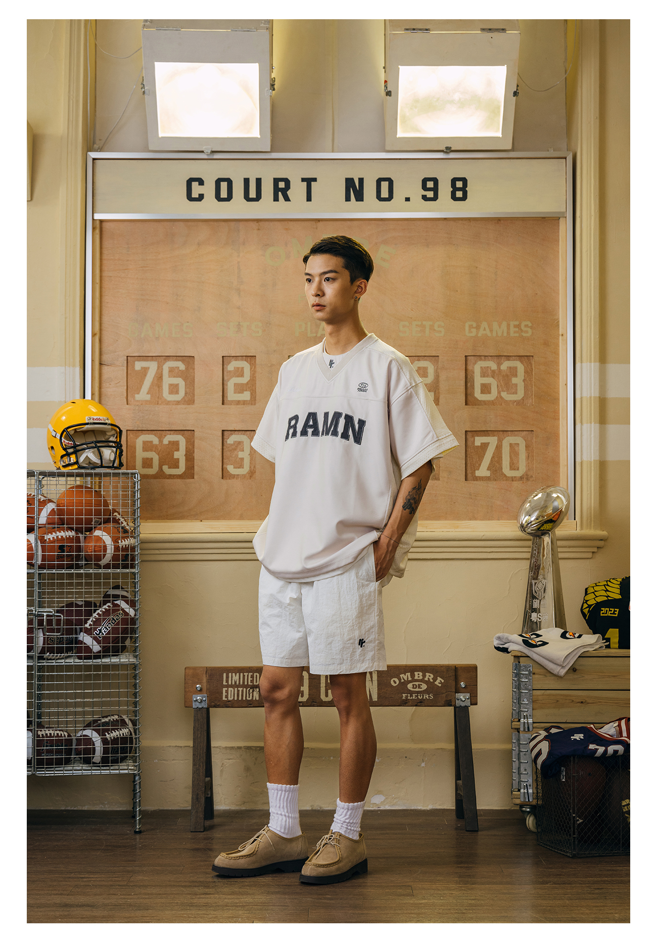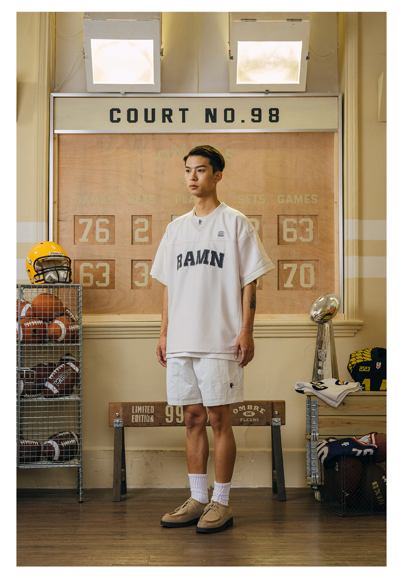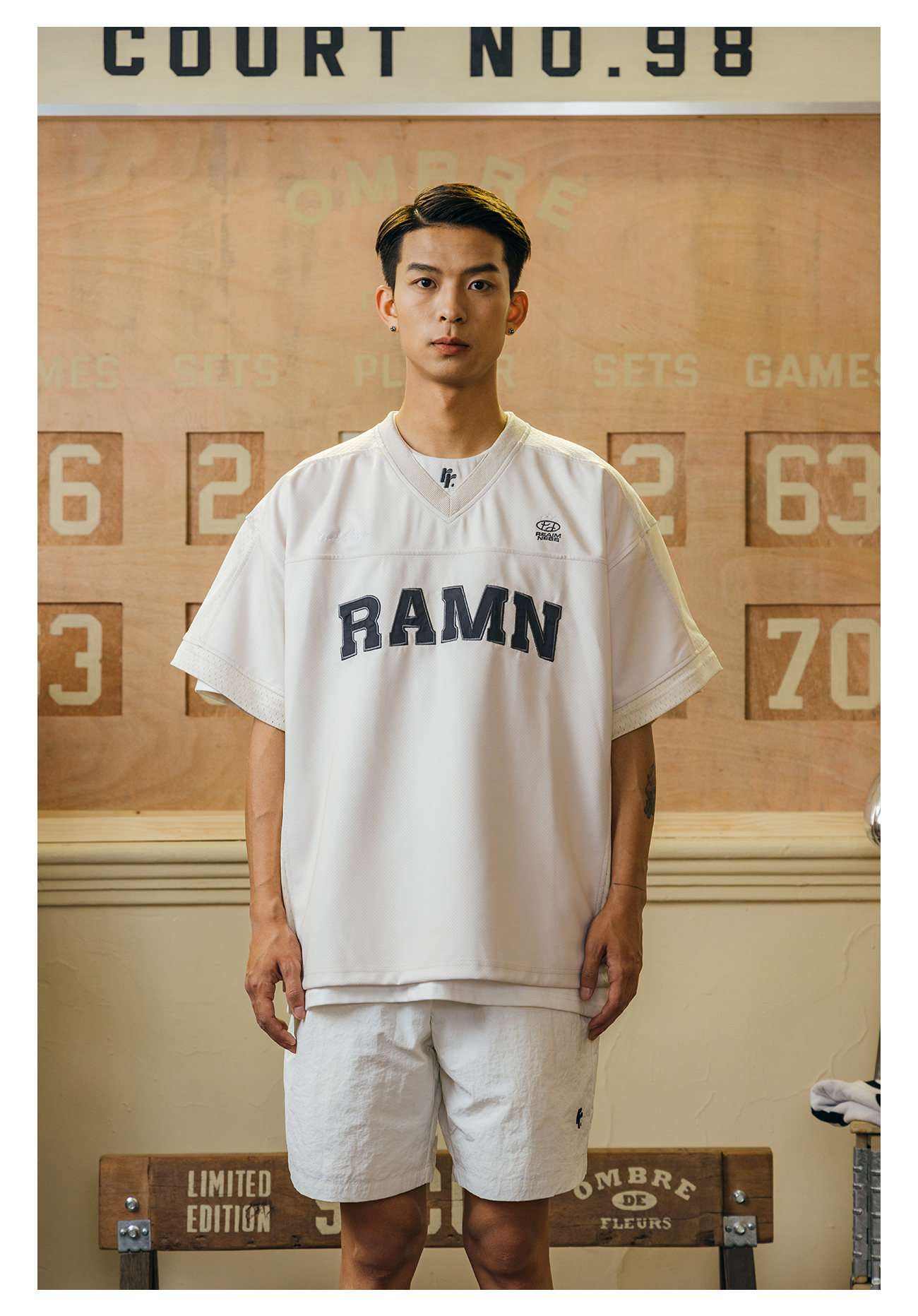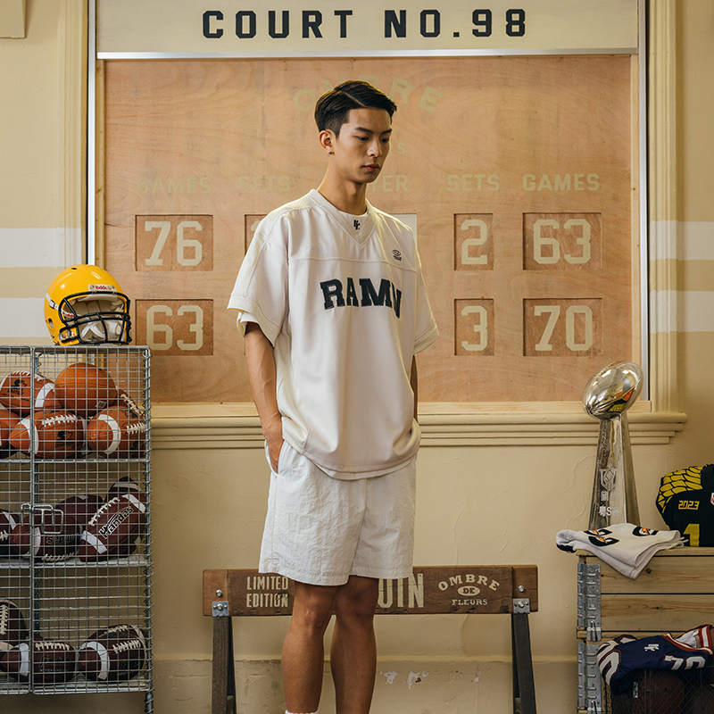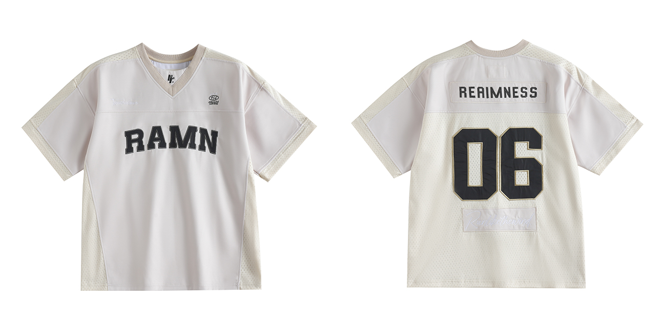 RAMN23SS夏季短袖T恤男美式復古運動休閒布貼繡橄欖球服reaimness