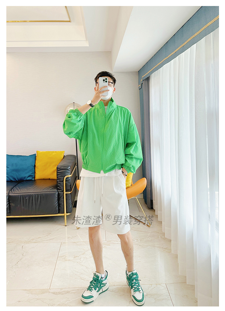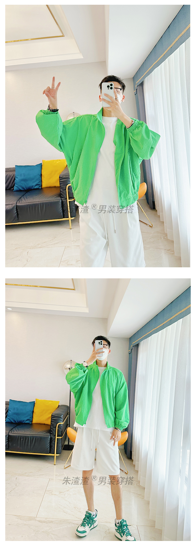 朱渣渣輕薄款蝙蝠袖透氣防曬服男2023夏季寬鬆潮流防曬衣夾克外套