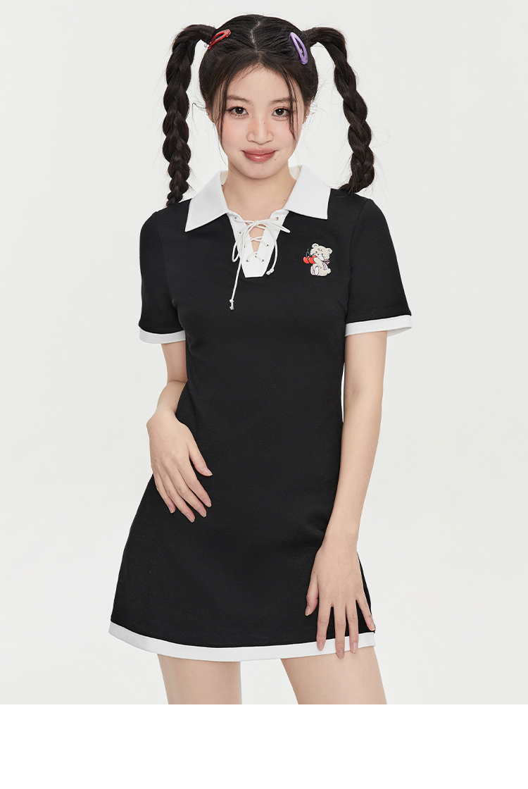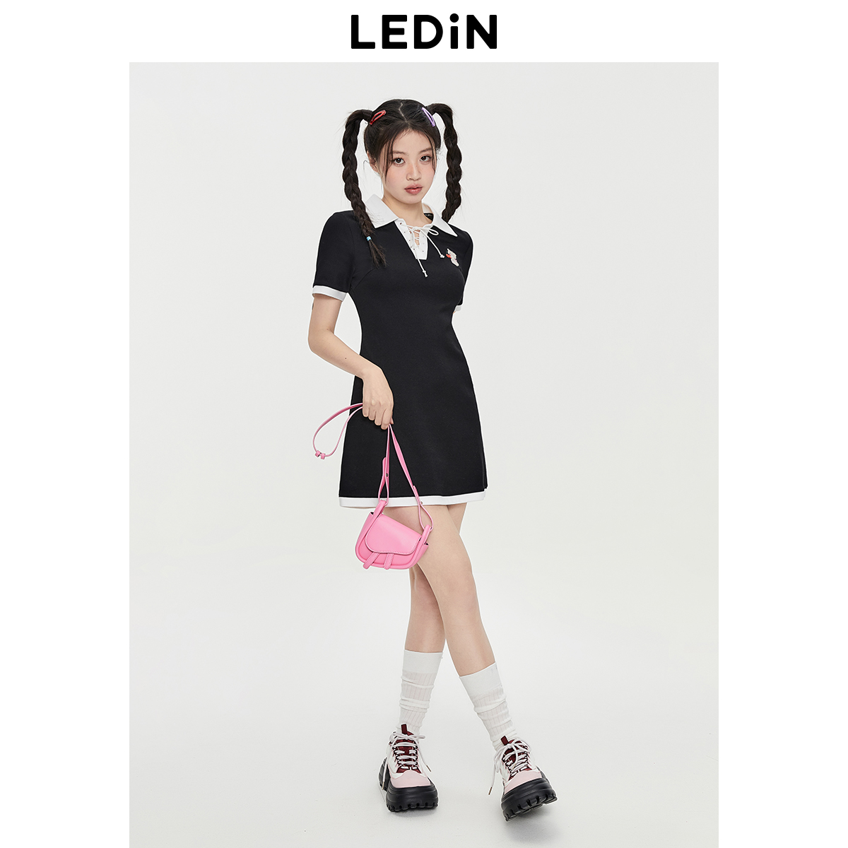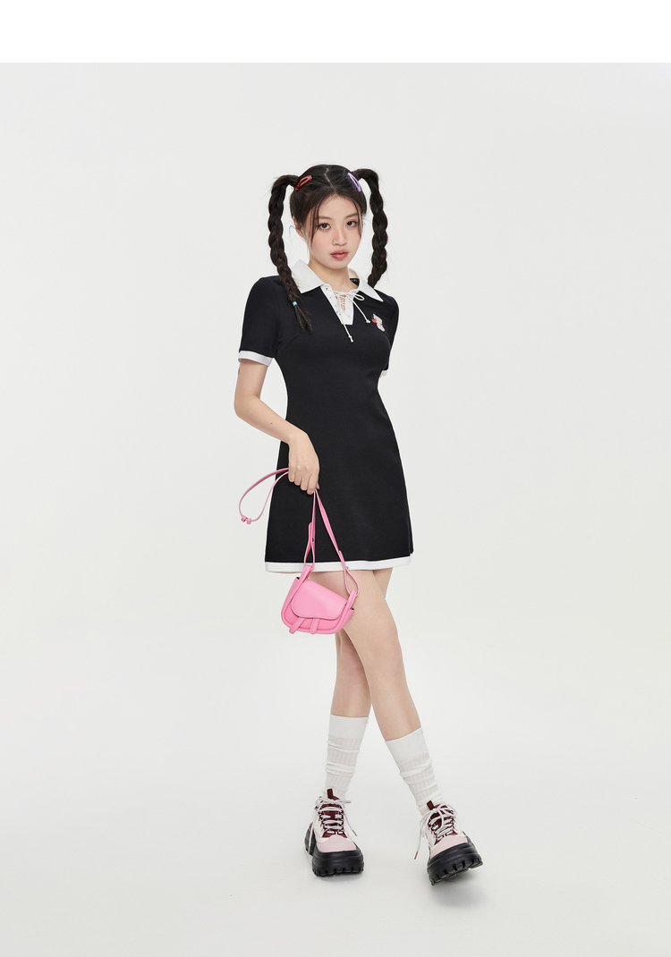 樂町甜美學院風洋裝2023春夏新款少女減齡綁帶polo裙運動洋裝
