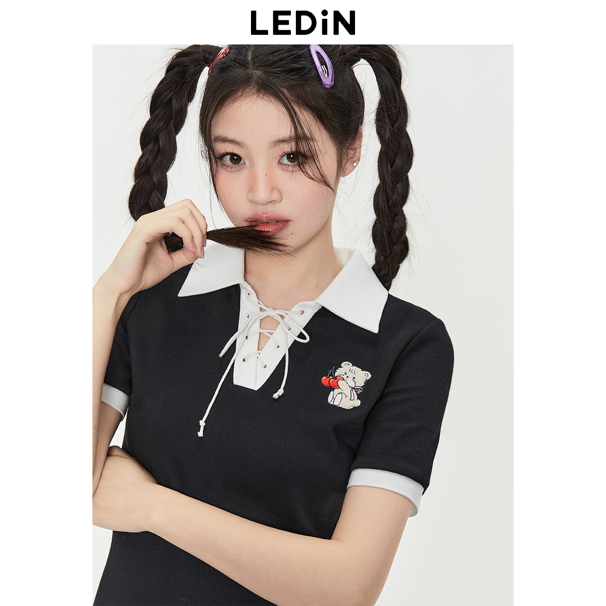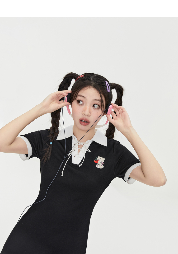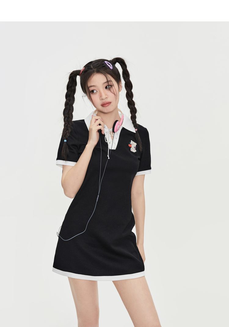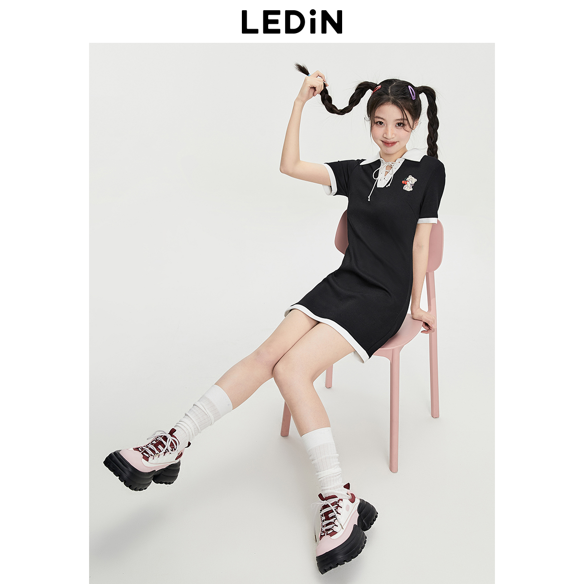 樂町甜美學院風洋裝2023春夏新款少女減齡綁帶polo裙運動洋裝