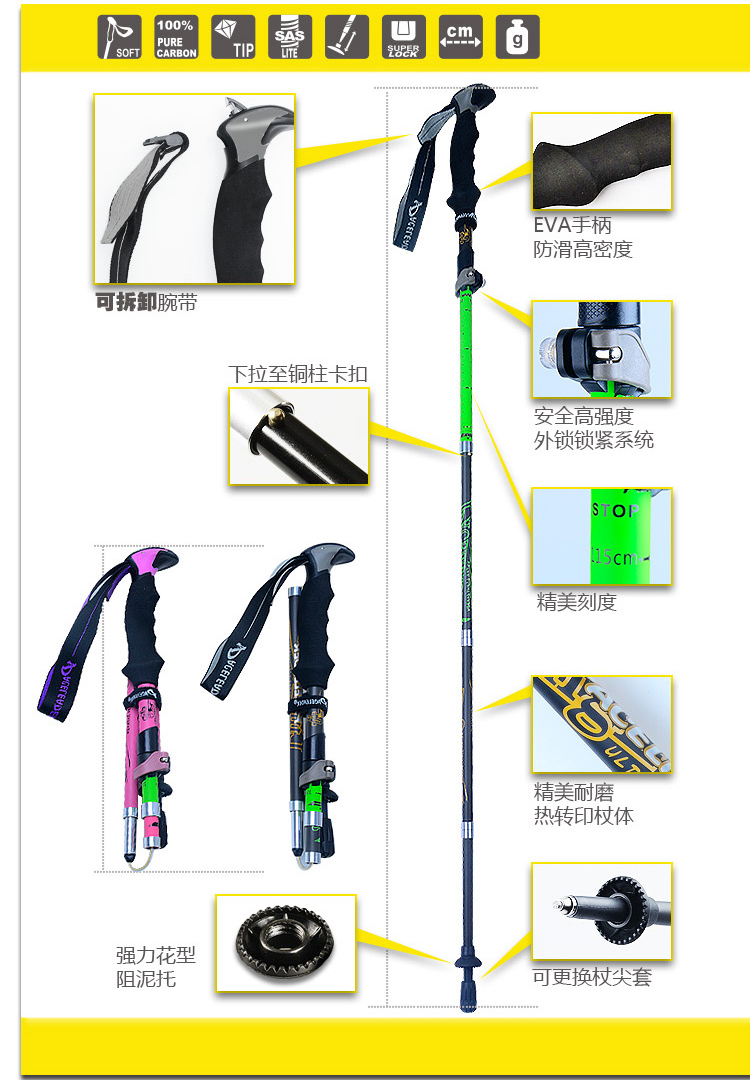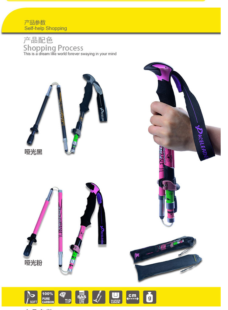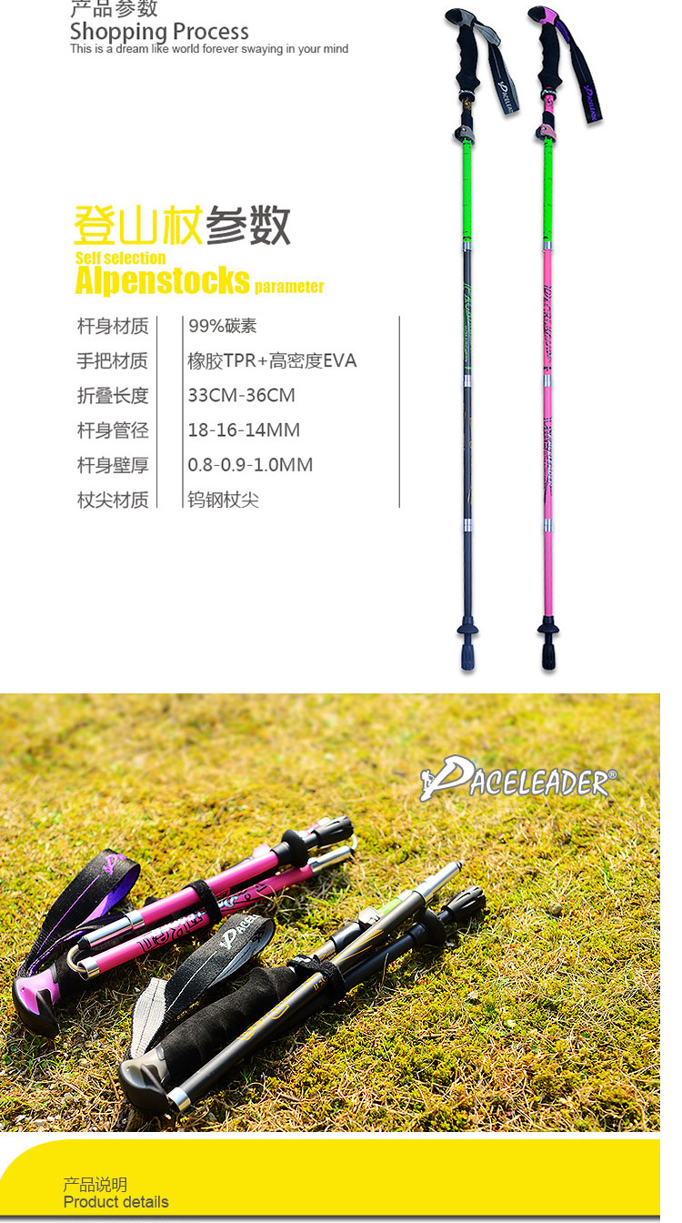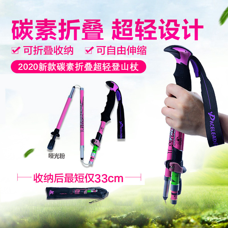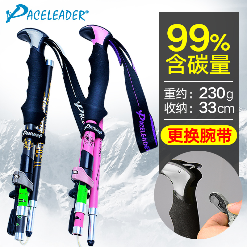 戶外登山杖99%碳素超輕 伸縮減震摺疊碳纖維徒步爬山裝備柺棍手杖