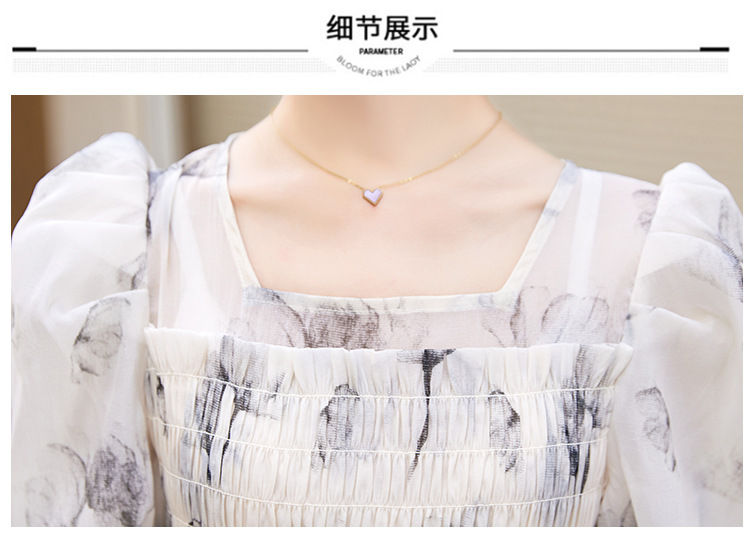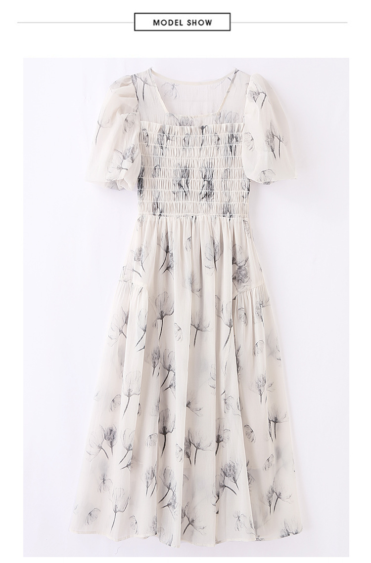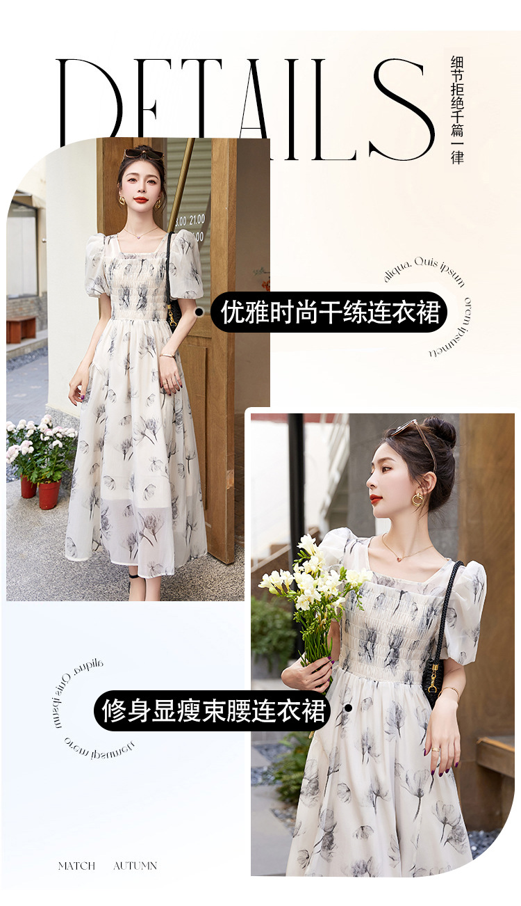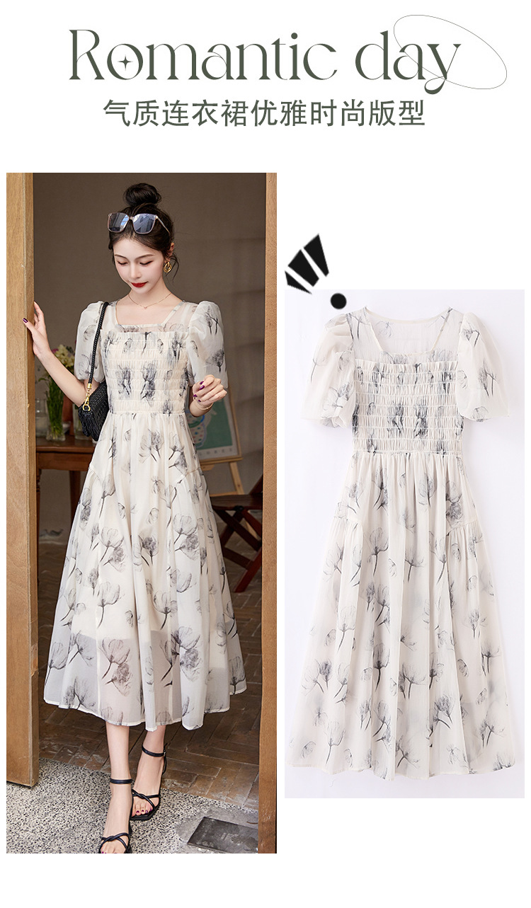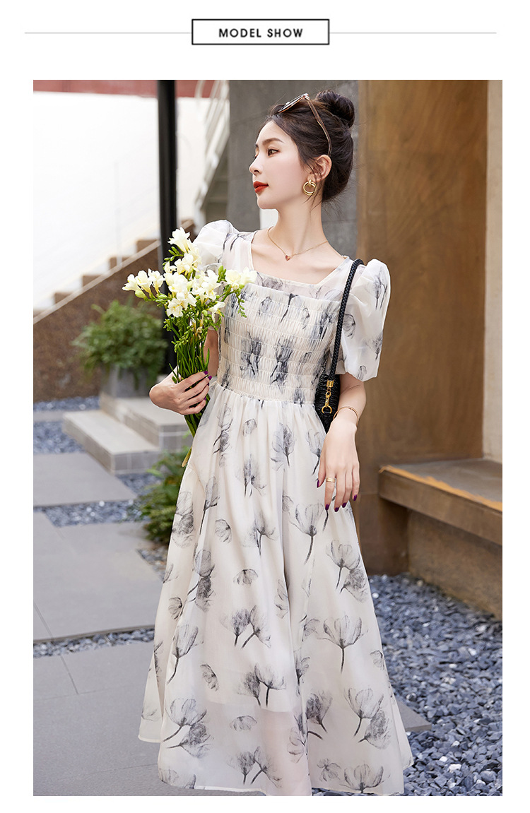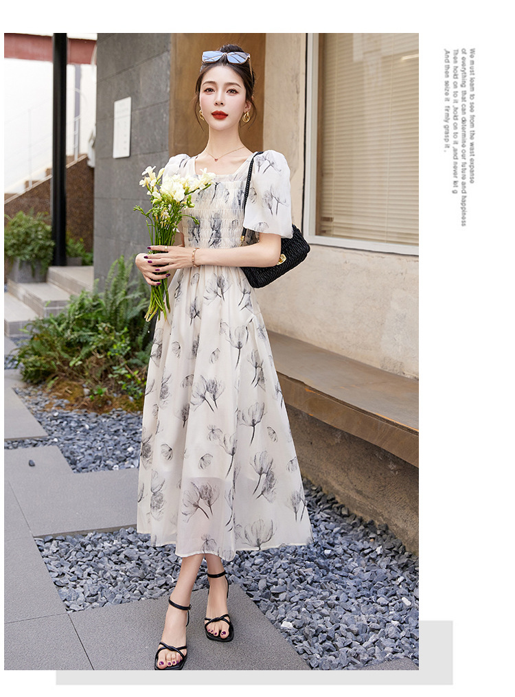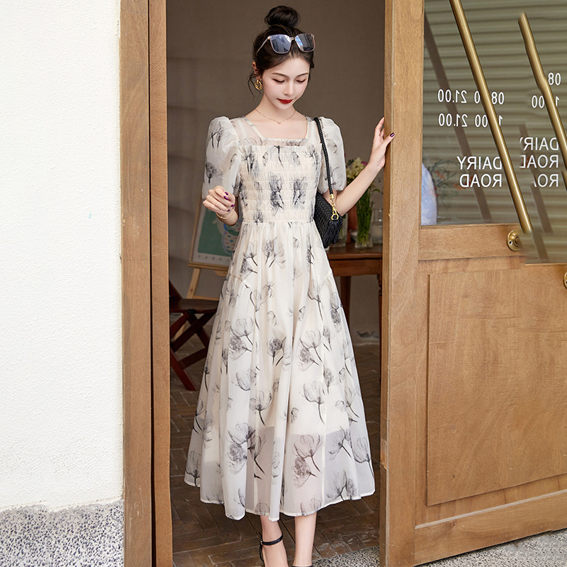 碎花连衣裙2023夏季新款茶歇法式设计感小众短袖泡泡袖仙女长裙子