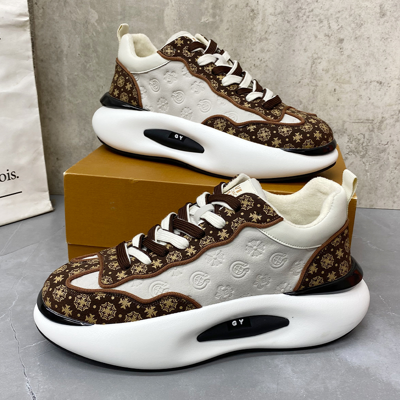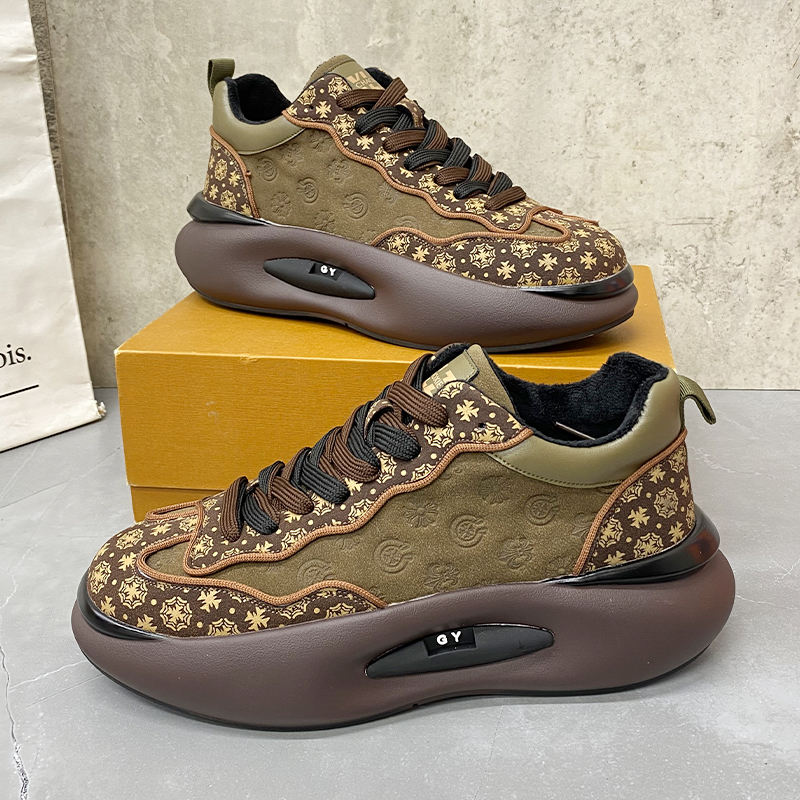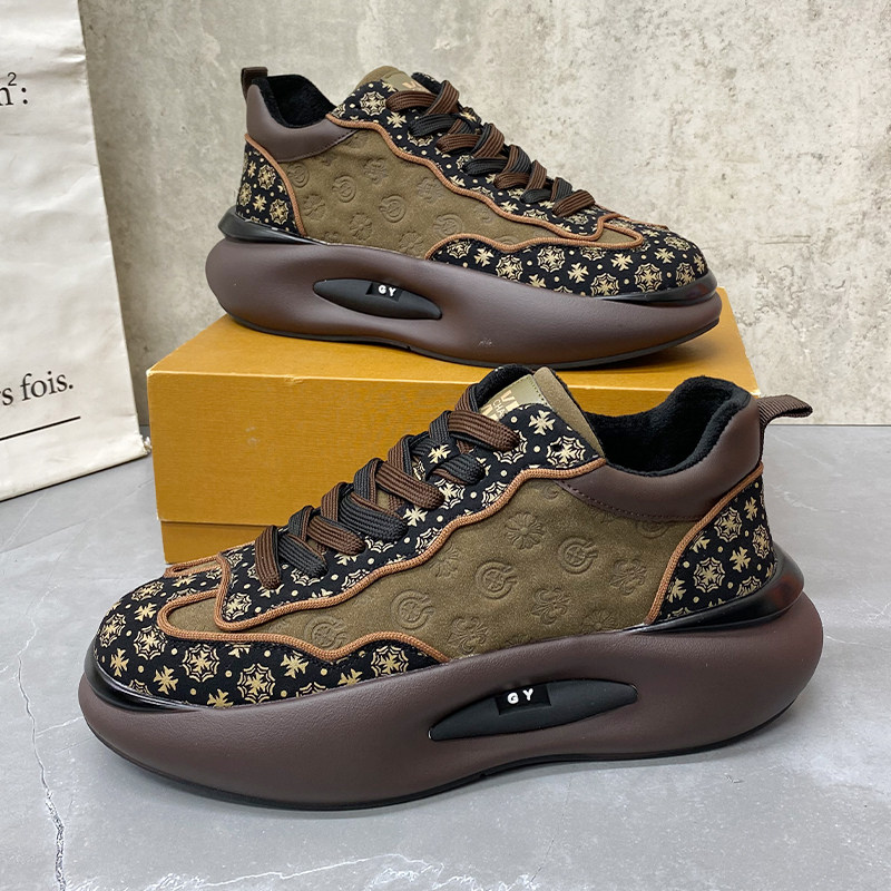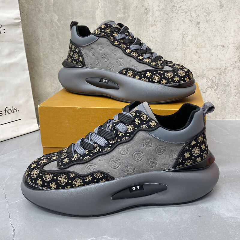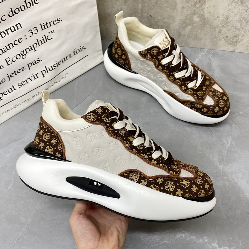 春季新款男鞋時尚潮牌增高老爹鞋復古印花低幫透氣網紅同款休閒鞋