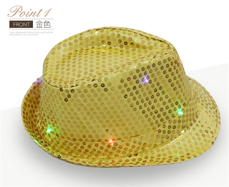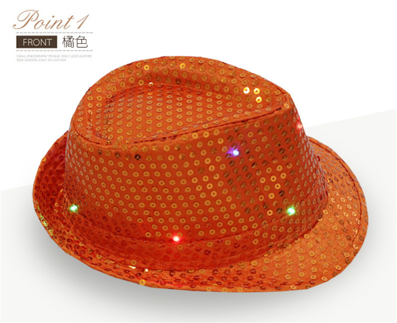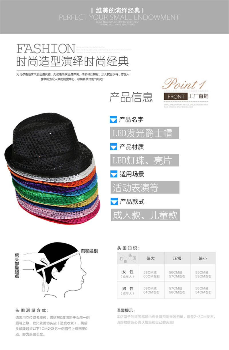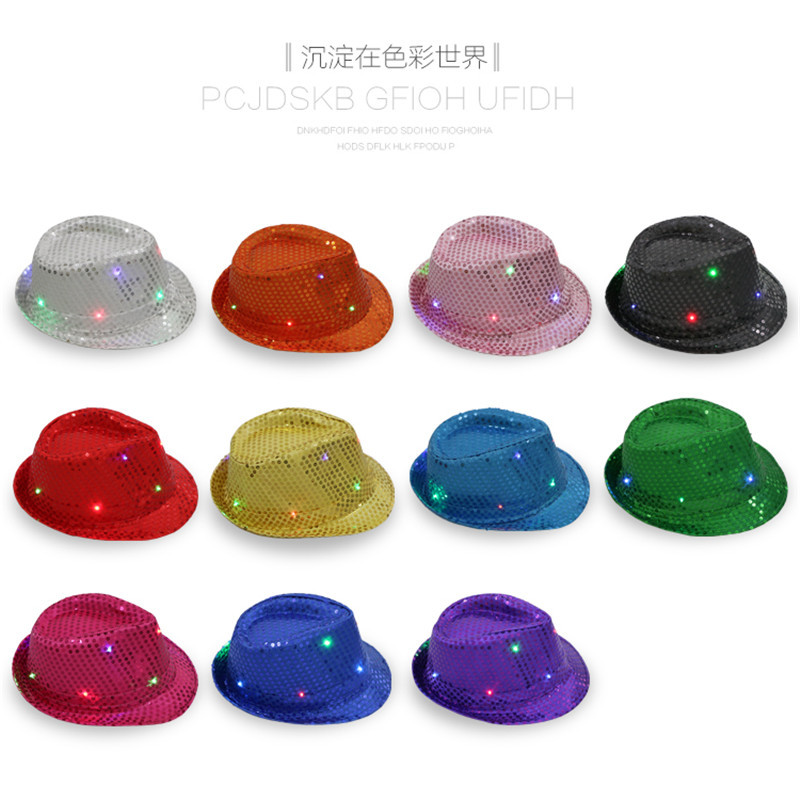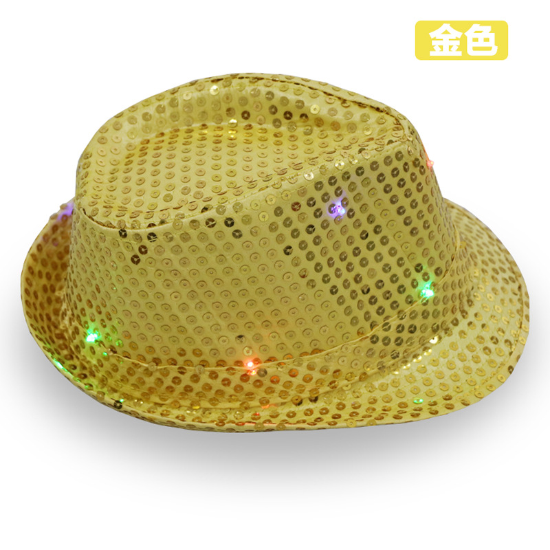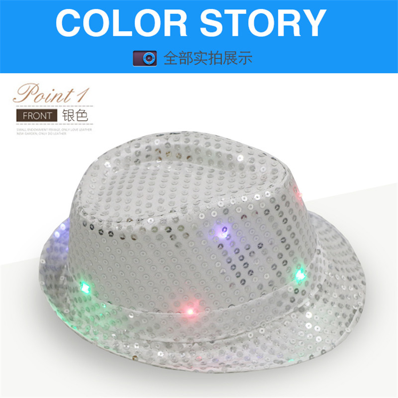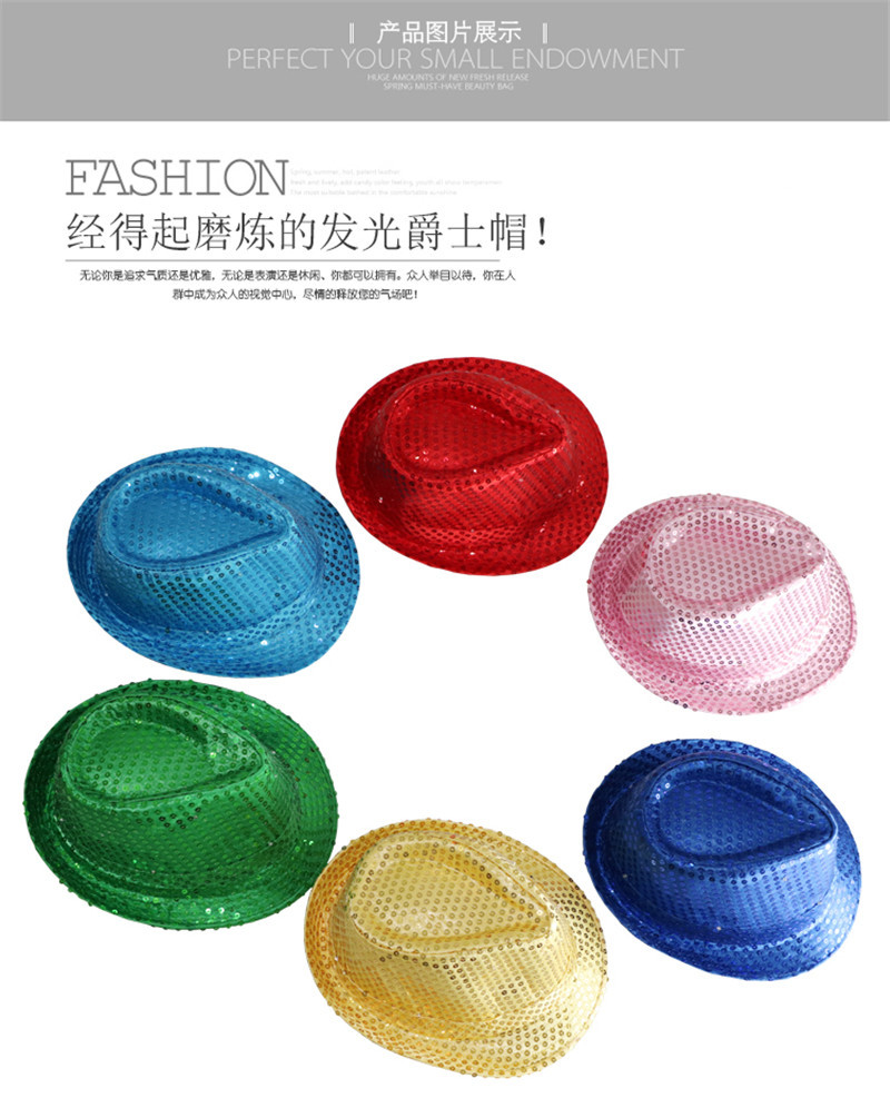 LED亮片发光爵士帽 舞台儿童节日表演道具闪光牛仔礼品帽子