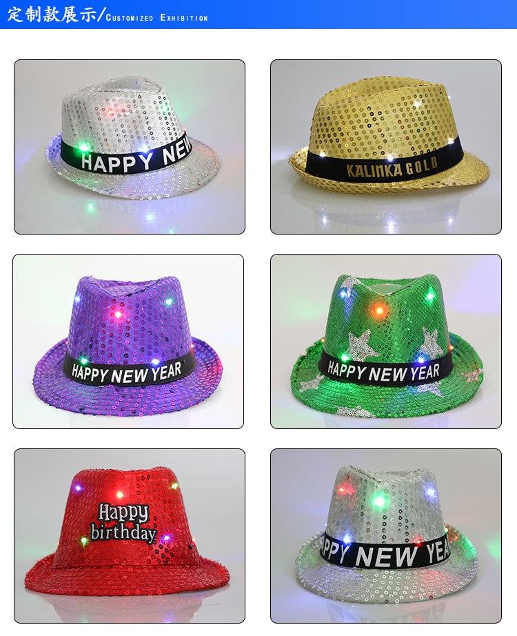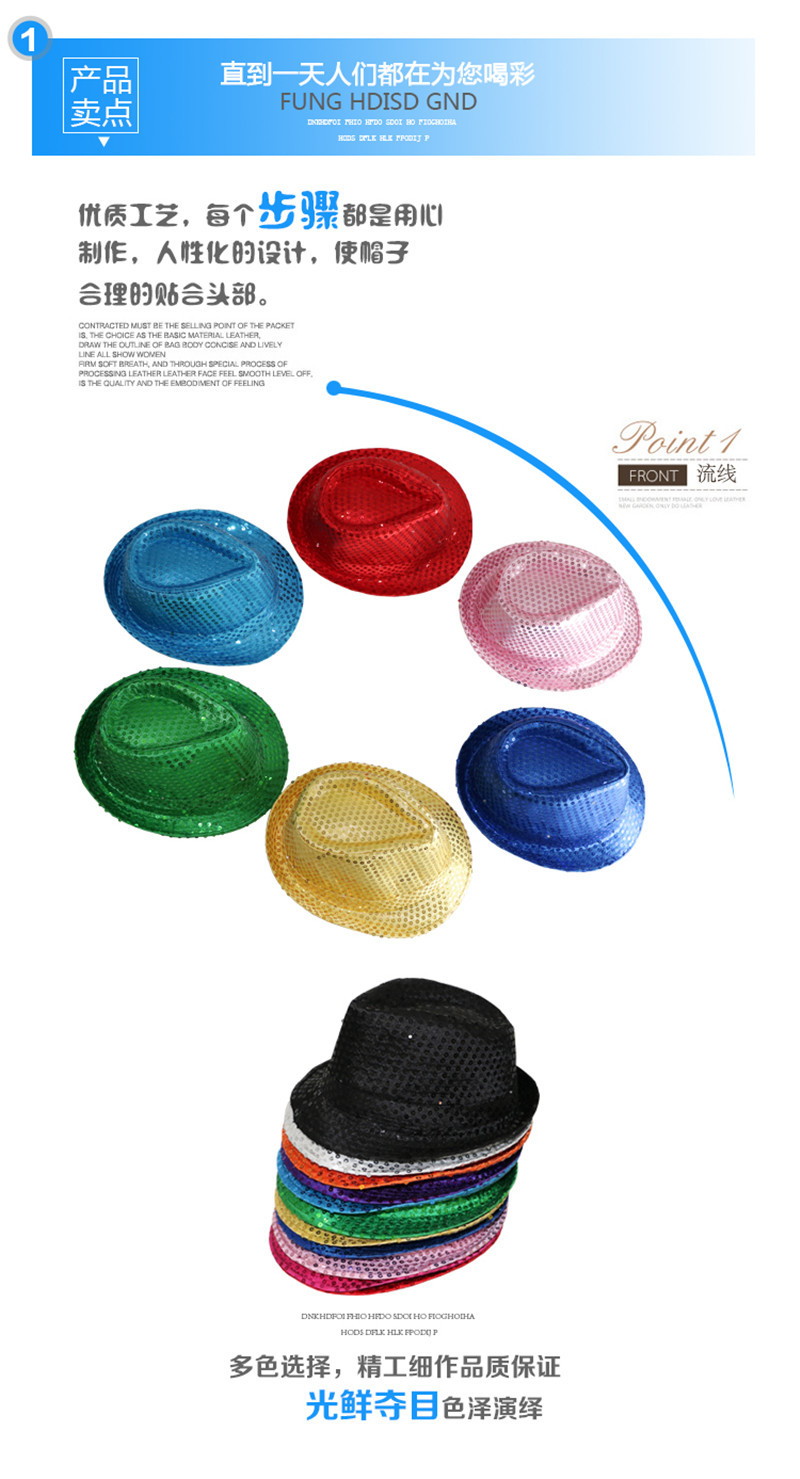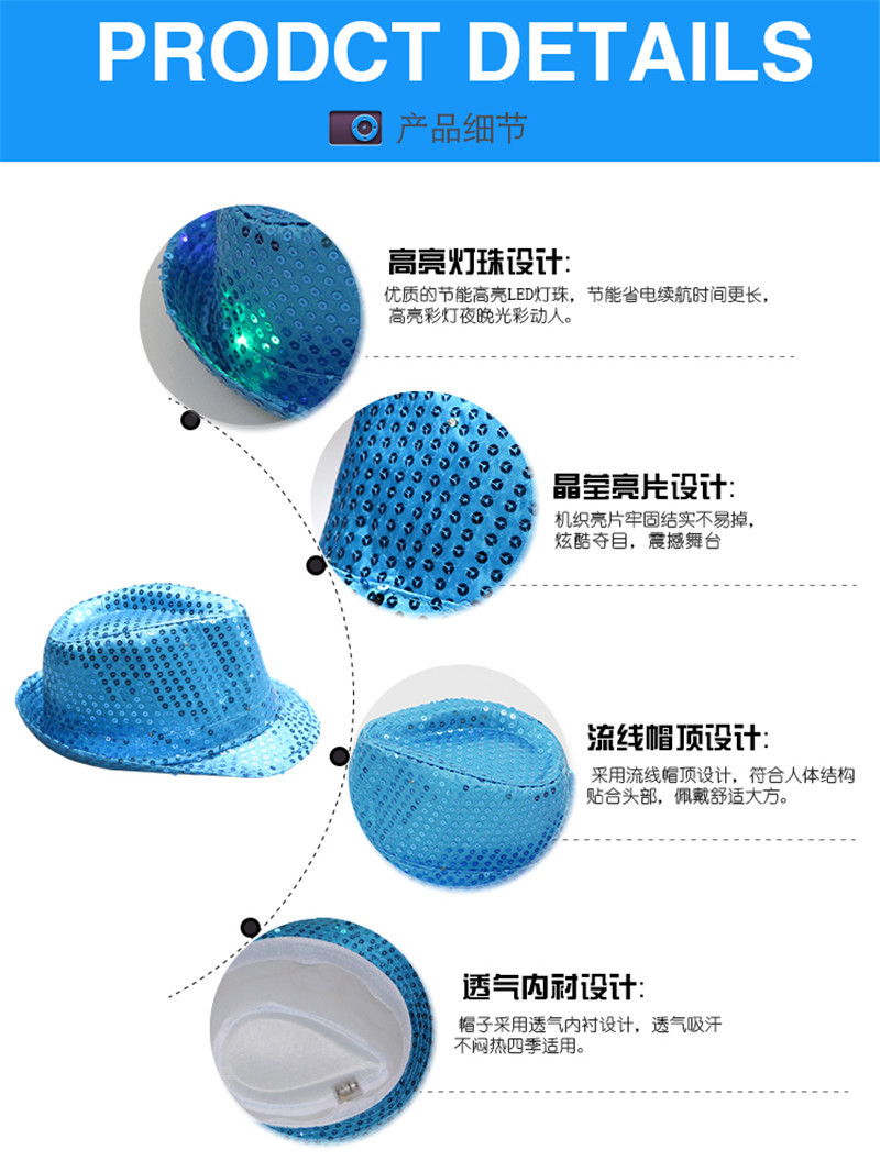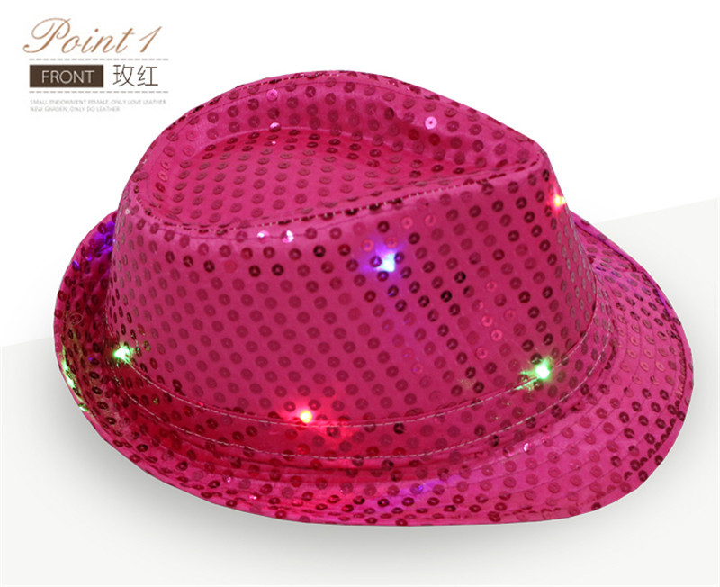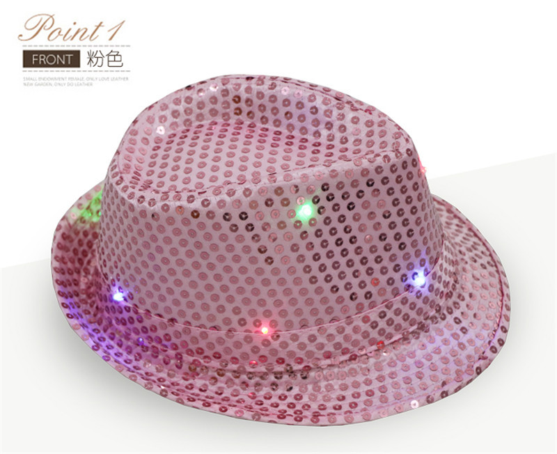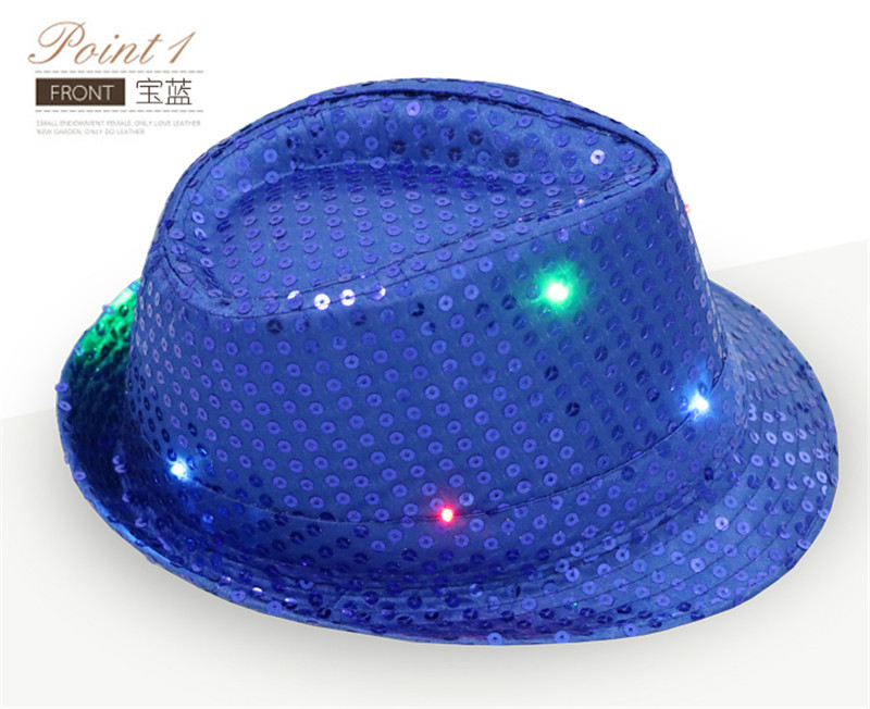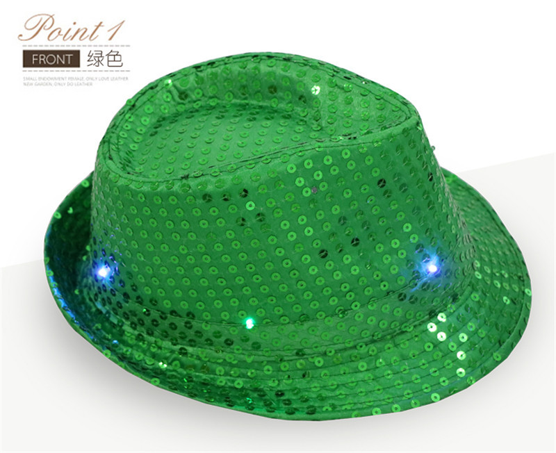 LED亮片发光爵士帽 舞台儿童节日表演道具闪光牛仔礼品帽子