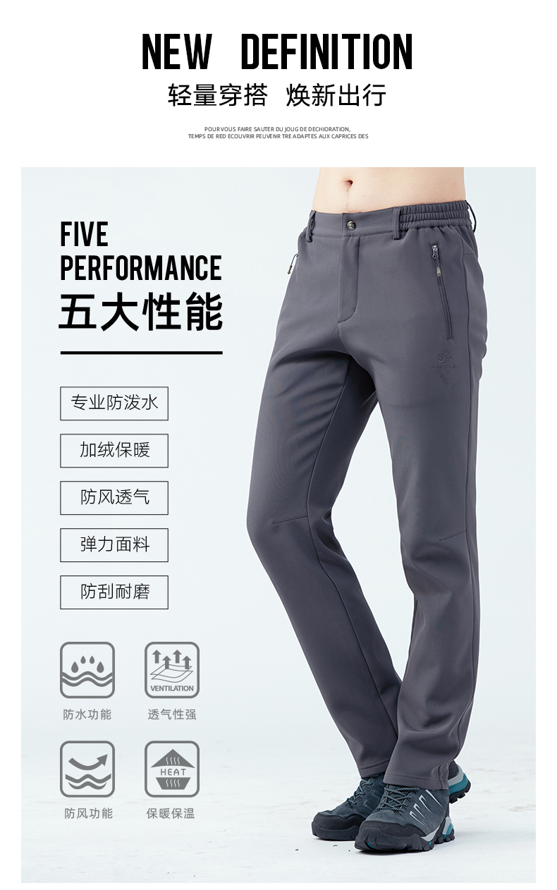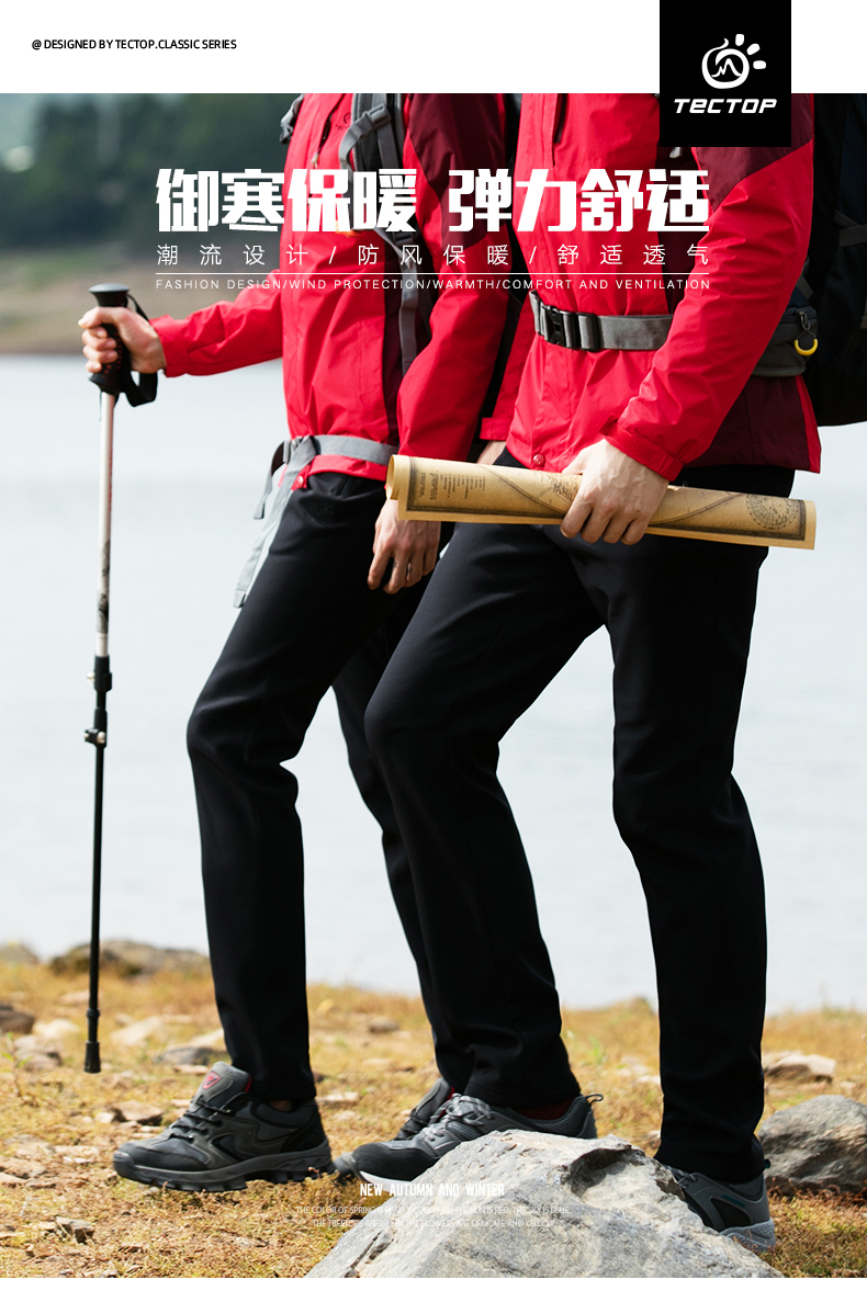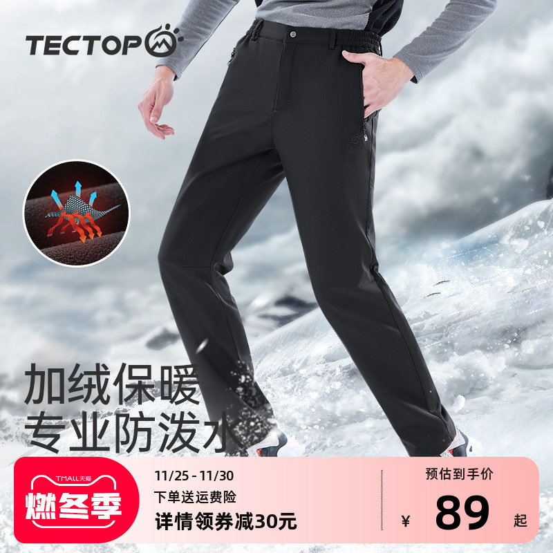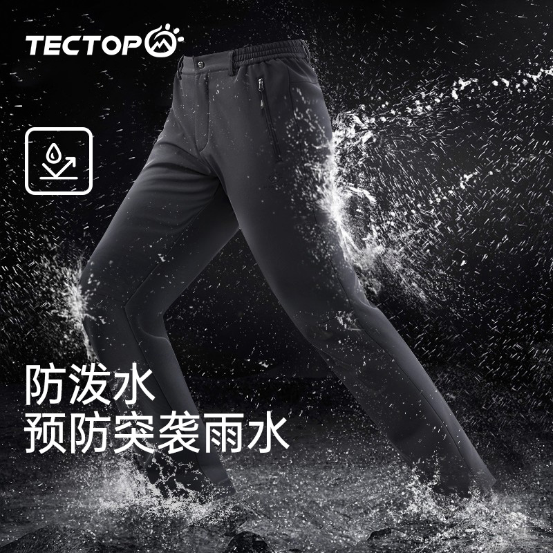 探拓戶外防風防水軟殼褲男衝鋒褲女秋冬季保暖登山加絨加厚滑雪褲