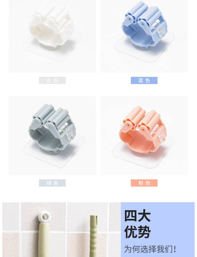 拖把挂钩免打孔浴室架子挂扫把夹卡座强力放卫生间壁挂置物架
