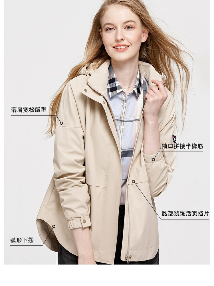 Hush Puppies暇步士春秋季新款女裝連帽休閒功能短外套|HJ-20591D