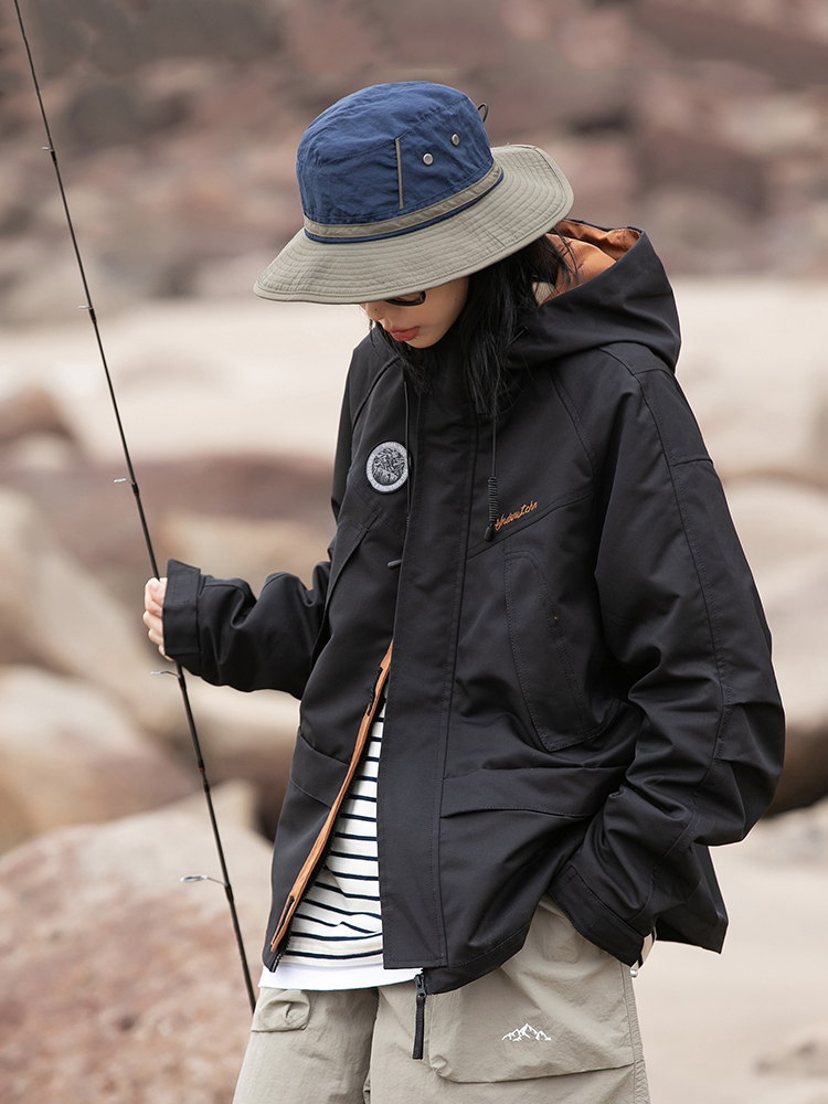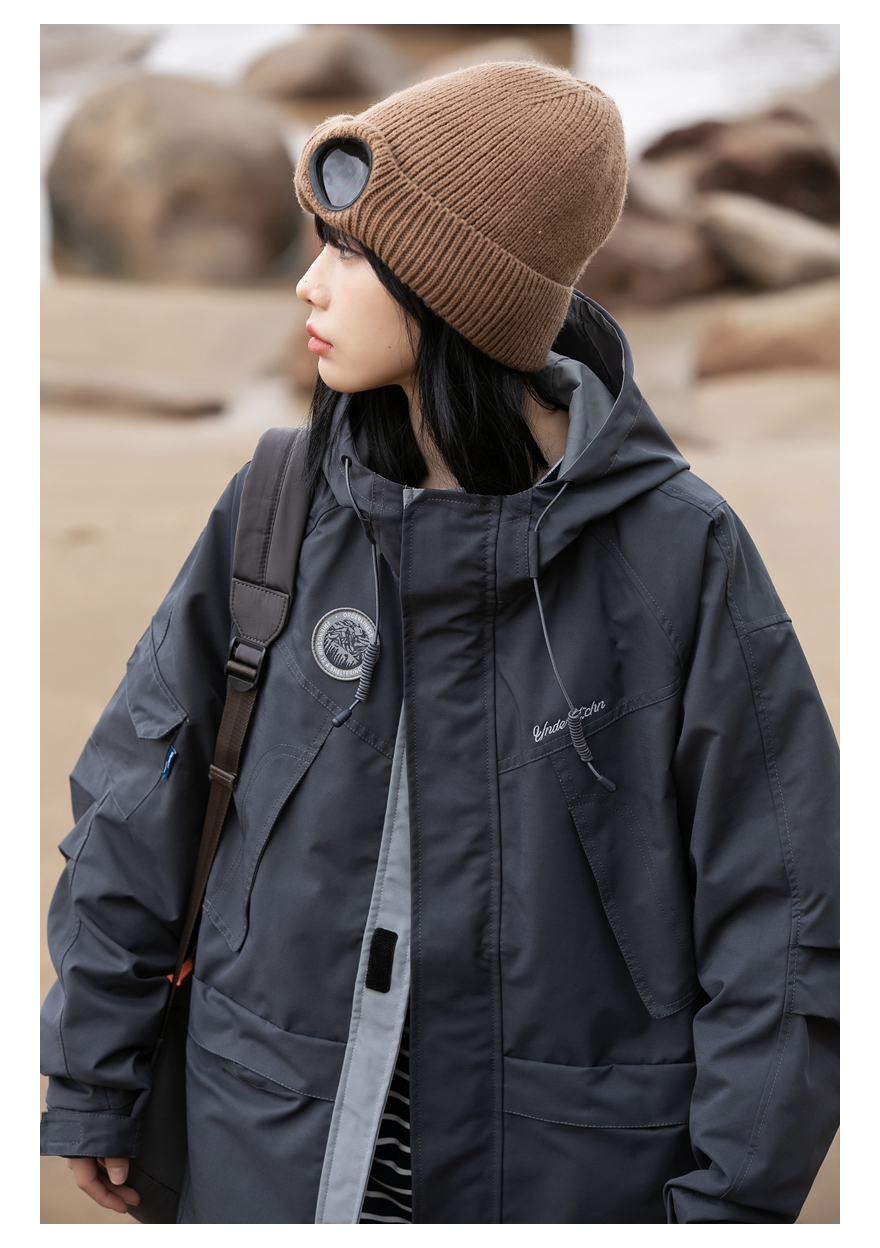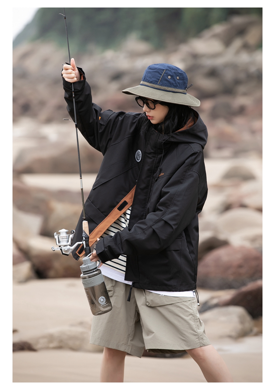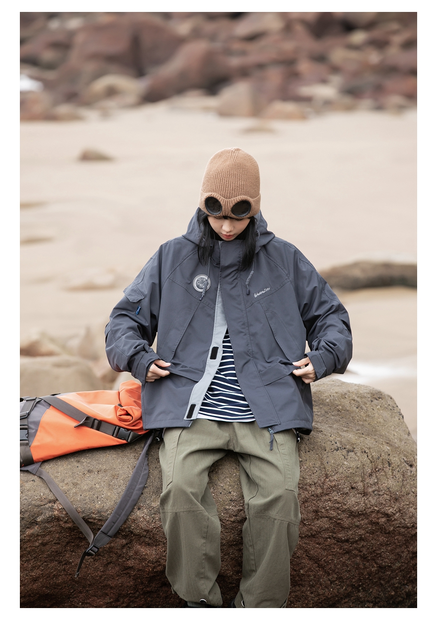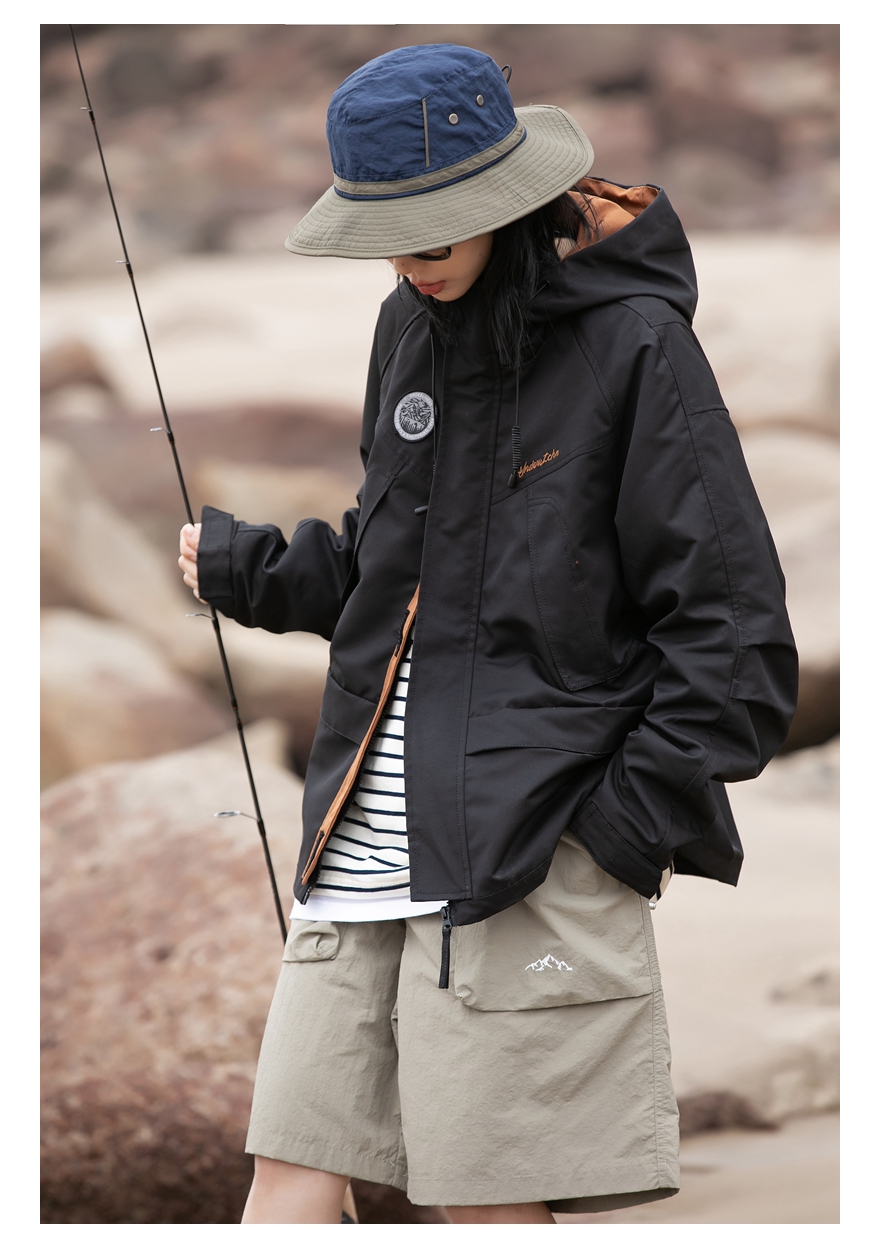 ORDERLINESS 日系潮牌戶外布貼連帽工裝外套女寬鬆情侶衝鋒衣夾克
