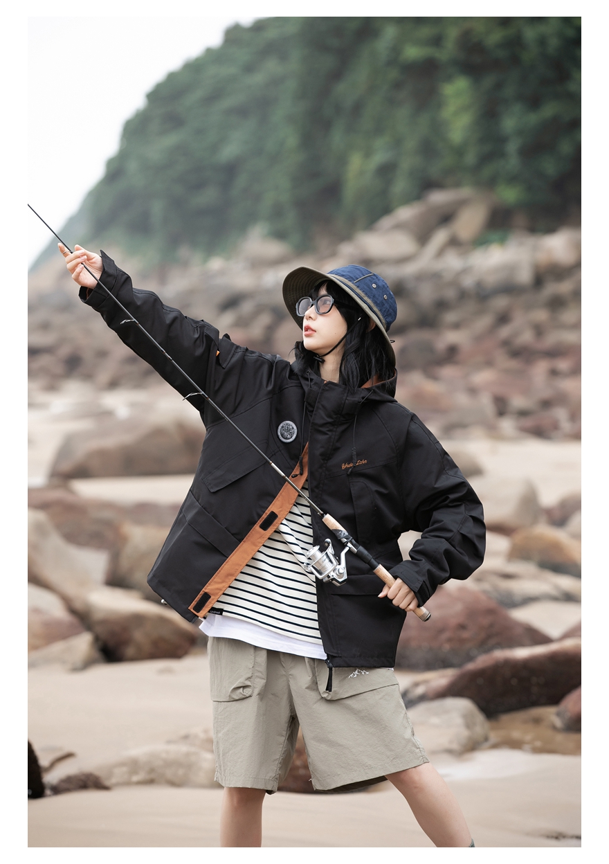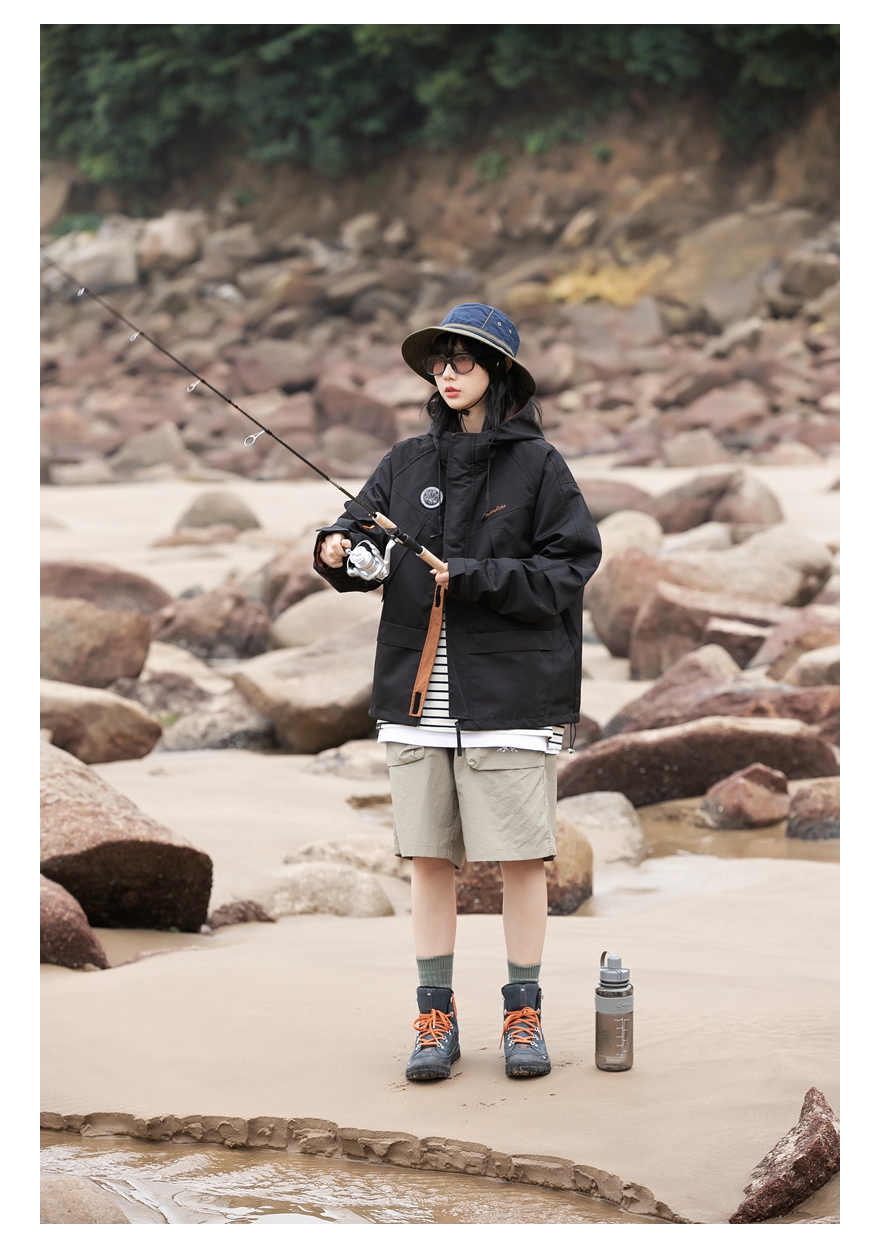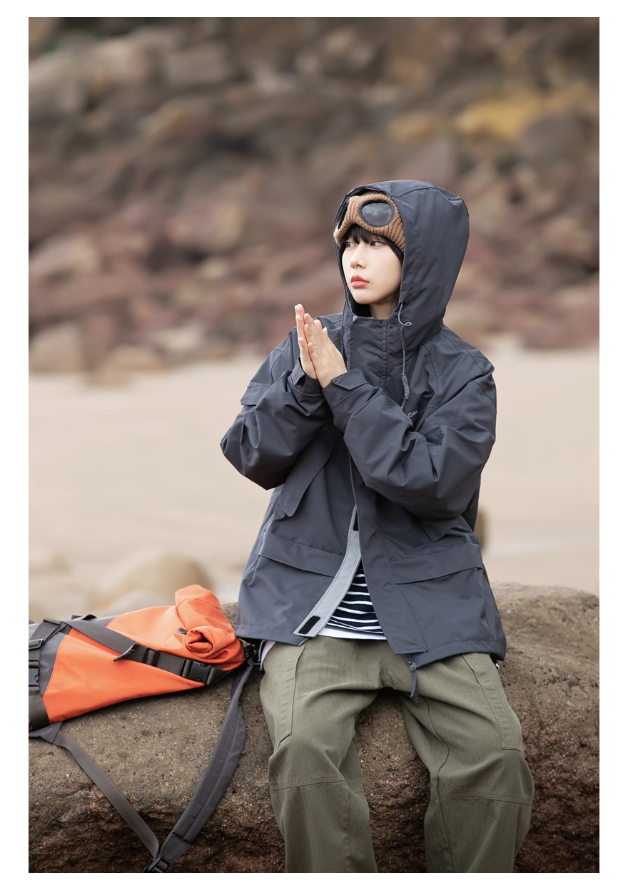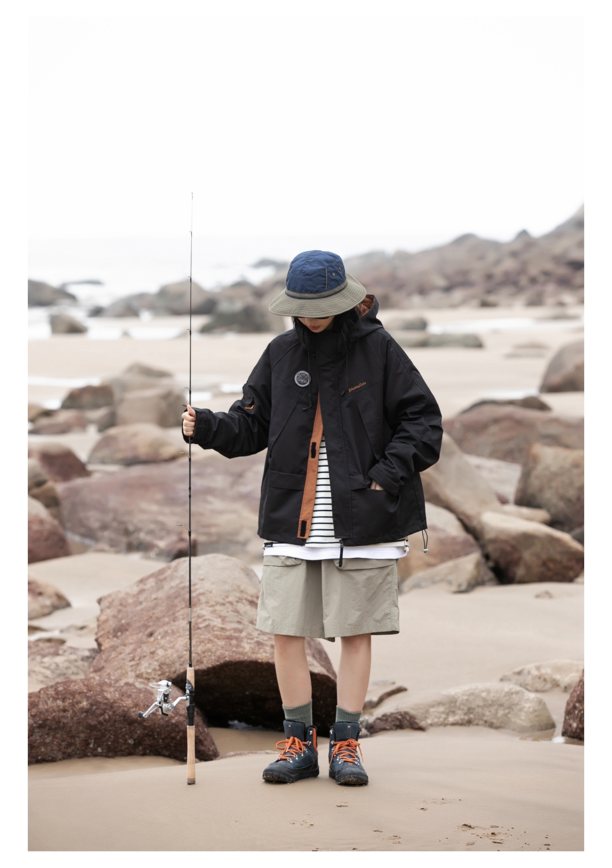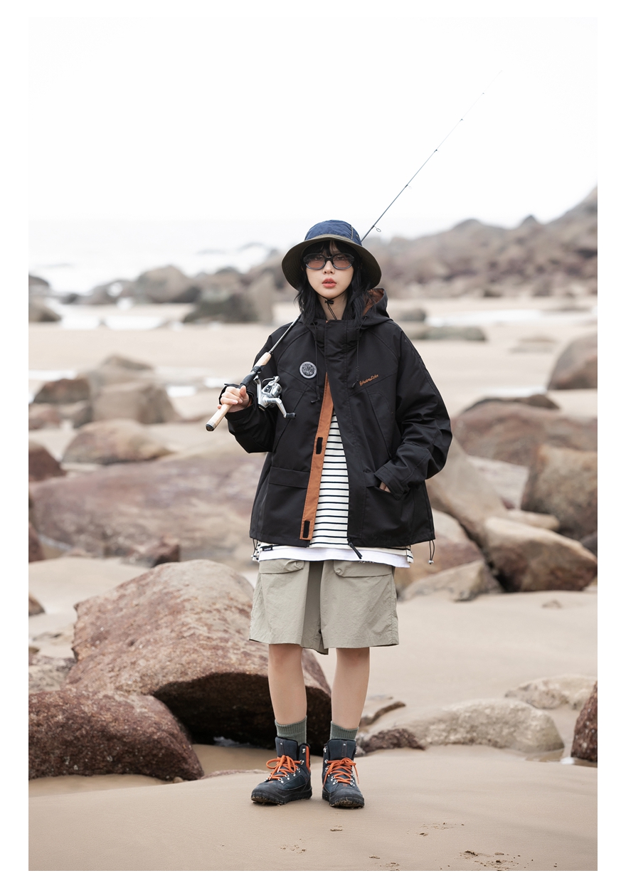 ORDERLINESS 日系潮牌戶外布貼連帽工裝外套女寬鬆情侶衝鋒衣夾克