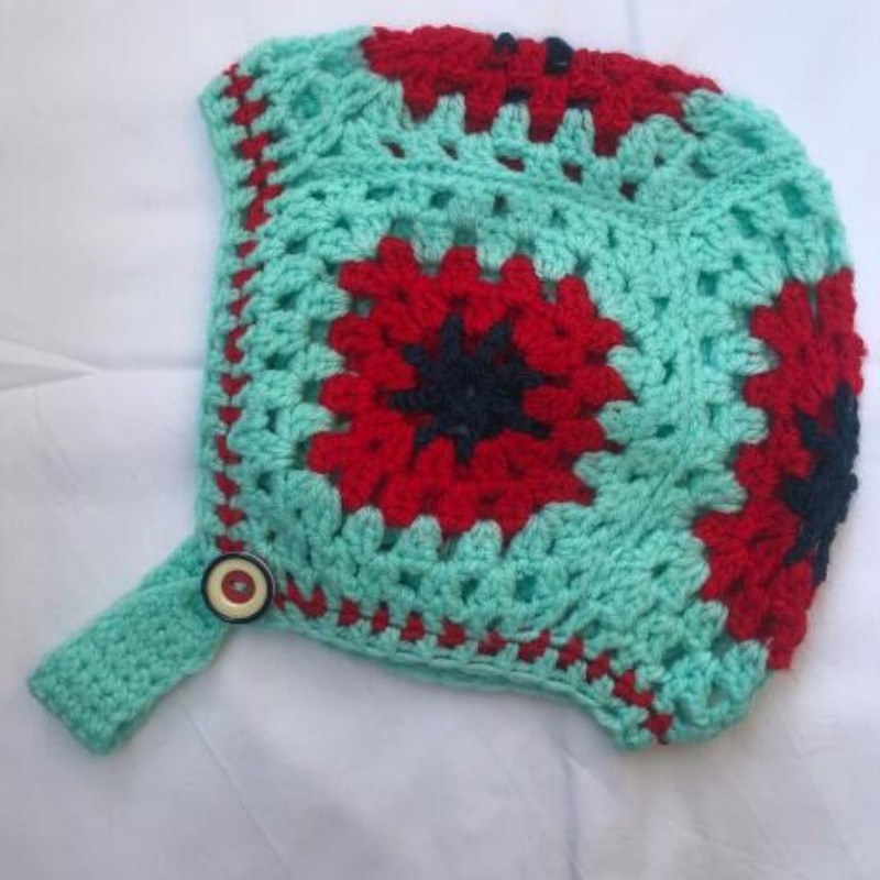 亚马逊跨境手工钩织包耳针织帽镂空花朵头巾帽可爱包头帽子女春秋