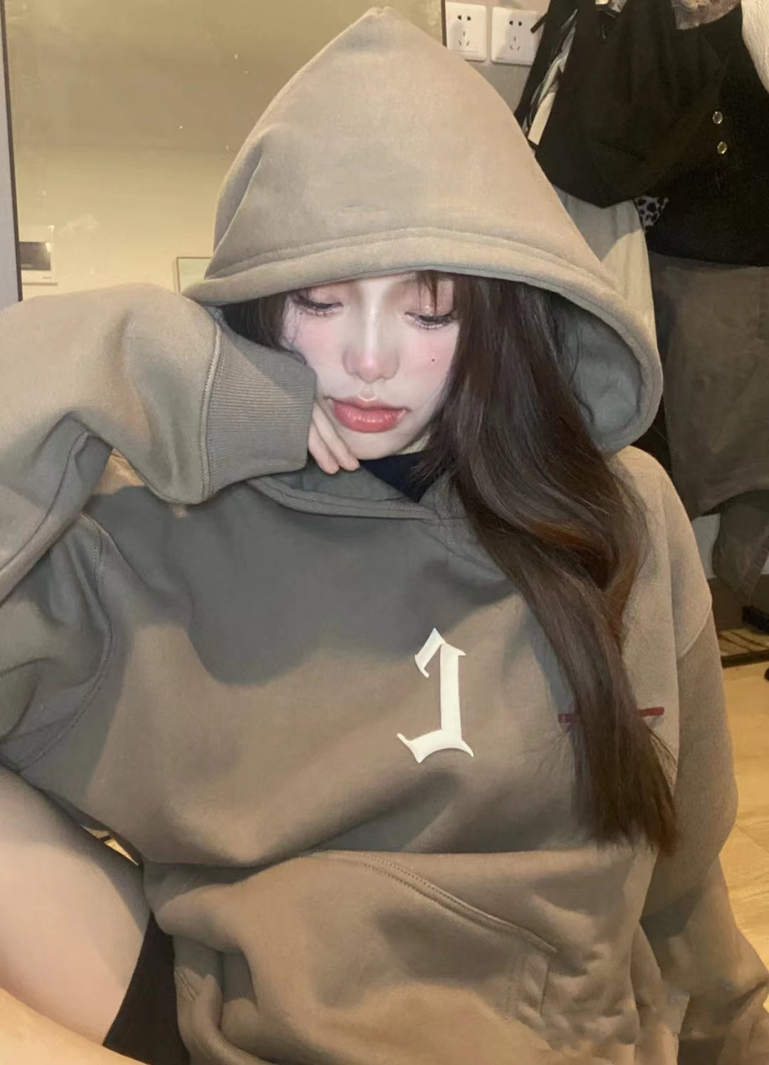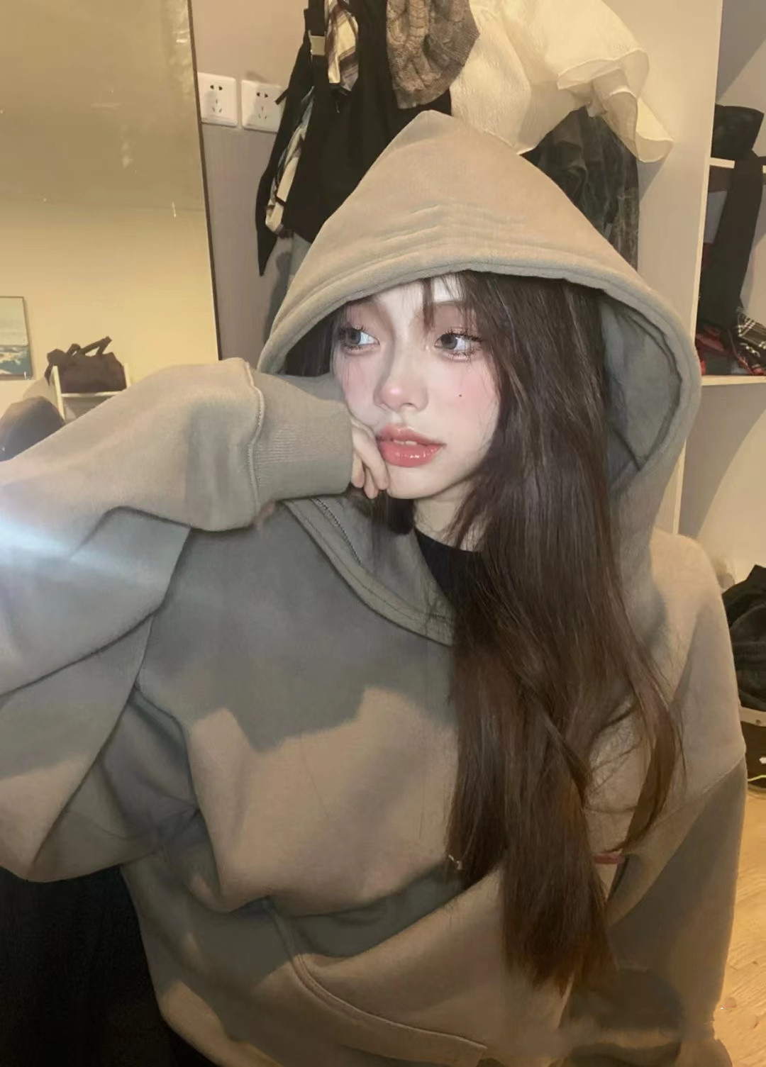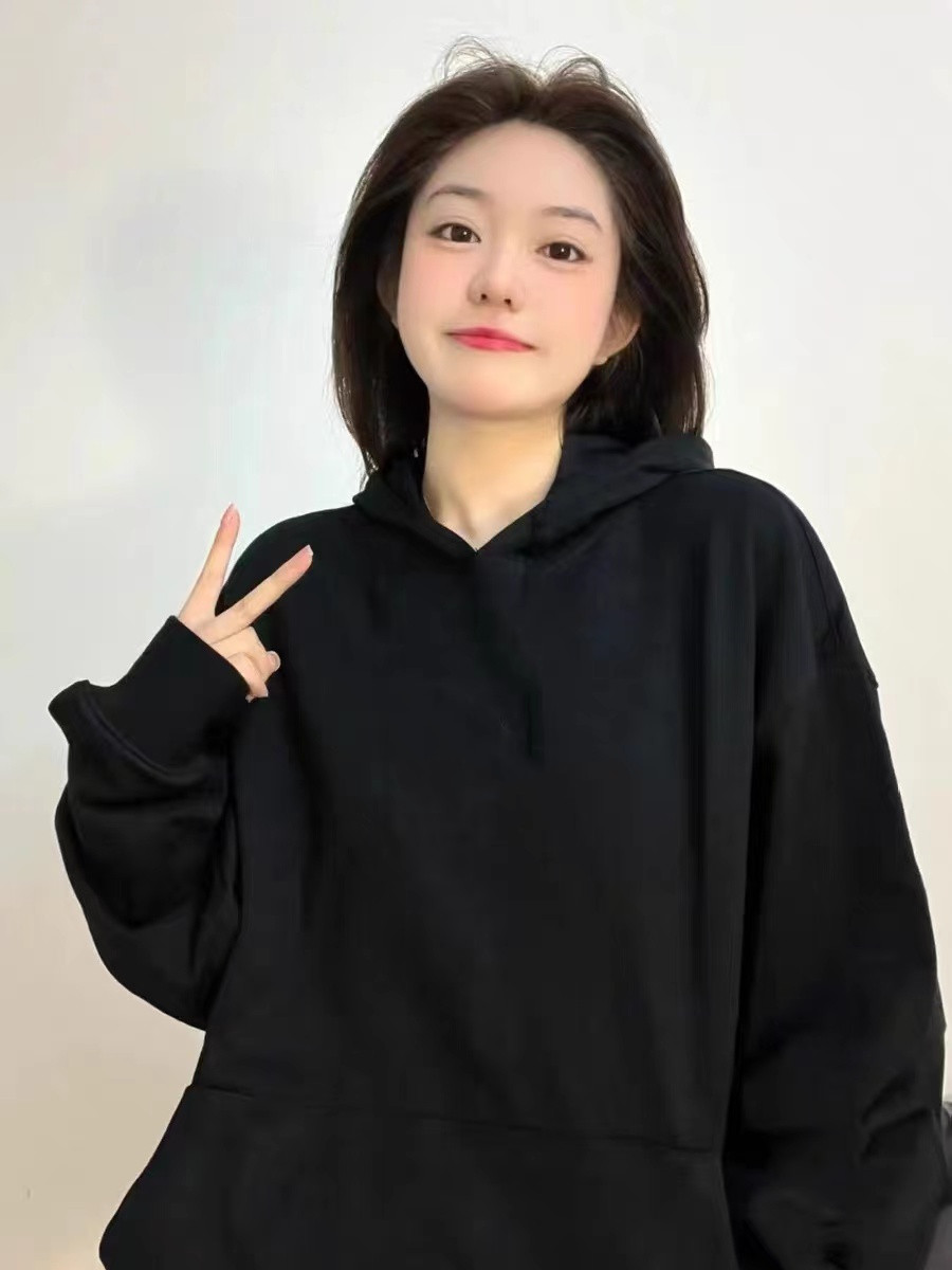 美式oversize大尺碼寬鬆情侶裝加絨加厚連帽運動衫2023新款女春秋冬季