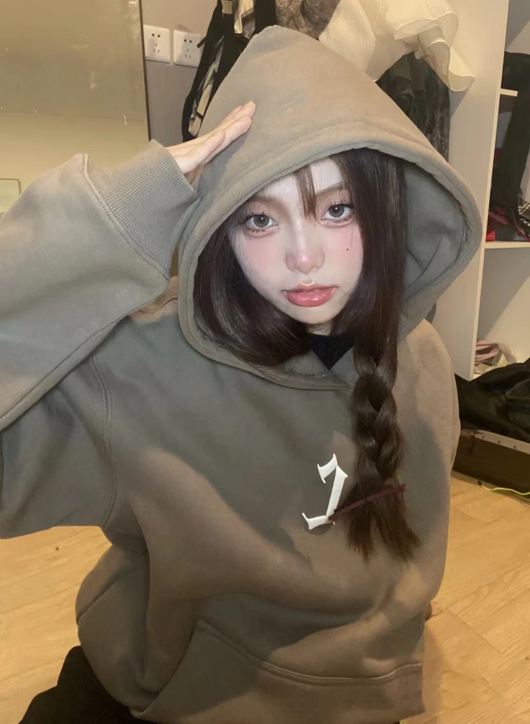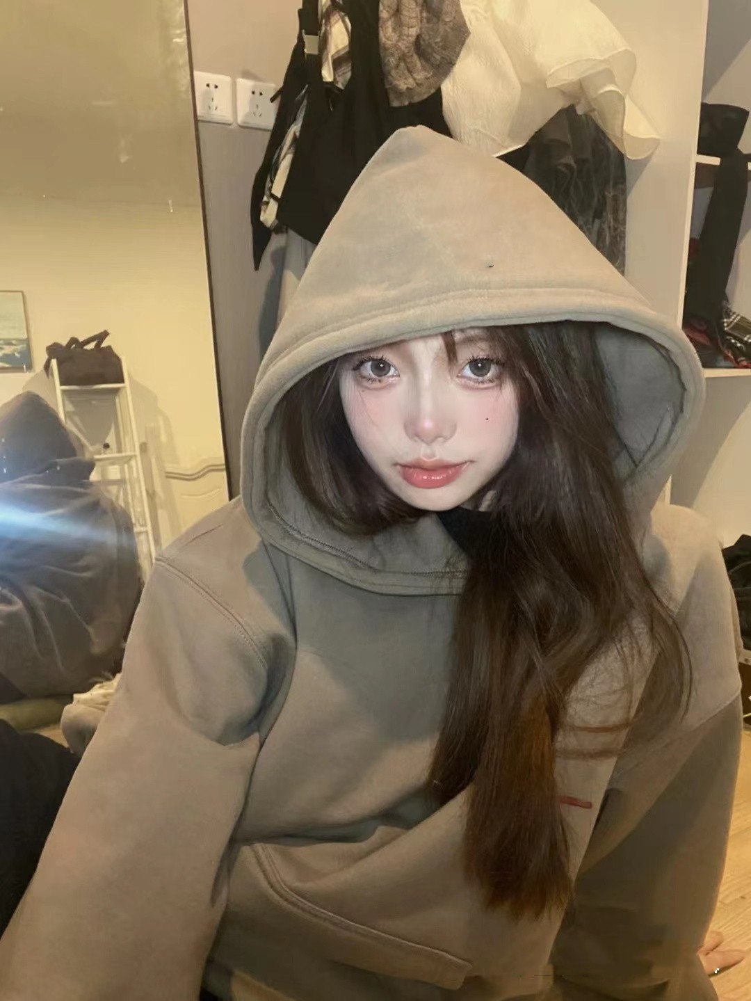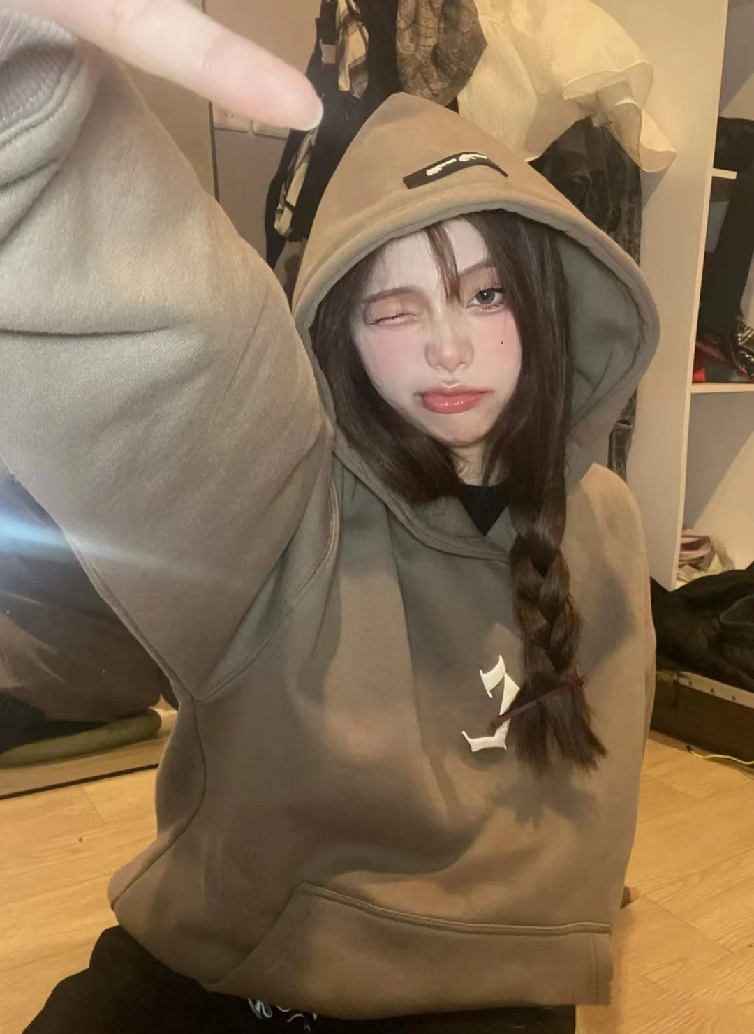 美式oversize大尺碼寬鬆情侶裝加絨加厚連帽運動衫2023新款女春秋冬季