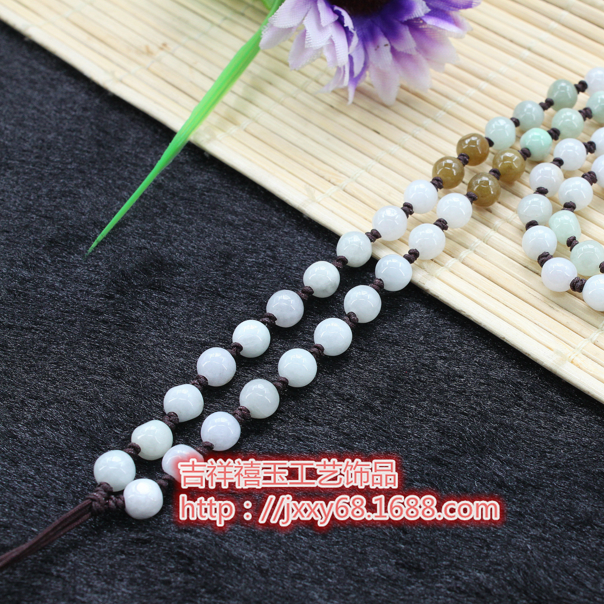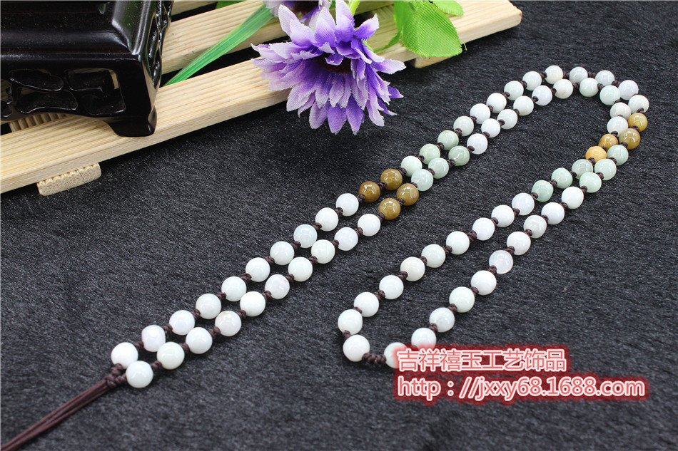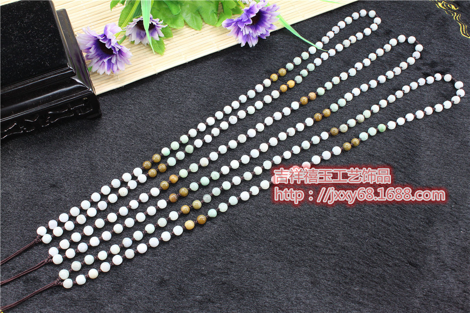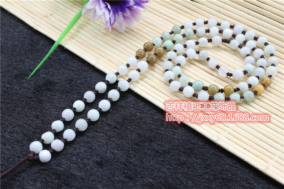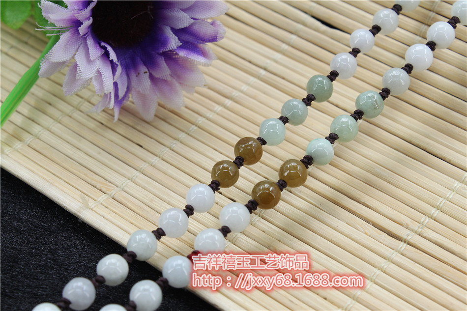 原创天然A货翡翠米通全珠链手工编织毛衣挂绳四会吊坠绳饰品批发6.50
