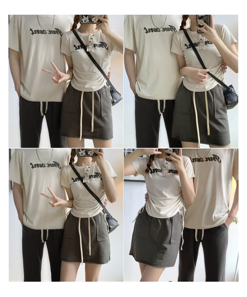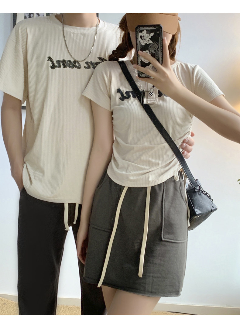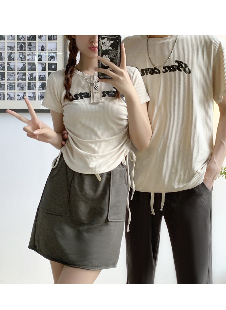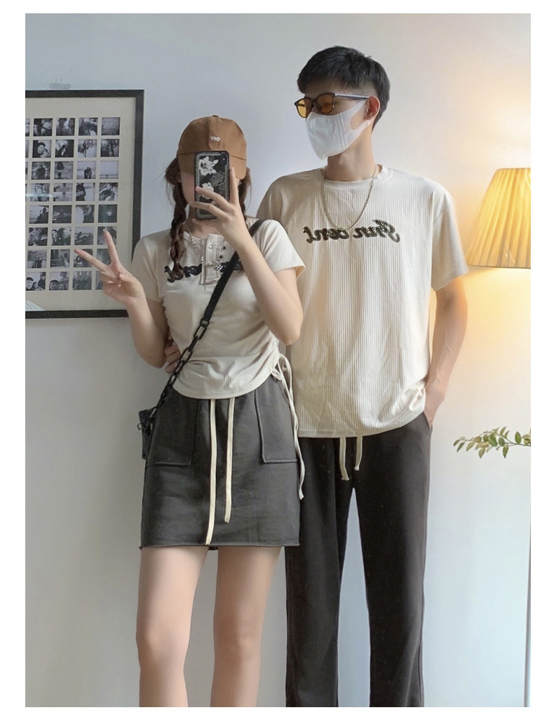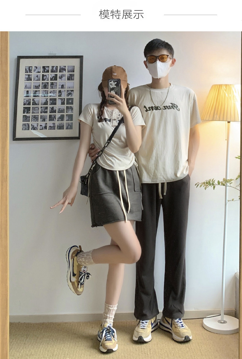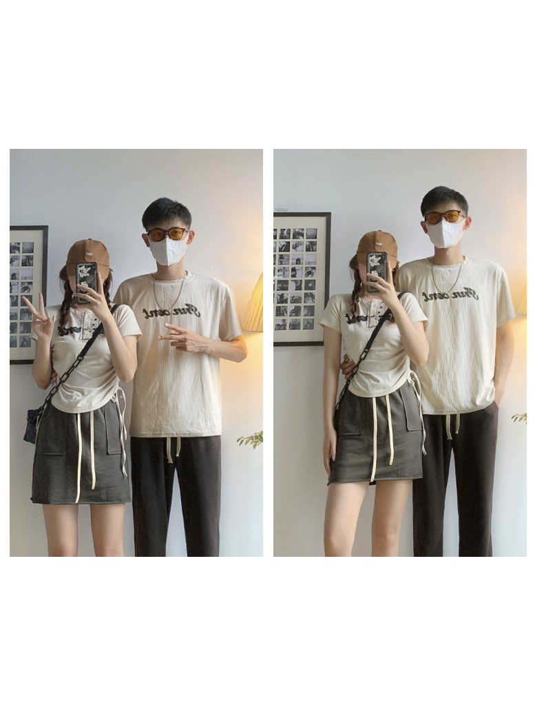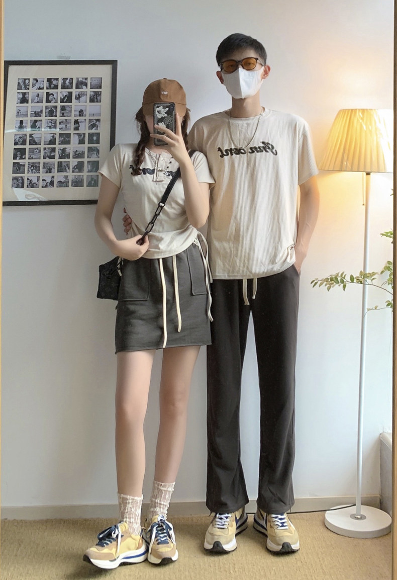 情侶裝夏季2023新款小眾設計感韓版潮流顯瘦短袖T恤一裙一衣套裝