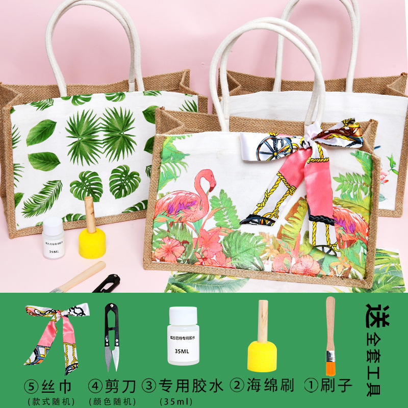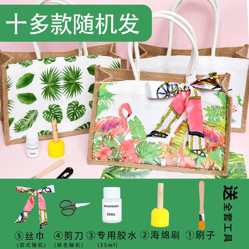 母亲节蝶古巴特帆布包手提袋麻布袋手工diy制作材料包创意亲子团