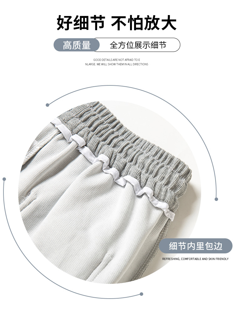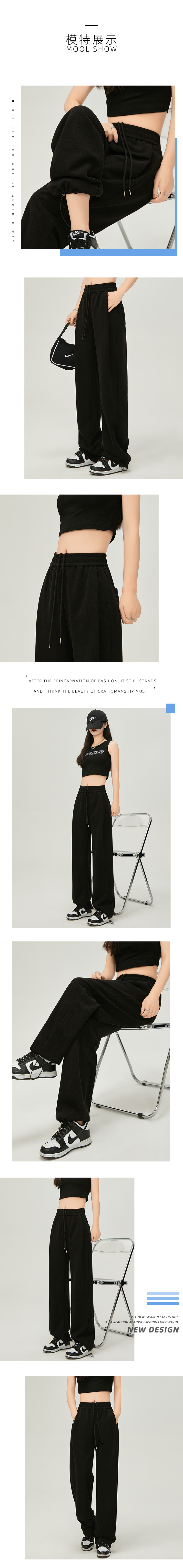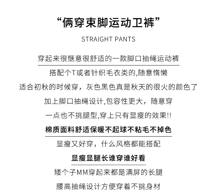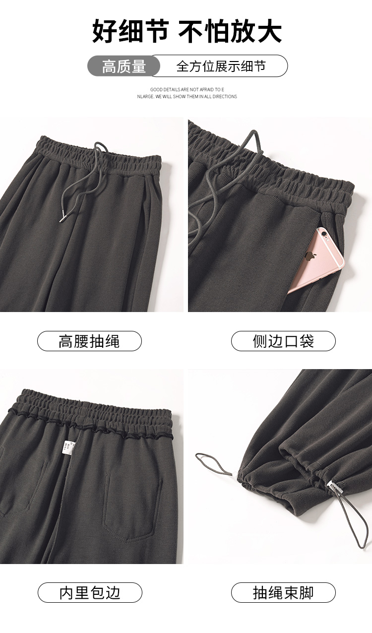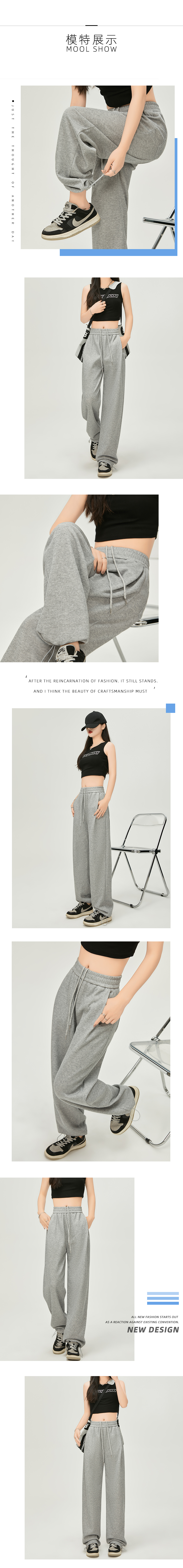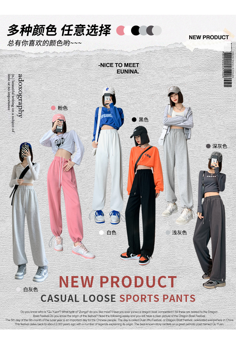 美式白灰色運動褲女春夏秋季2023高腰抽繩束口褲寬鬆闊腿休閒厚棉褲