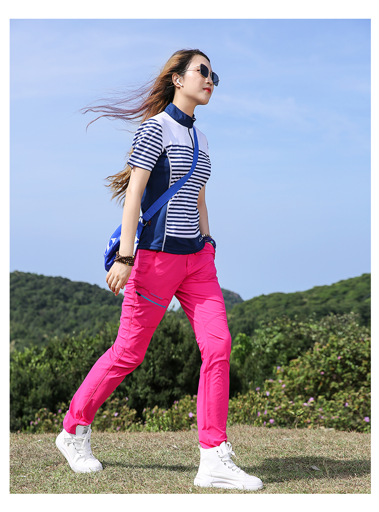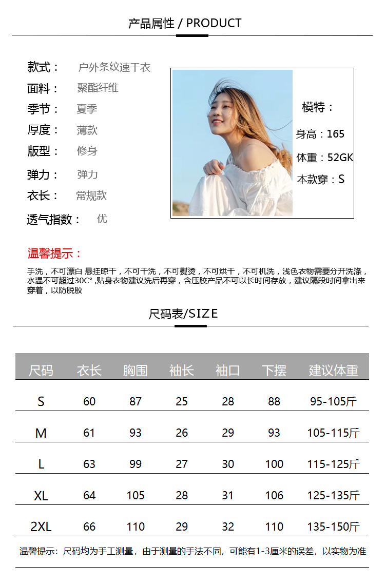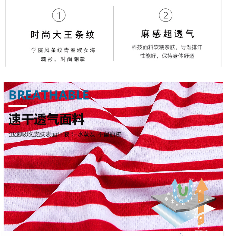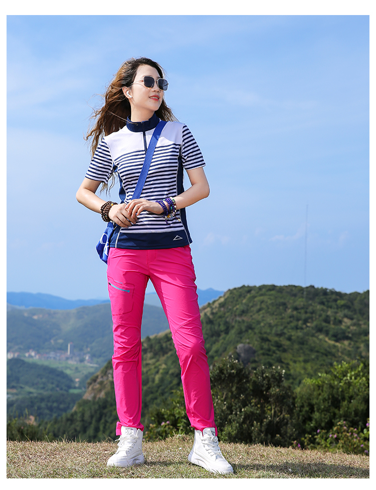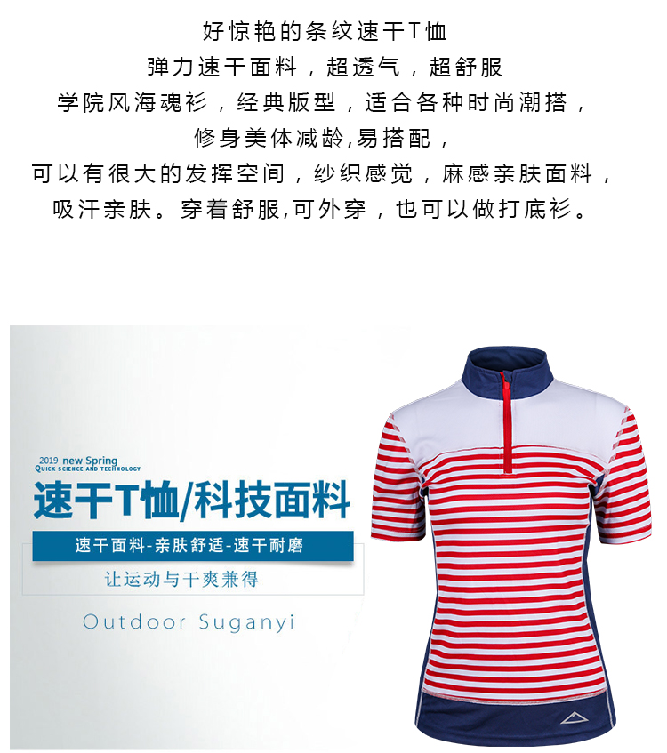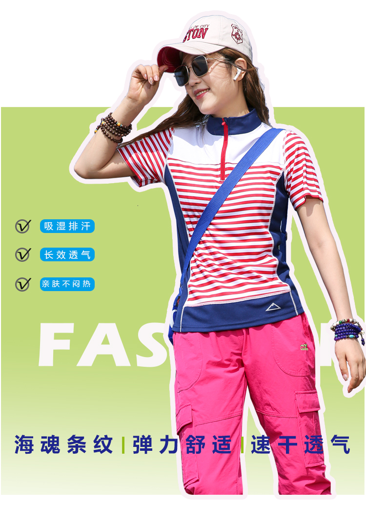戶外條紋海魂衫速乾衣女短袖T恤女上衣彈力吸汗透氣登山徒步夏季
