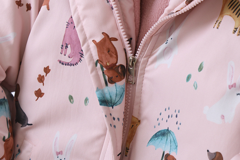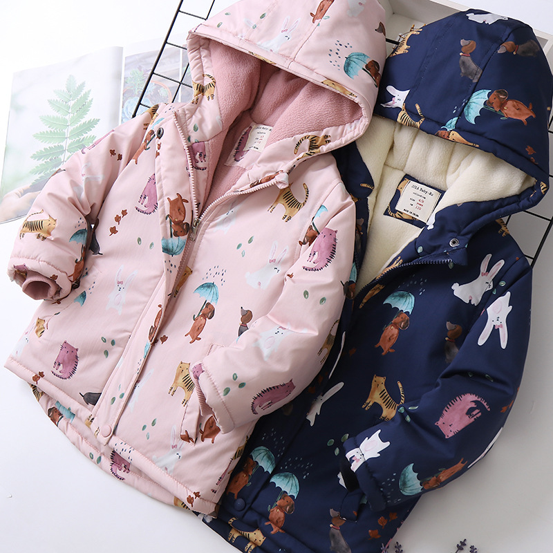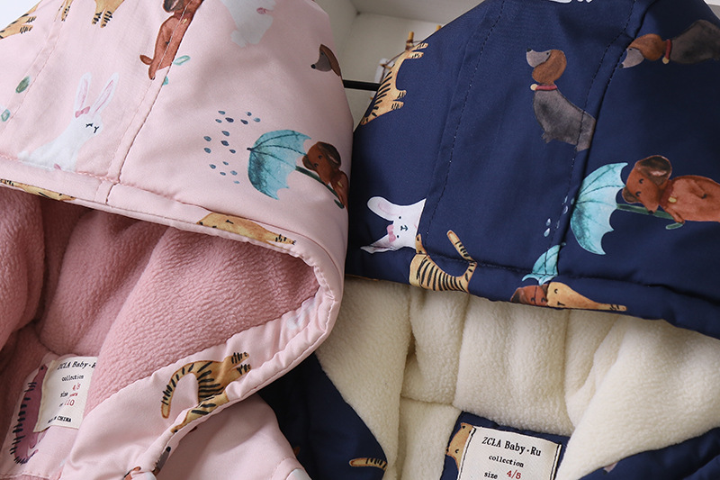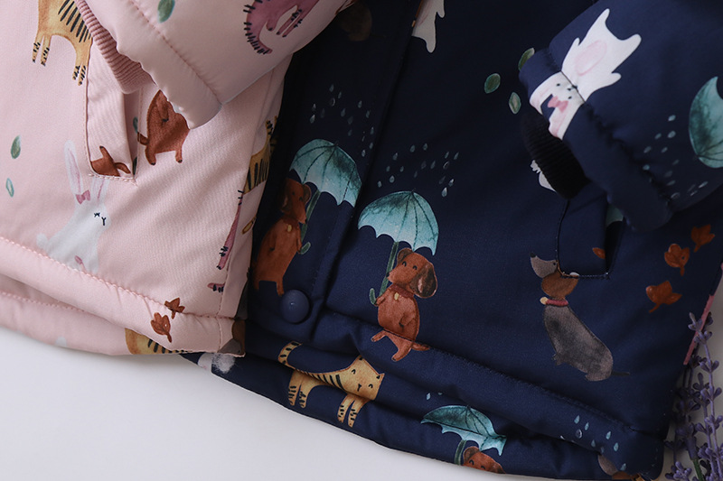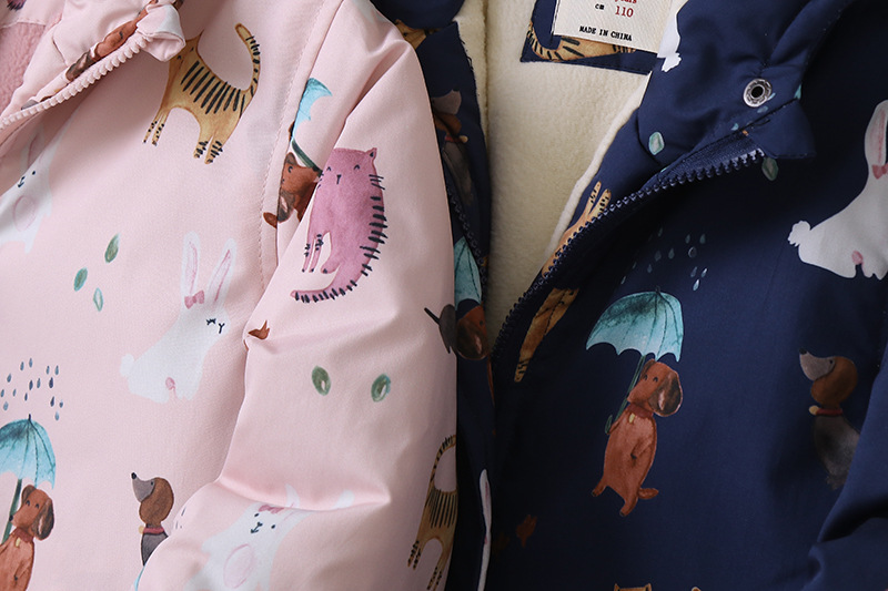 卡通兔子猫咪加绒加厚女童棉服儿童棉袄 2023冬新款童装儿童棉衣