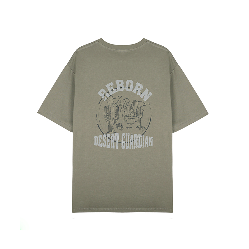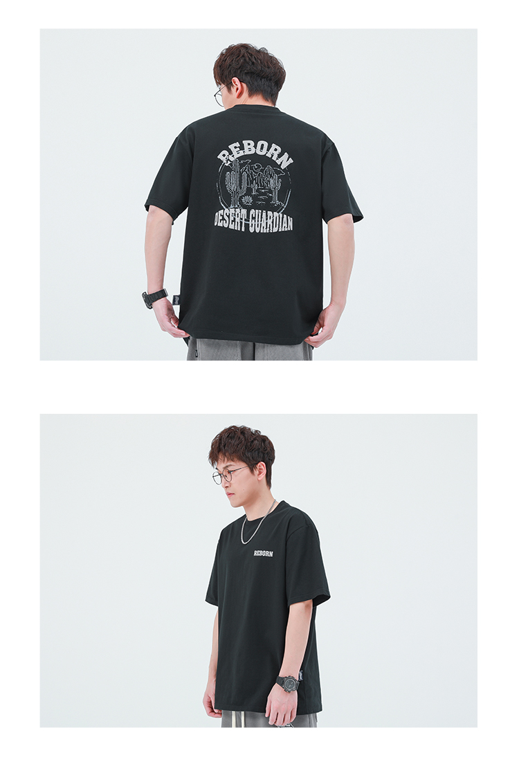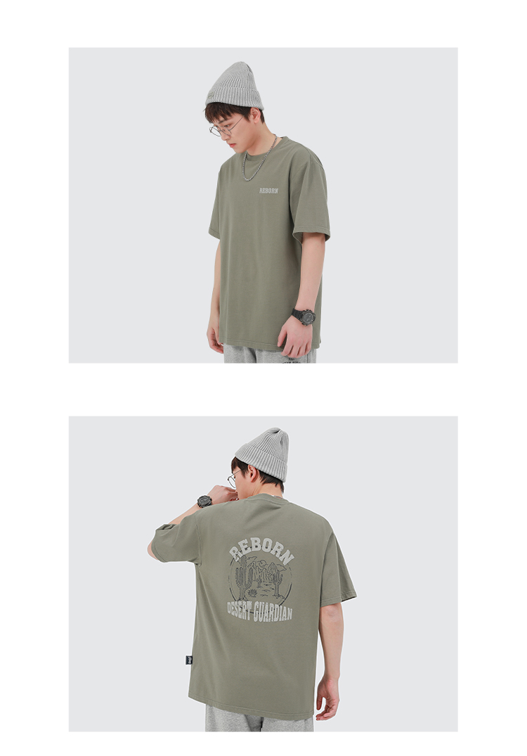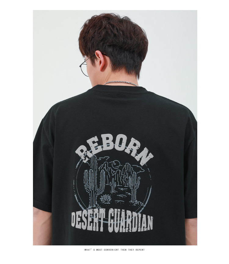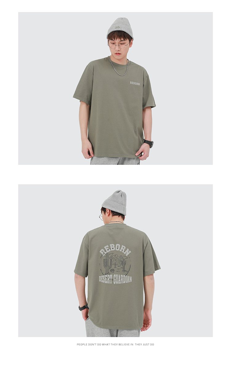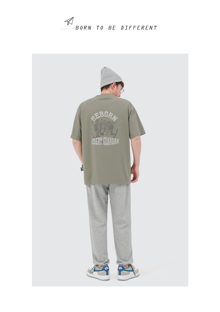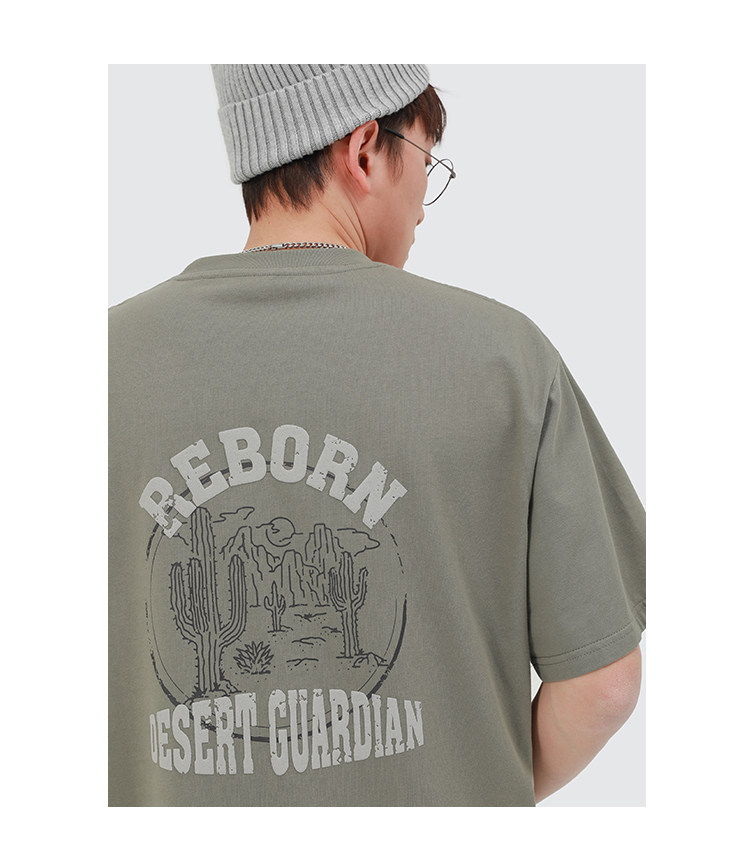 GWIT 夏季新款寬鬆潮流體恤沙漠仙人掌半袖潮牌印花純棉短袖T恤男