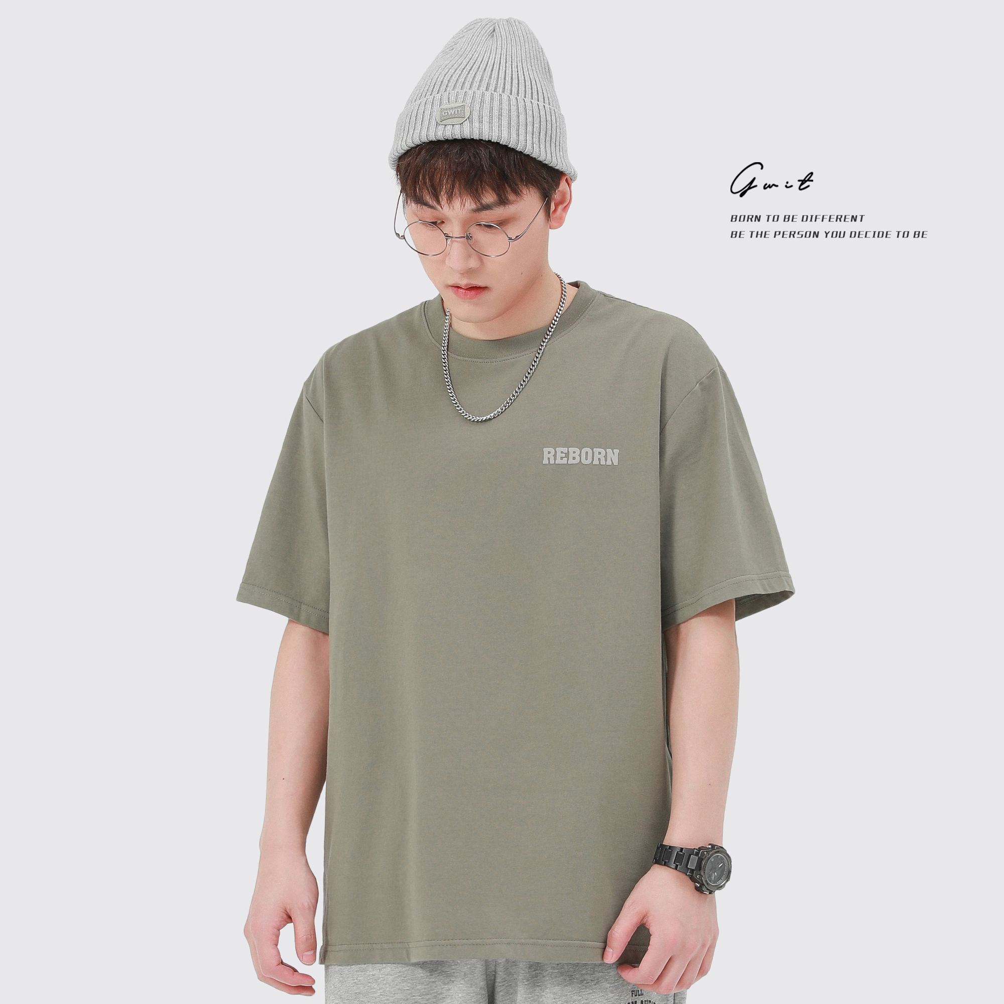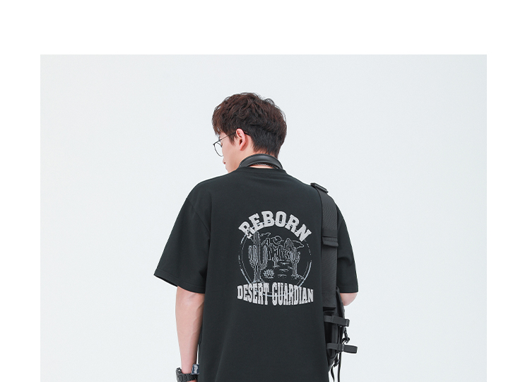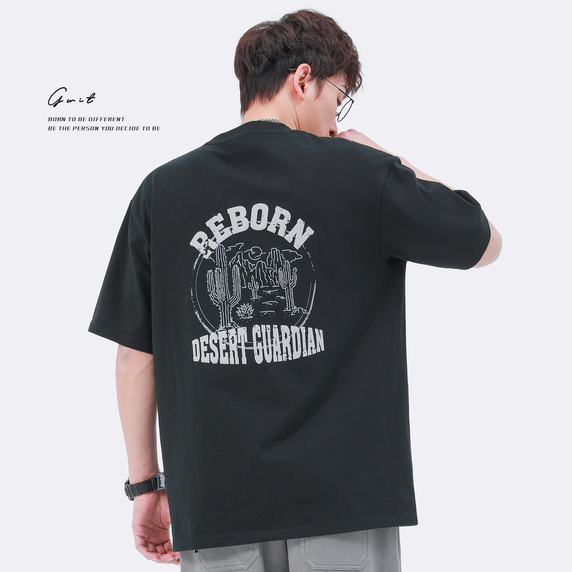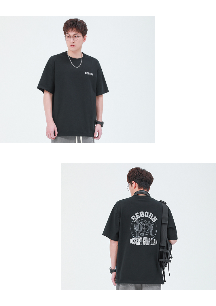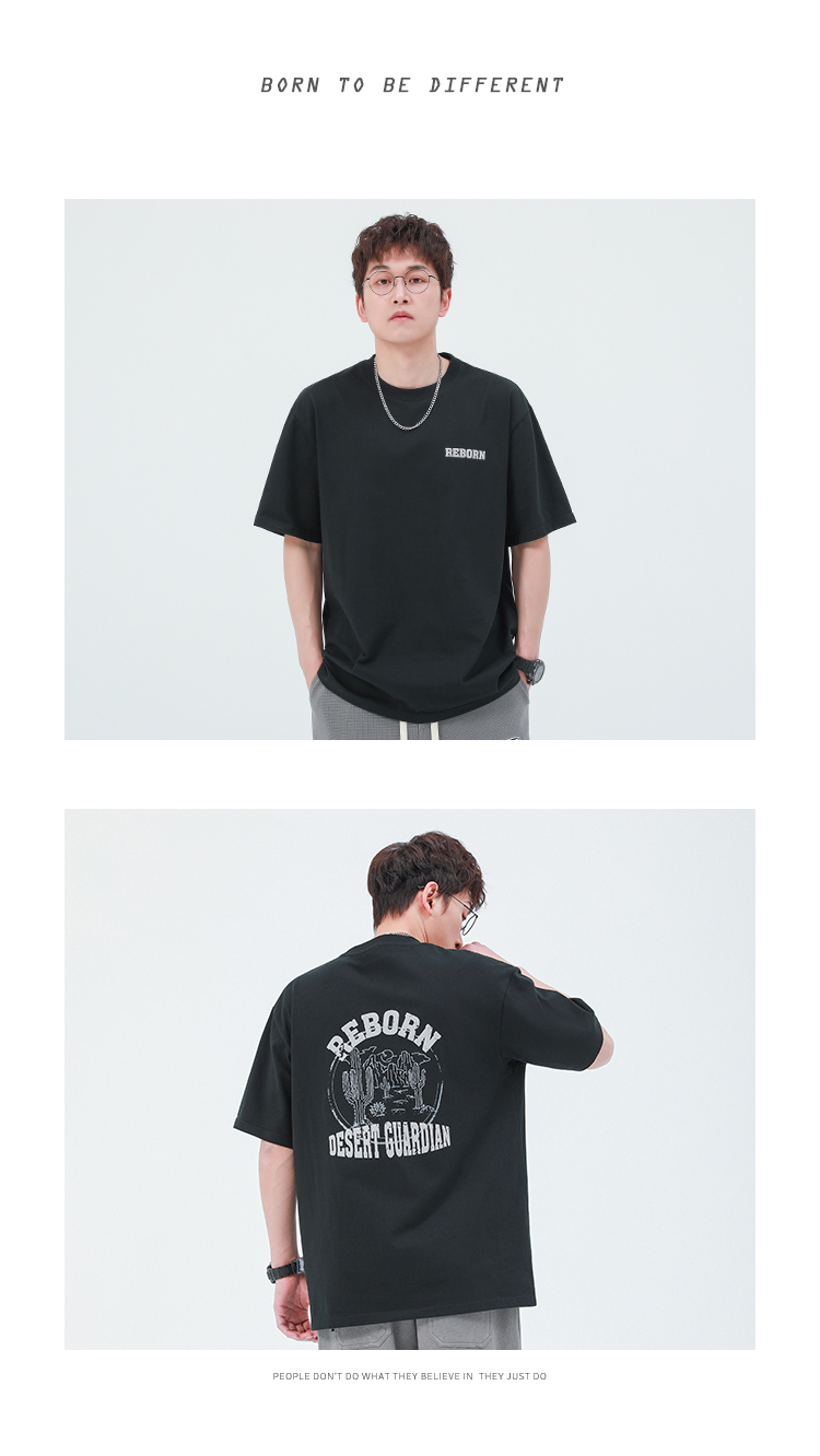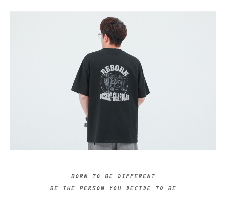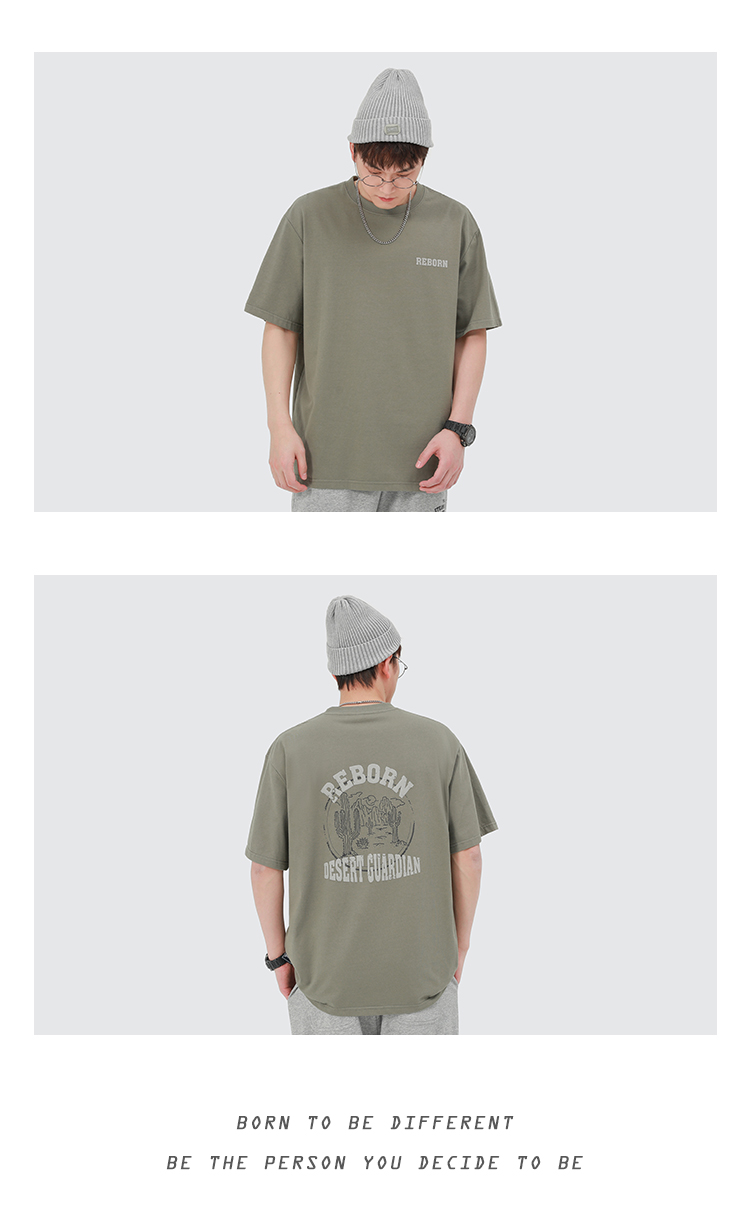 GWIT 夏季新款寬鬆潮流體恤沙漠仙人掌半袖潮牌印花純棉短袖T恤男