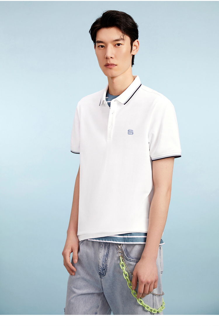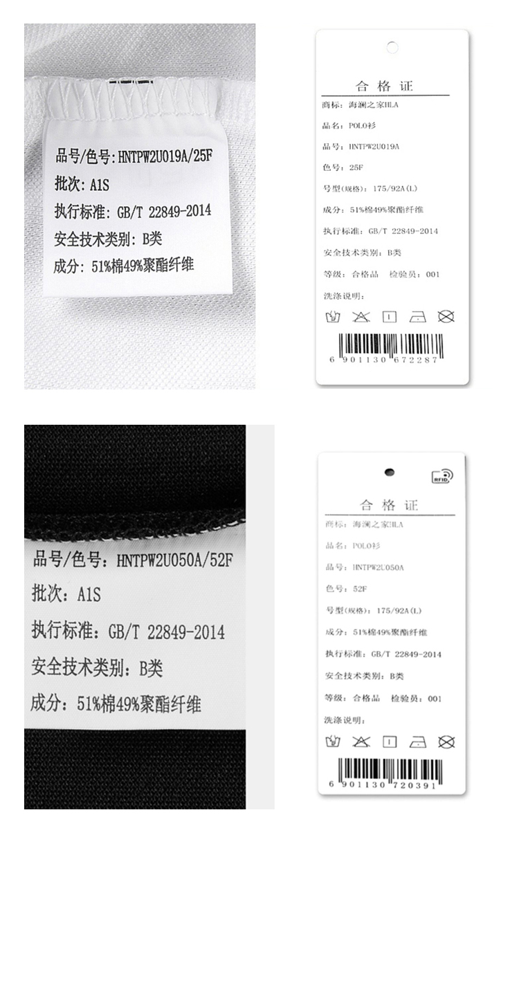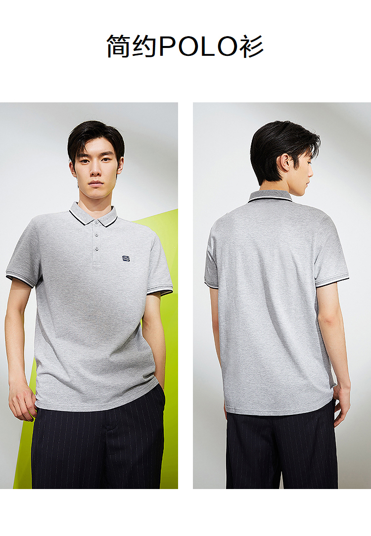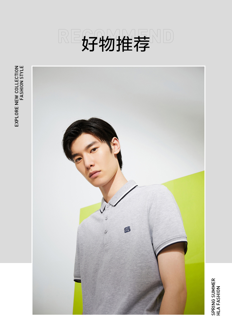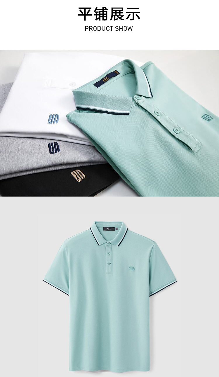 HLA/海瀾之家三國刺繡春夏短袖polo衫簡約透氣拉夫·勞倫馬球衫黑白翻領T恤