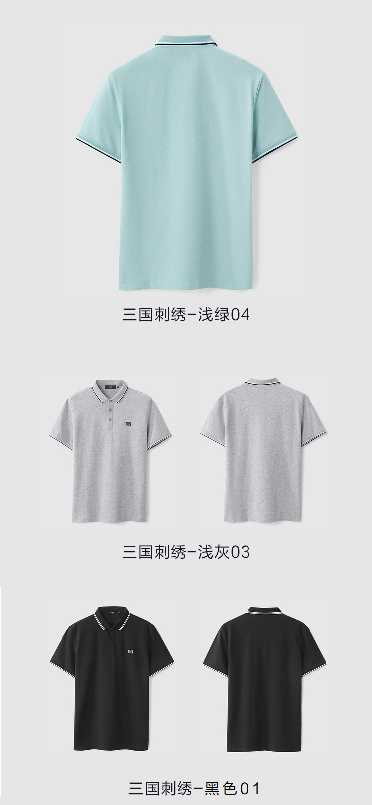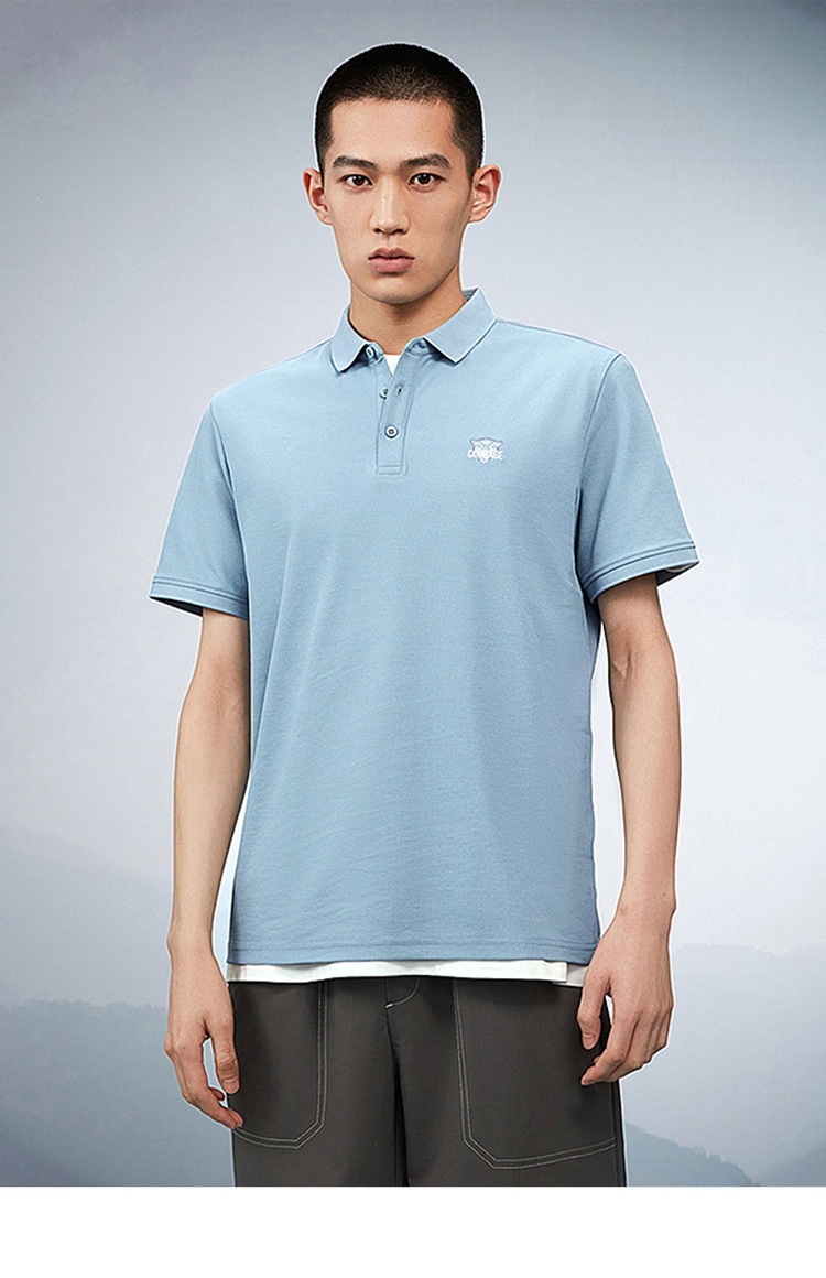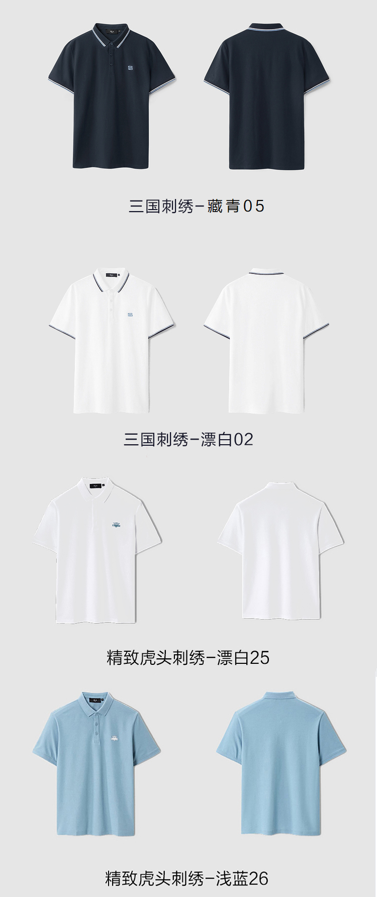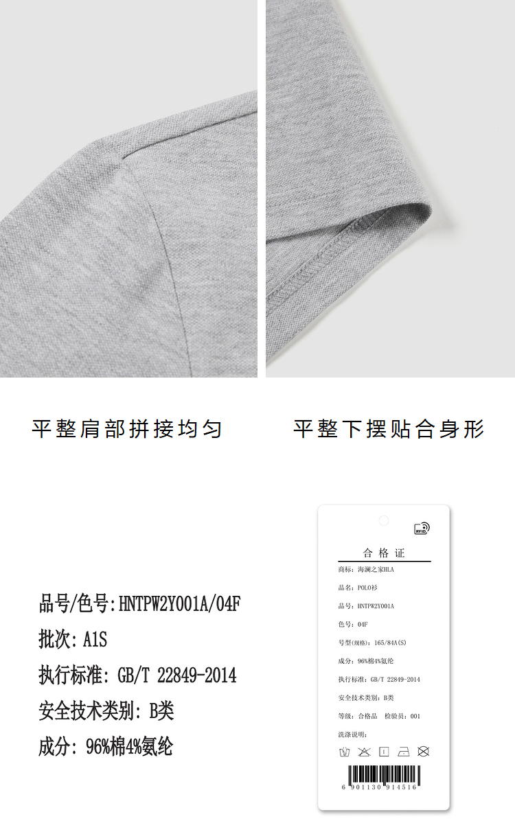 HLA/海瀾之家三國刺繡春夏短袖polo衫簡約透氣拉夫·勞倫馬球衫黑白翻領T恤
