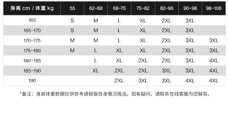 尺碼 165/84A/S 170/88A/M 175/92A/L 180/96A/XL 185/100A/XXL 190/104A/XXXL