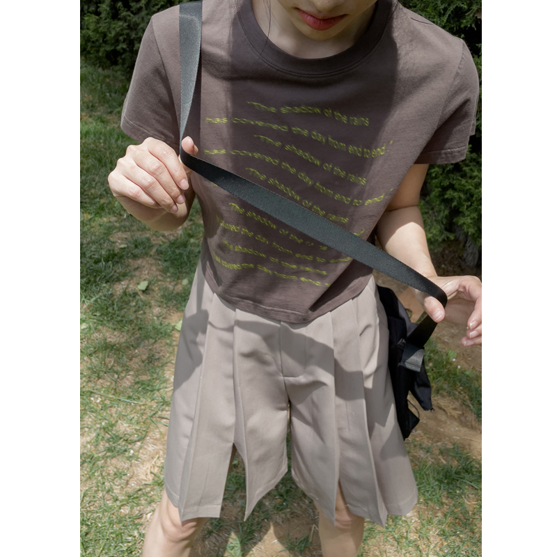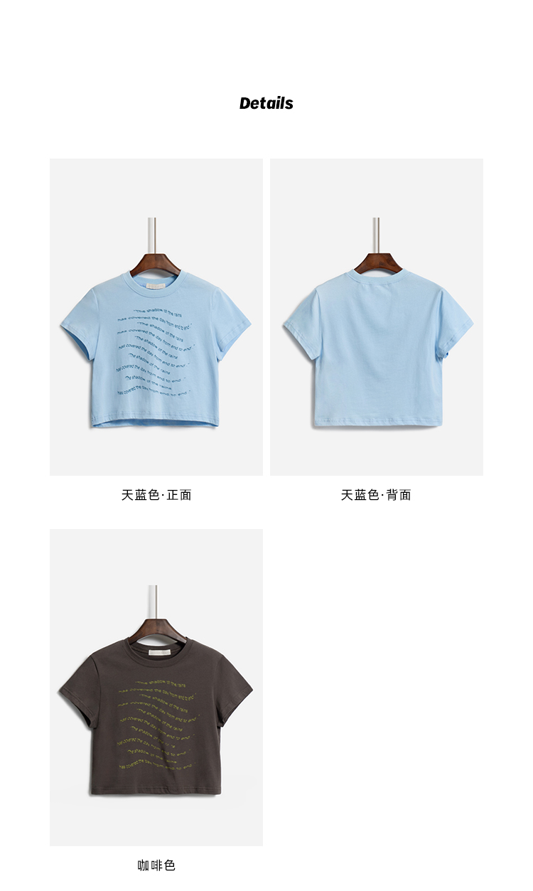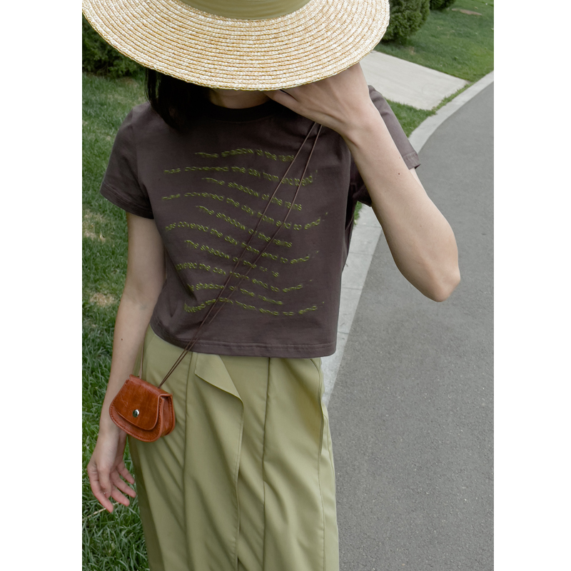 你好卡農 原創字母印花寬鬆圓領T恤短袖2023夏季短款休閒正肩上衣