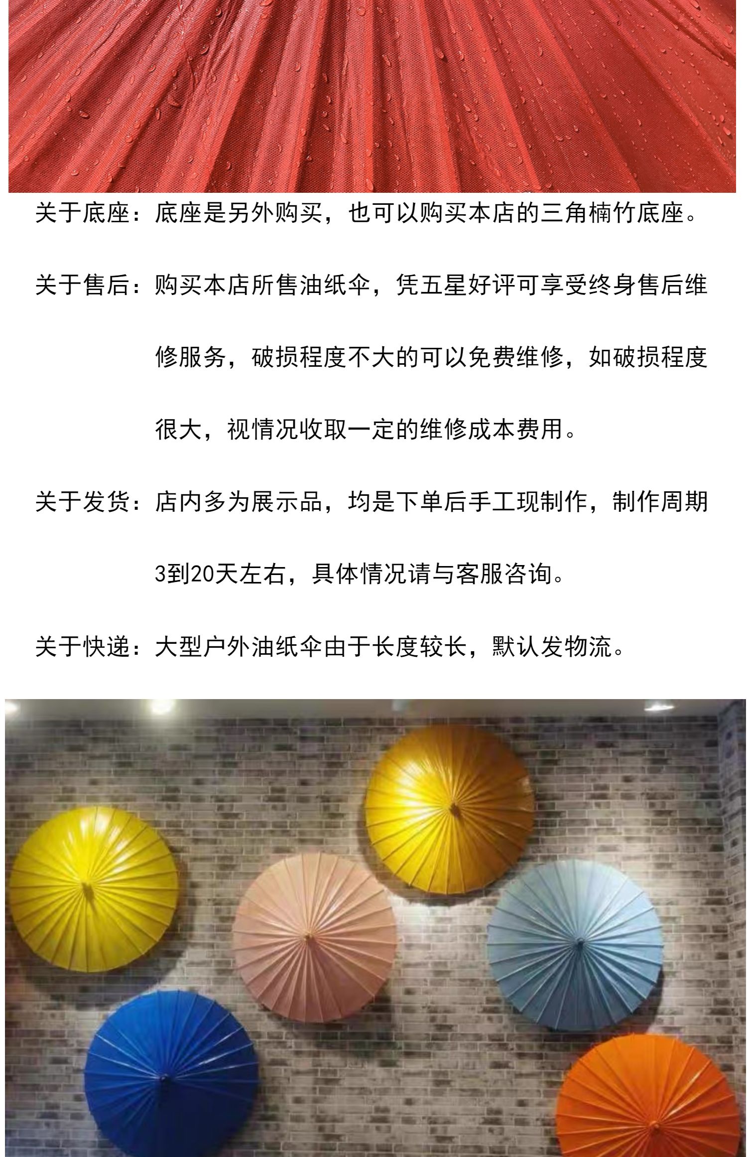 颜色 上桐油可防雨有味道浅黄色 梦华录同款,无桐油不防雨无味道浅黄色 梦华录同款,上桐油可防雨有味道金色 天子黄,无桐油不防雨无味道金色 天子黄,上桐油可防雨有味道黑色 水墨画,无桐油不防雨无味道黑色 水墨画,上桐油可防雨有味道蓝色 水墨莲花,无桐油不防雨无味道蓝色 水墨莲花,上桐油可防雨有味道卡其色 米白色,无桐油不防雨无味道卡其色 米白色,上桐油可防雨有味道花色 图案可定做,无桐油不防雨无味道花色 图案可定做,上桐油可防雨有味道白 底座另购不赠送,无桐油不防雨无味道白 底座另购不赠送