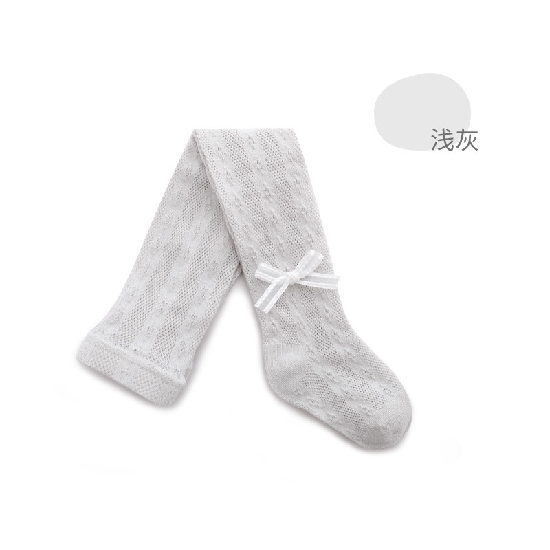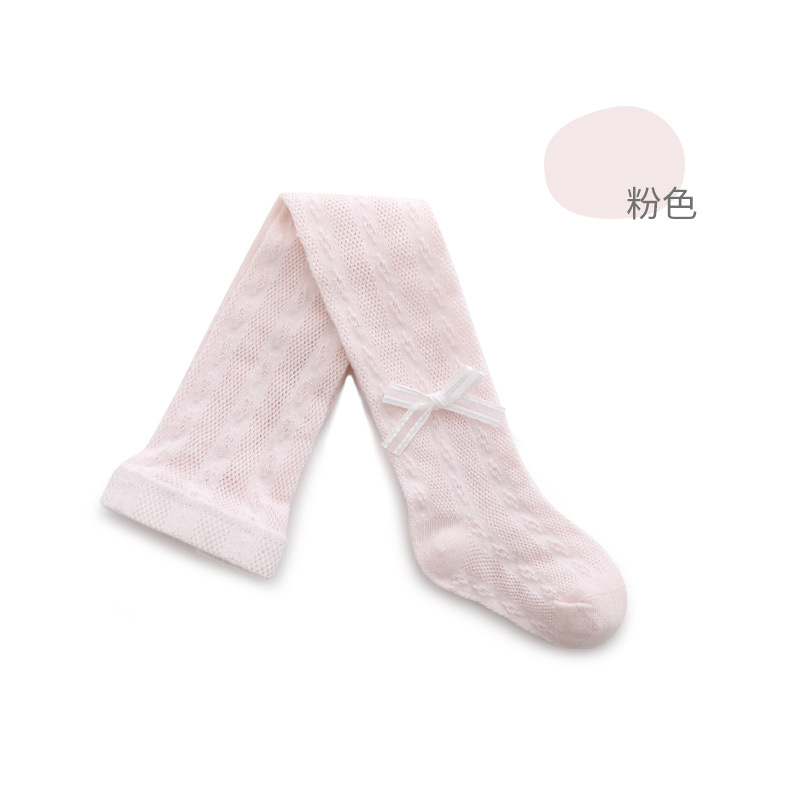 女童连裤袜夏季超薄防蚊镂空网眼宝宝打底裤蝴蝶结公主纯色舞蹈袜