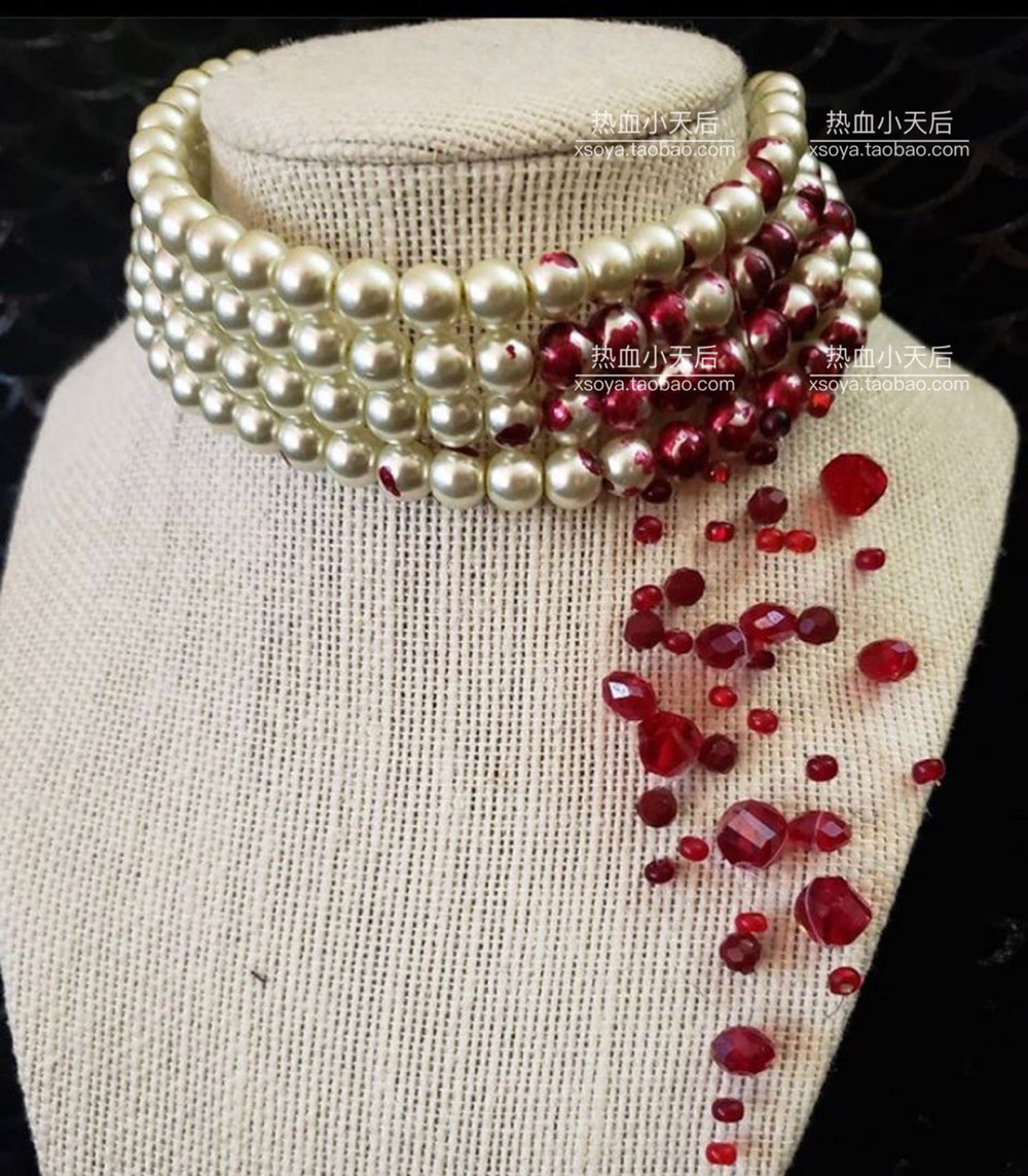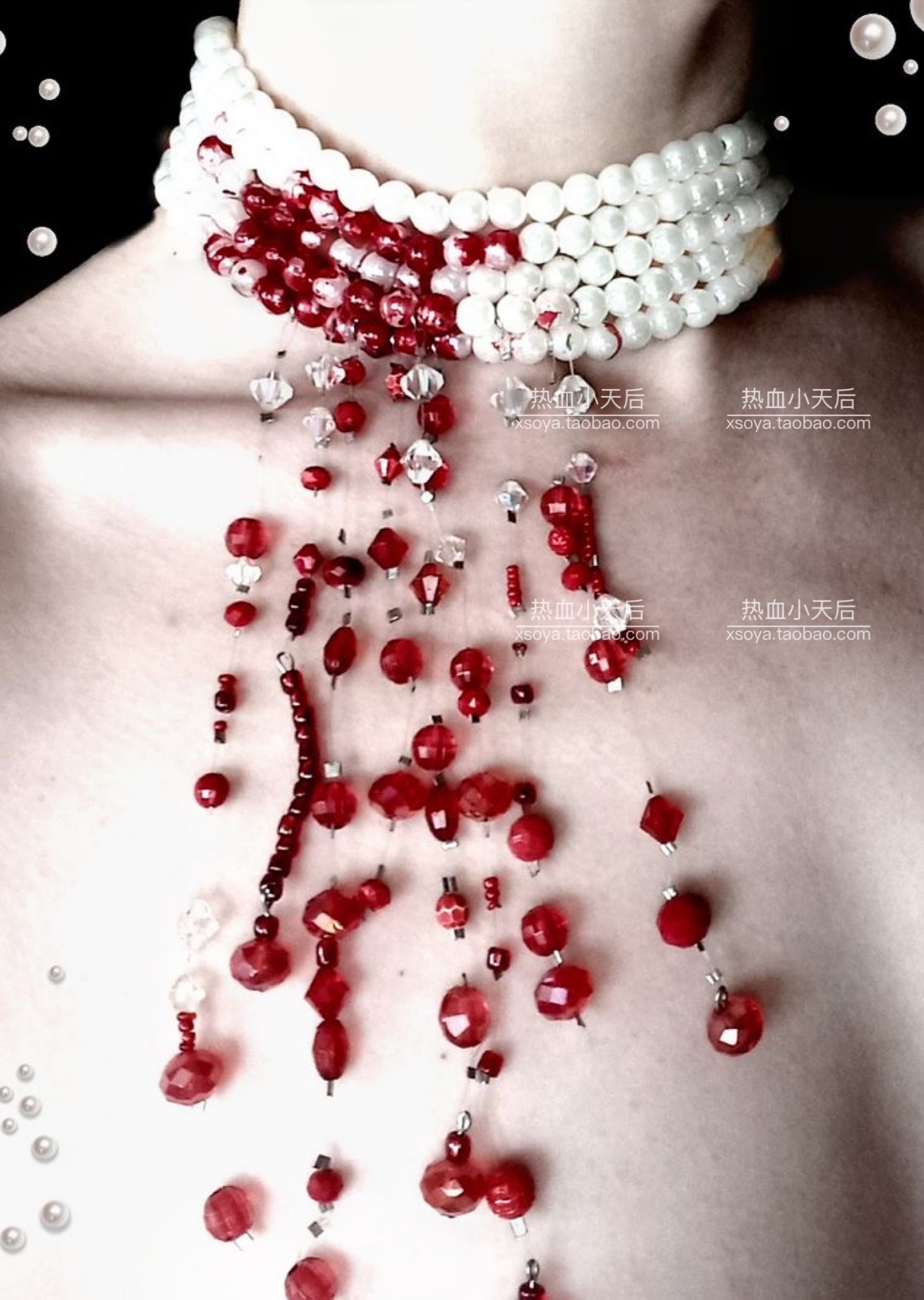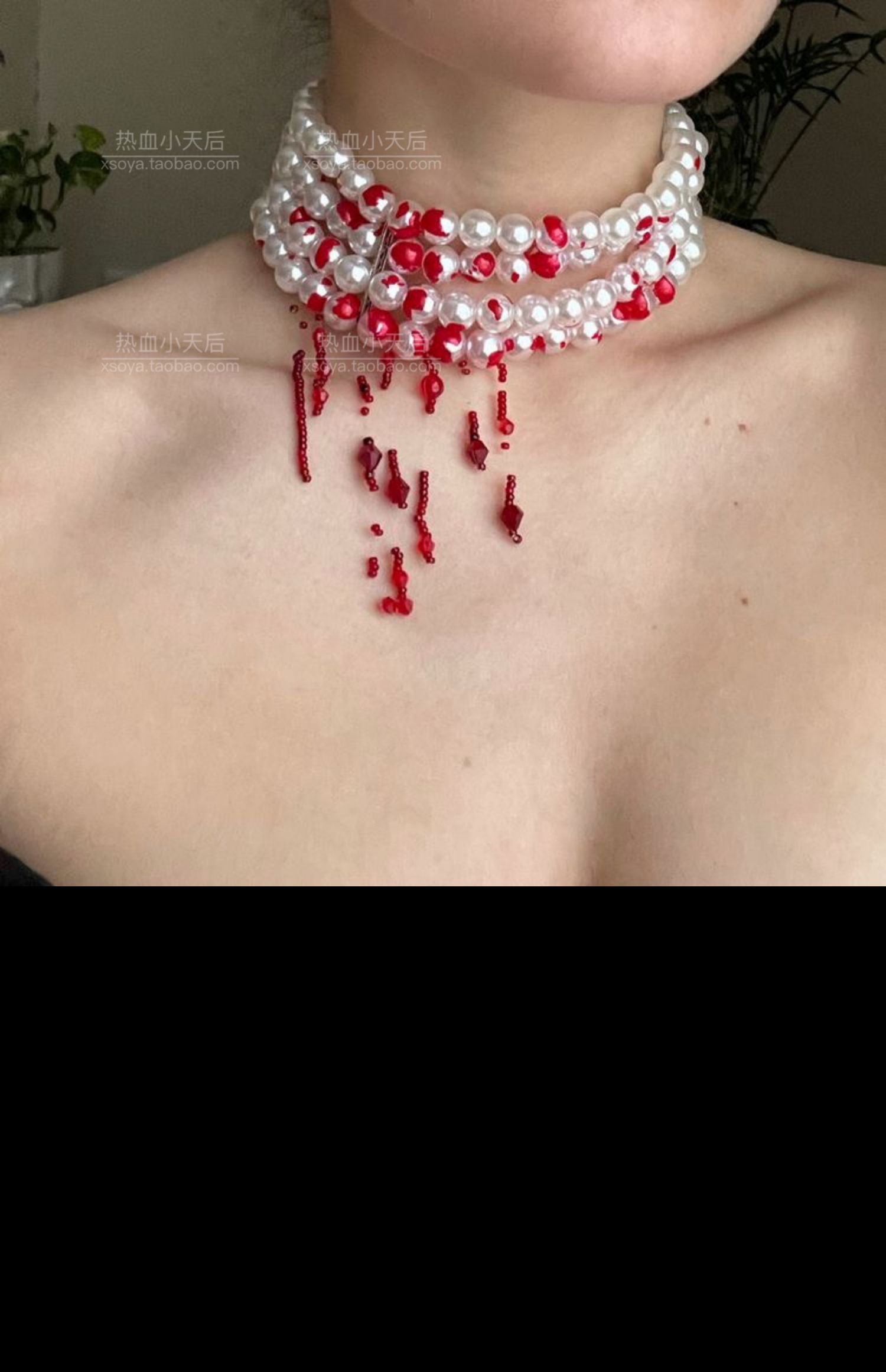 血滴珍珠Y2K炫酷嗜血四層樹脂珍珠紅珠吊墜多層項鏈頸鍊CHOKER