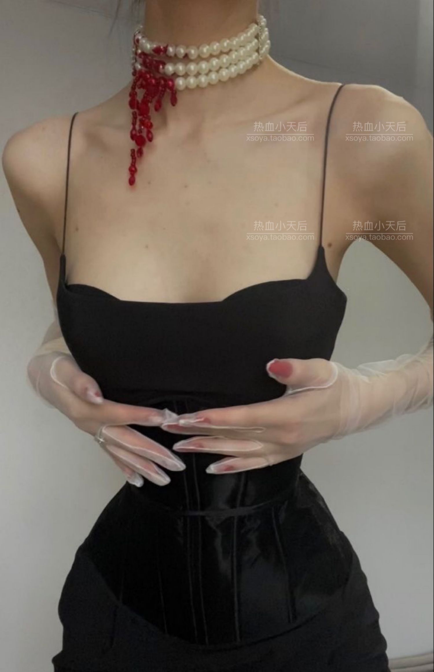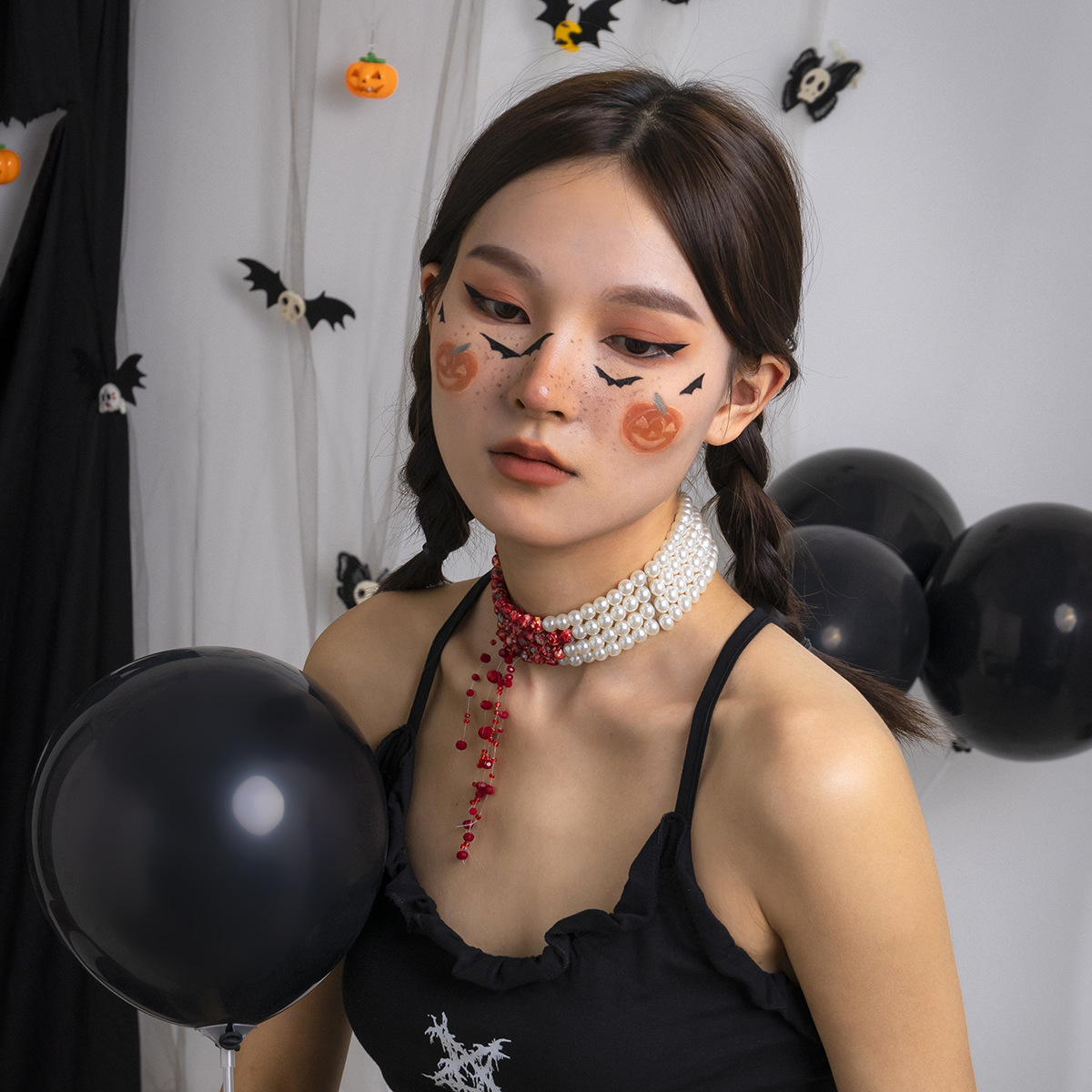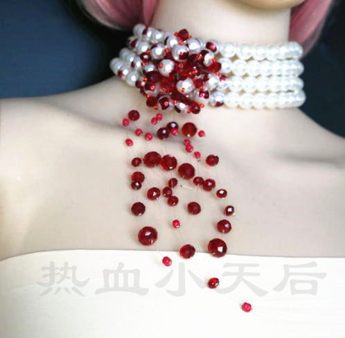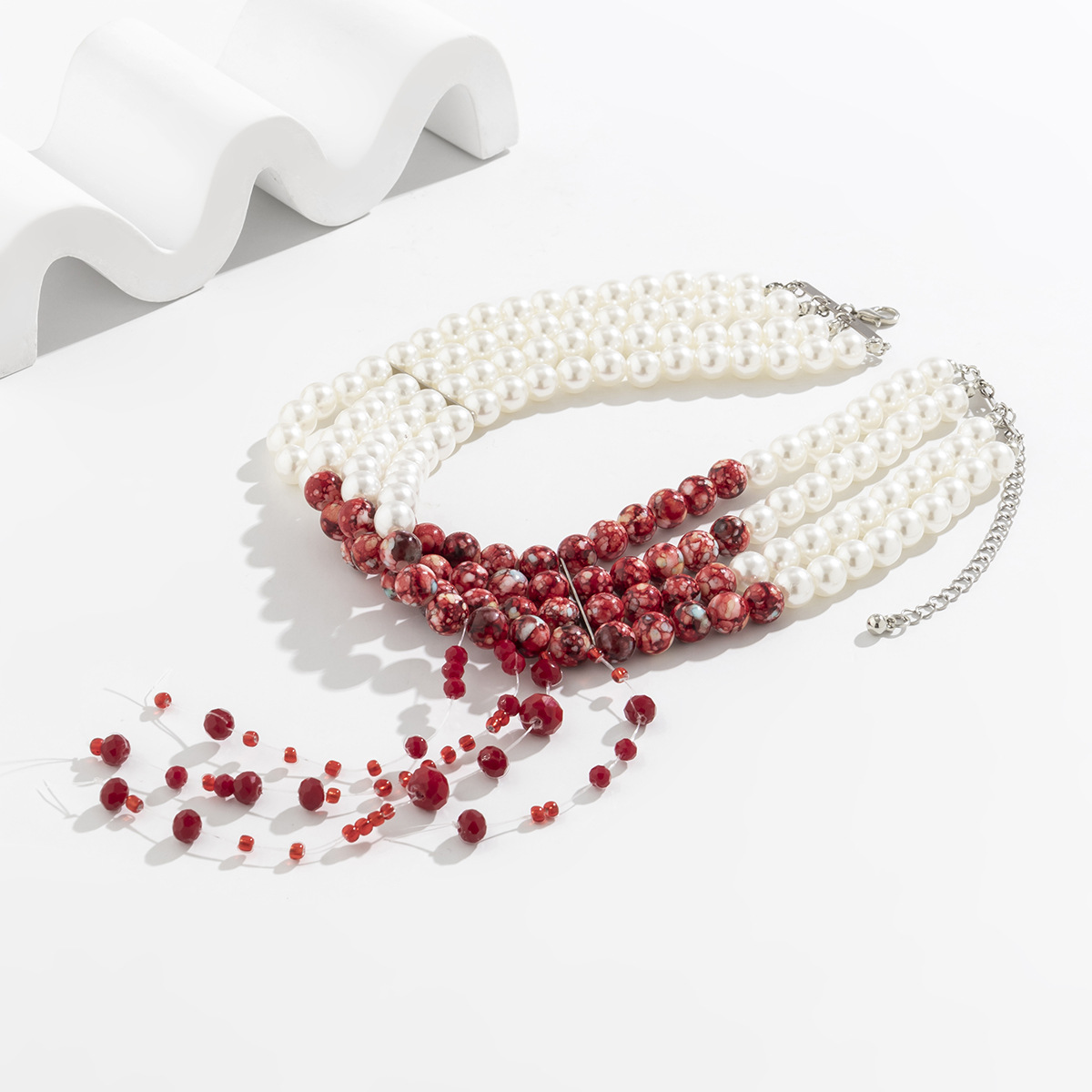 血滴珍珠Y2K炫酷嗜血四層樹脂珍珠紅珠吊墜多層項鏈頸鍊CHOKER