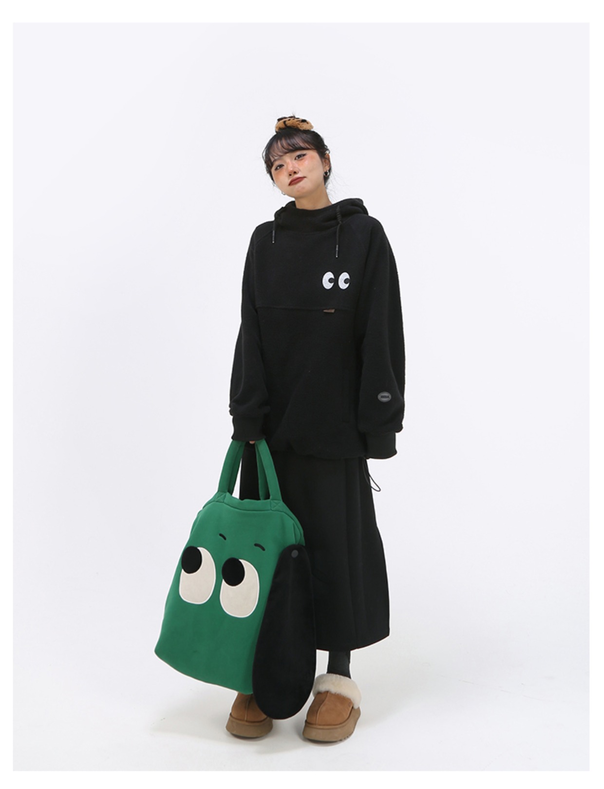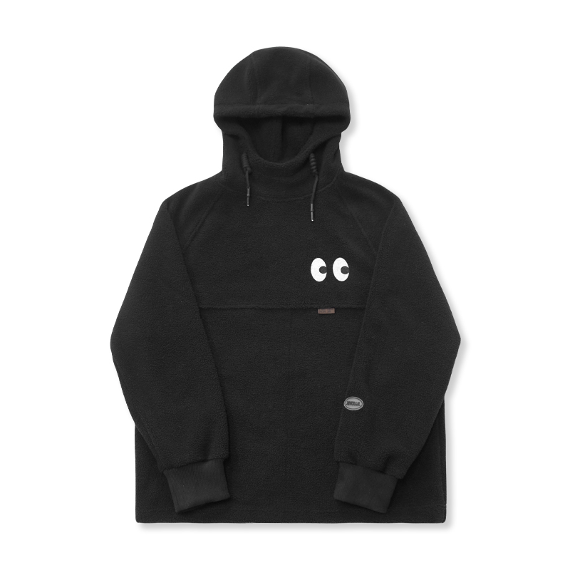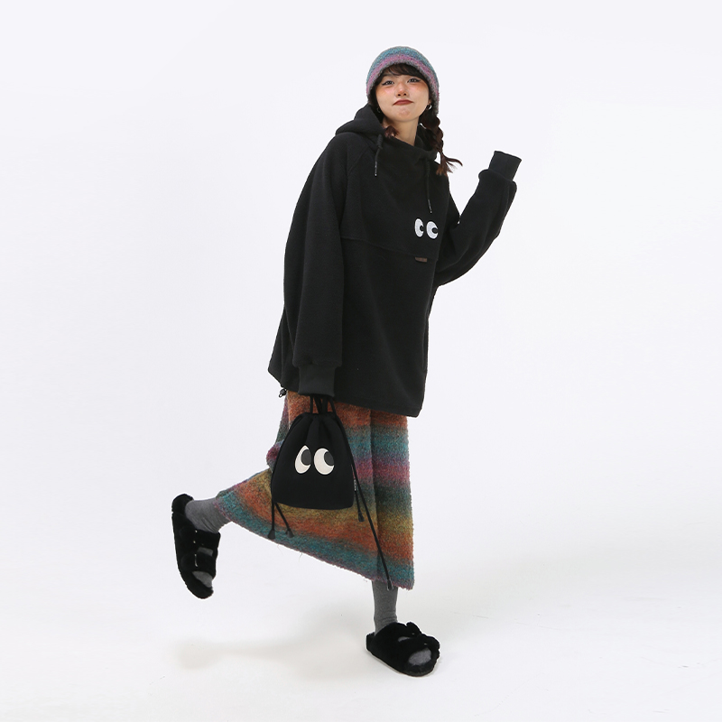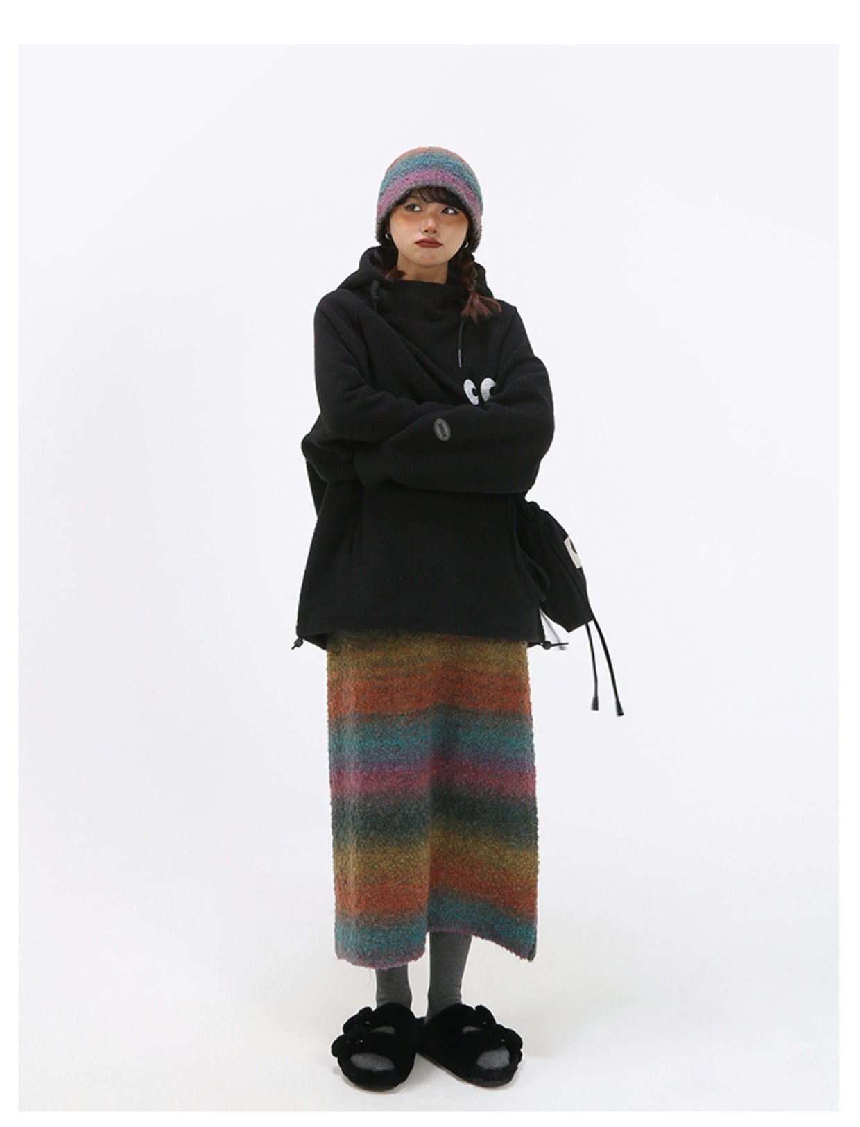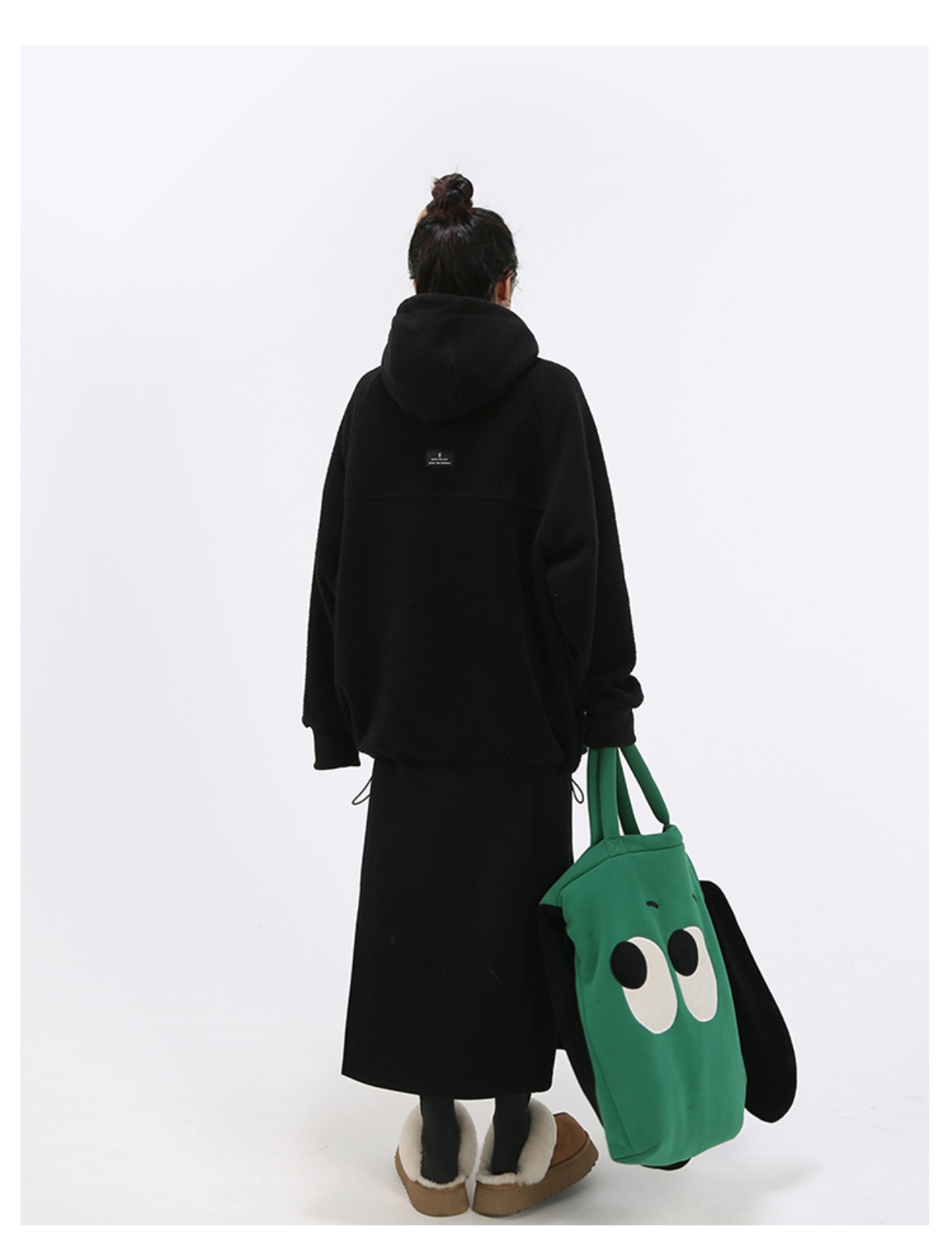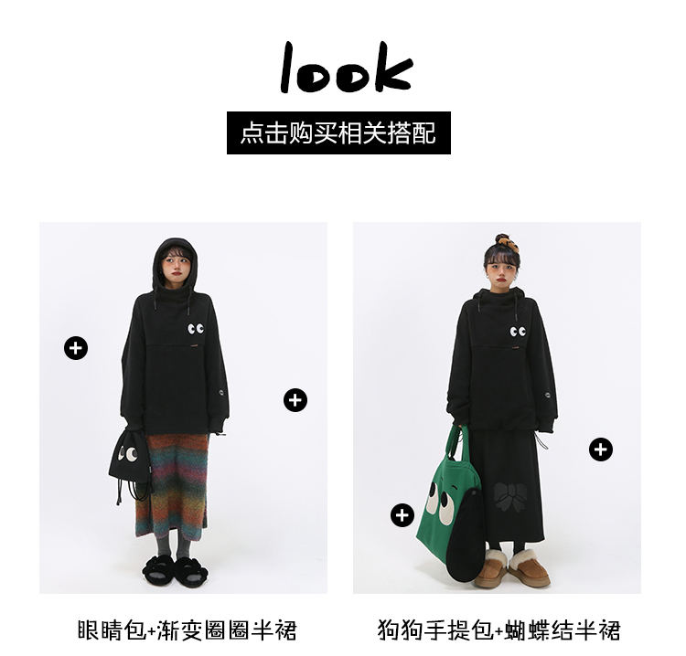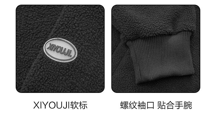 嬉遊記原創2023冬新款黑色寬鬆搖粒絨連帽運動衫女加絨保暖休閒上衣