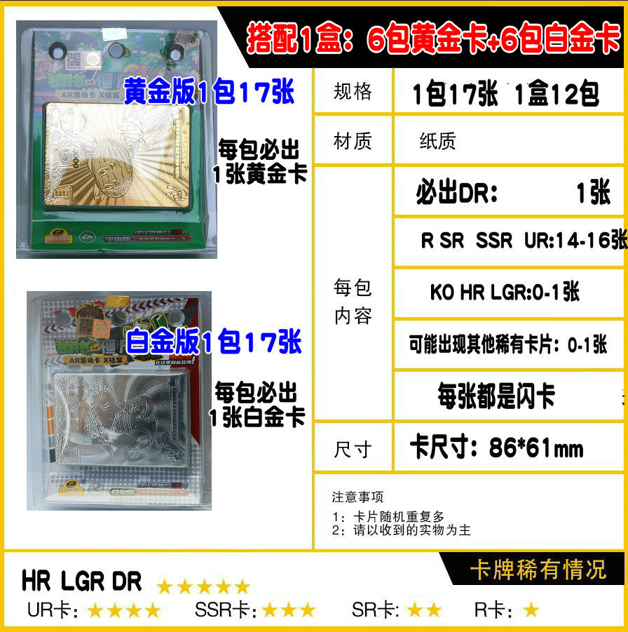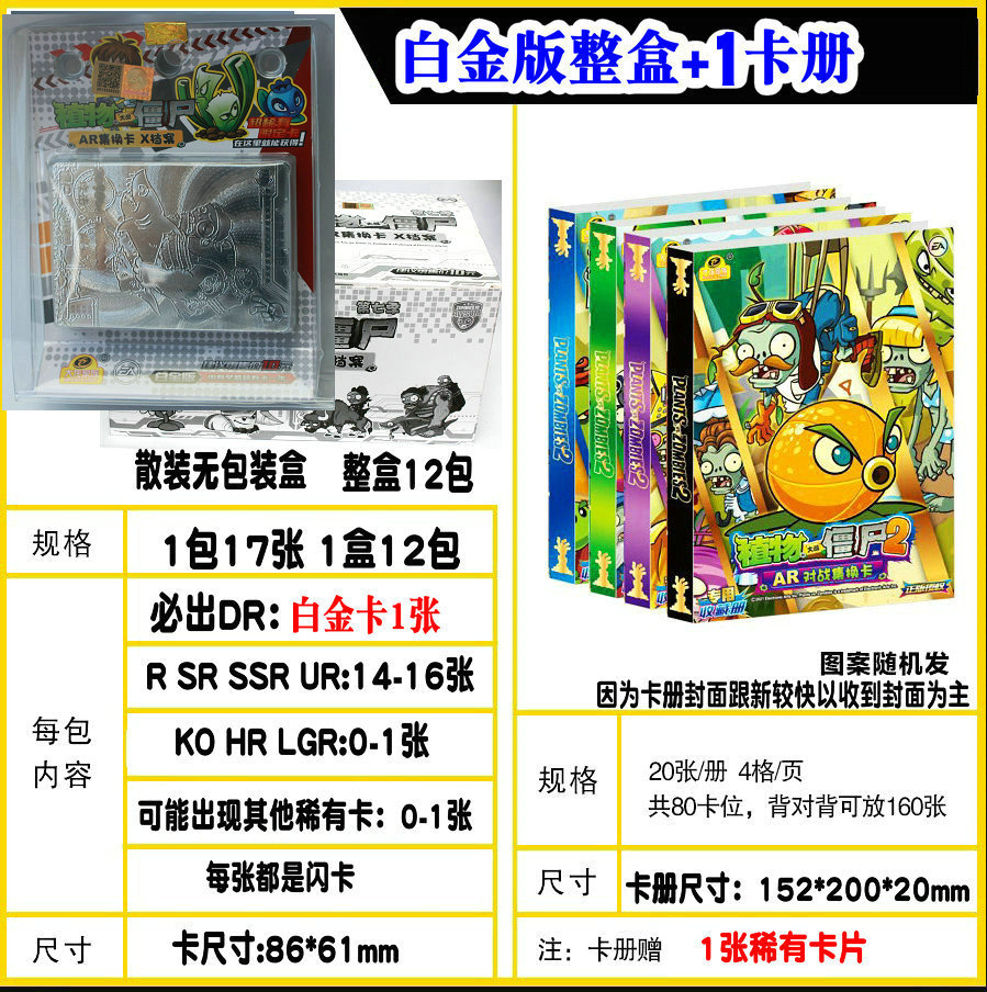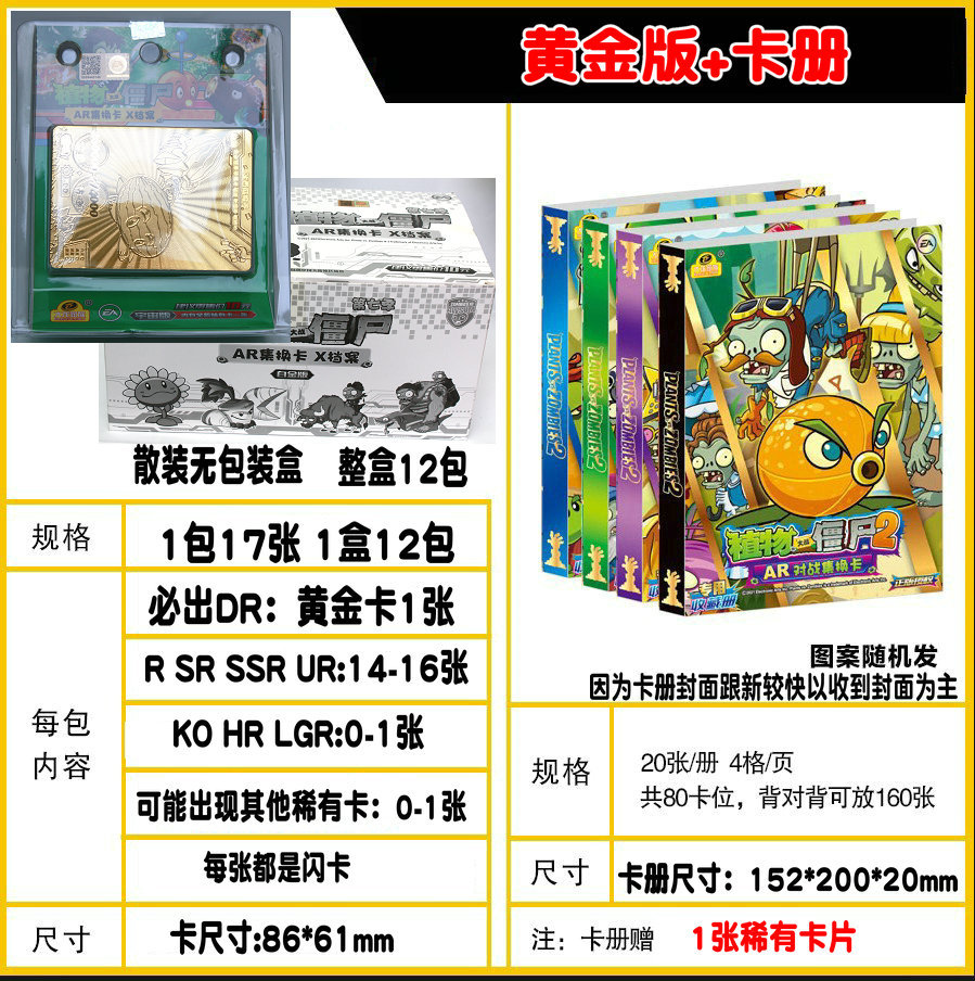正版植物大战僵尸卡片白金版黄金卡立体AR扫描对战卡牌卡册装卡片