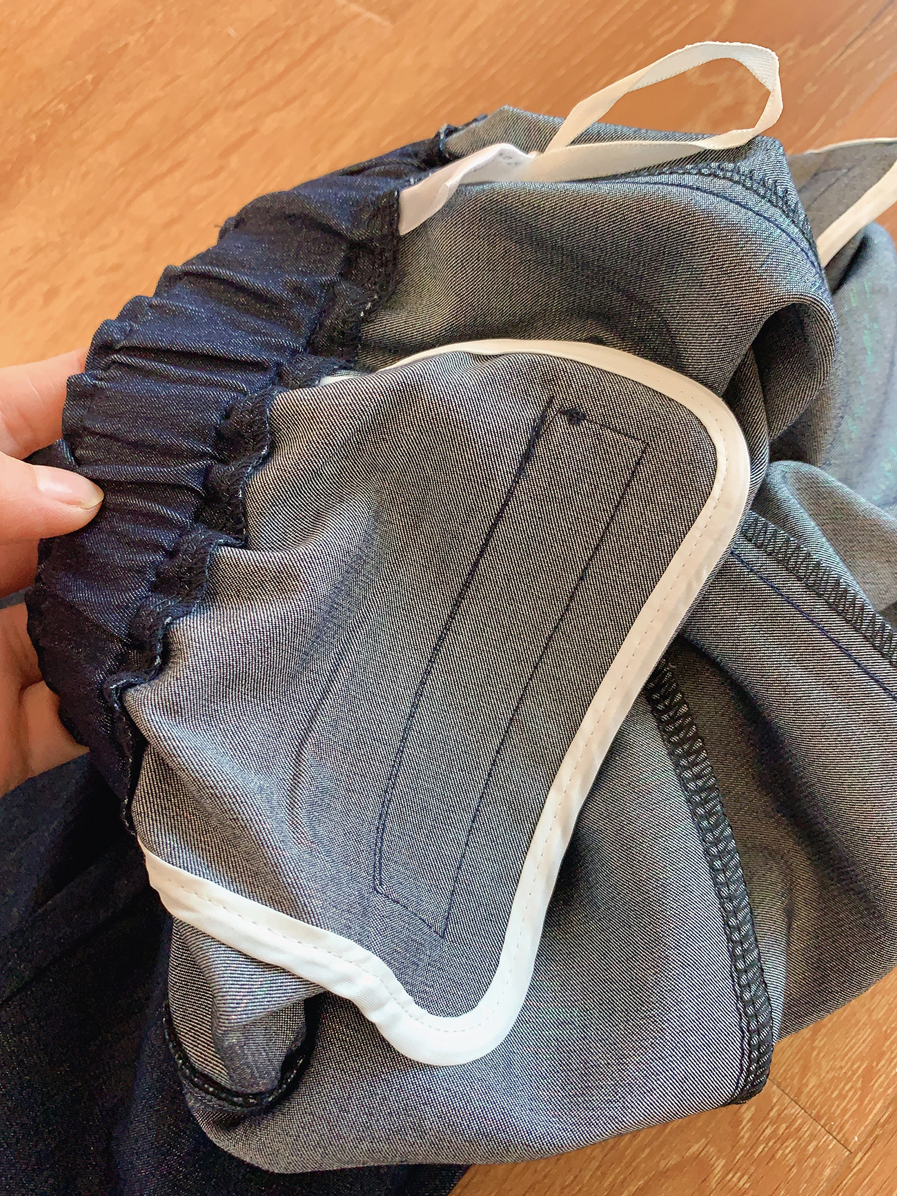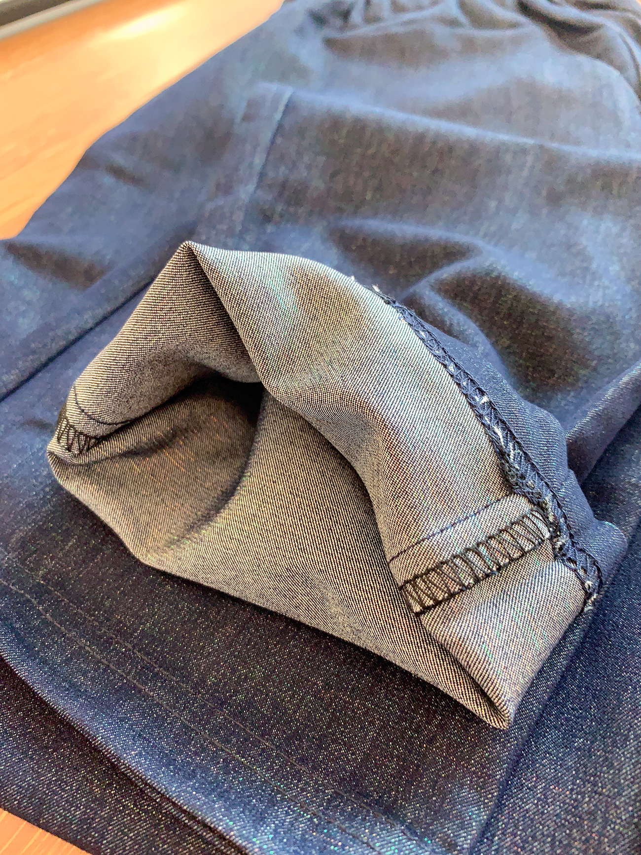 这个裤子面料特殊之处在于,面料从里到外,都低调奢华的暗闪。
