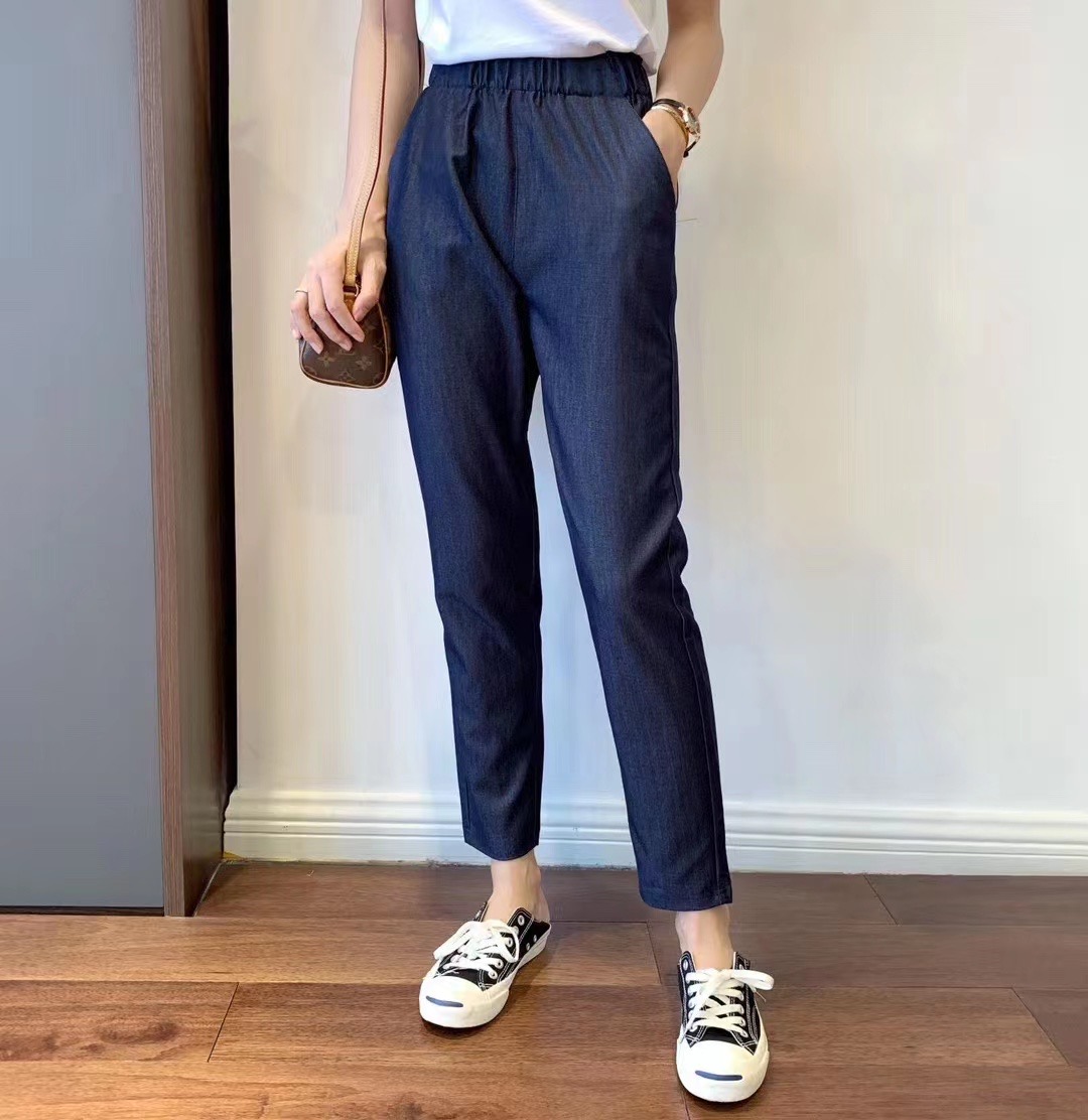 放心囤~定製面料!夏薄款天絲面料休閒九分褲女彈力鬆緊腰大尺碼女