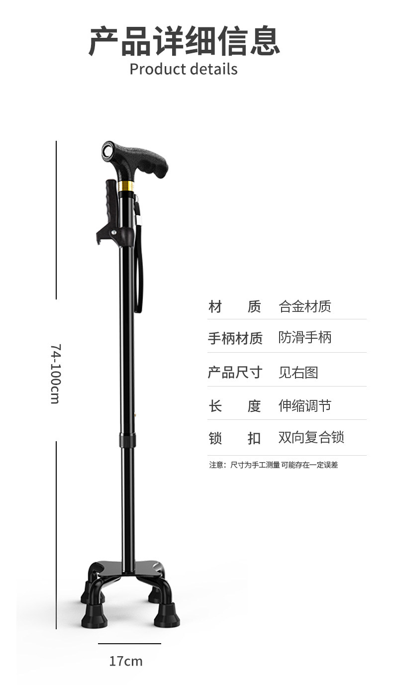 顏色分類 設計:【穩定三角設計,使用不晃動,行走更穩定】 推薦:【90%老人需要帶燈款,夜間走路看得見更安全】 防滑兩用款(無燈+防滑手柄)單腳+旋轉小四腳 防滑兩用款(無燈+防滑手柄)單腳+穩固大四腳 防滑兩用款(無燈+防滑手柄)單腳+固定小四腳 黑色防滑兩用(帶燈+防滑按摩手柄)旋轉小四腳+單腳 酒紅防滑兩用(帶燈+防滑按摩手柄)旋轉小四腳+單腳 黑色防滑兩用(扶手+帶燈防滑手柄)旋轉小四腳+單腳 酒紅防滑兩用(扶手+帶燈防滑手柄)旋轉小四腳+單腳 黑色防滑兩用(帶燈+防滑按摩手柄)穩固大四腳+單腳 酒紅防滑兩用(帶燈+防滑按摩手柄)穩固大四腳+單腳 黑色防滑兩用(扶手+帶燈防滑手柄)穩固大四腳+單腳 酒紅防滑兩用(扶手+帶燈防滑手柄)穩固大四腳+單腳 黑色防滑兩用(帶燈+防滑按摩手柄)固定小四腳+單腳 酒紅防滑兩用(帶燈+防滑按摩手柄)固定小四腳+單腳 黑色防滑兩用(扶手+帶燈防滑手柄)固定小四腳+單腳 酒紅防滑兩用(扶手+帶燈防滑手柄)固定小四腳+單腳 三用全配款(強光+舒適手柄)單腳+大四腳+小四腳 三用酒紅款(強光+舒適手柄)單腳+大四腳+小四腳 三用扶手款(強光+舒適手柄)單腳+大四腳+小四腳 酒紅扶手款(強光+舒適手柄)單腳+大四腳+小四腳 智能兩用款(強光+報警+紅外警示燈)單腳+小四腳 智能三用款(強光+報警+紅外警示燈)單腳+大四腳+小四腳
