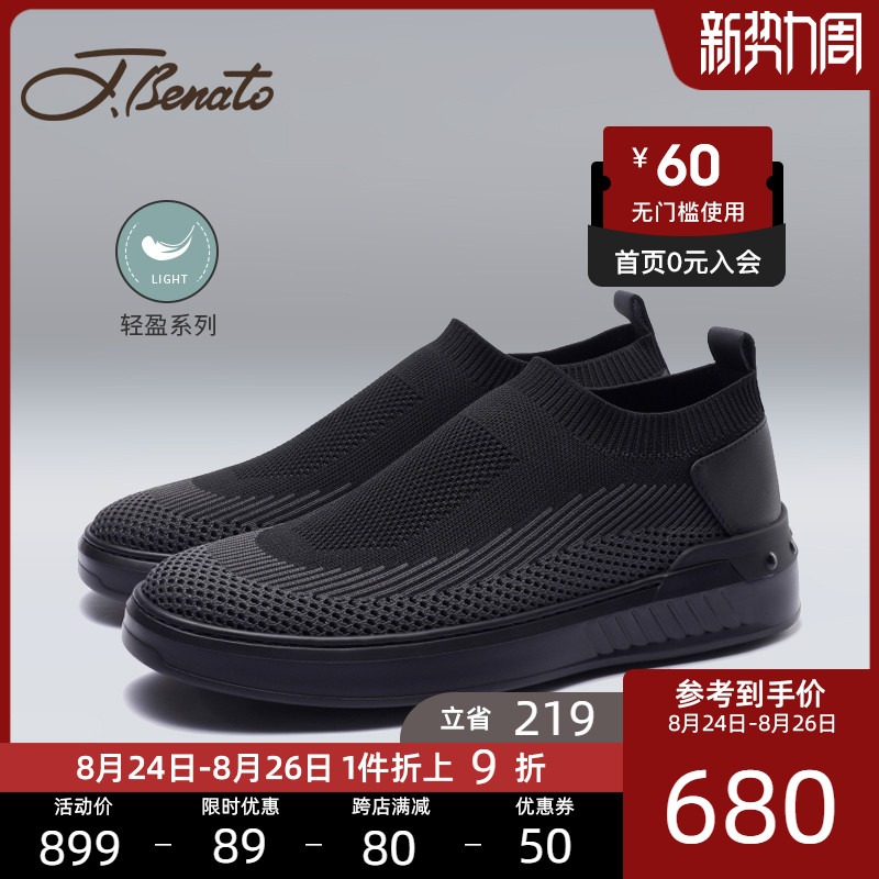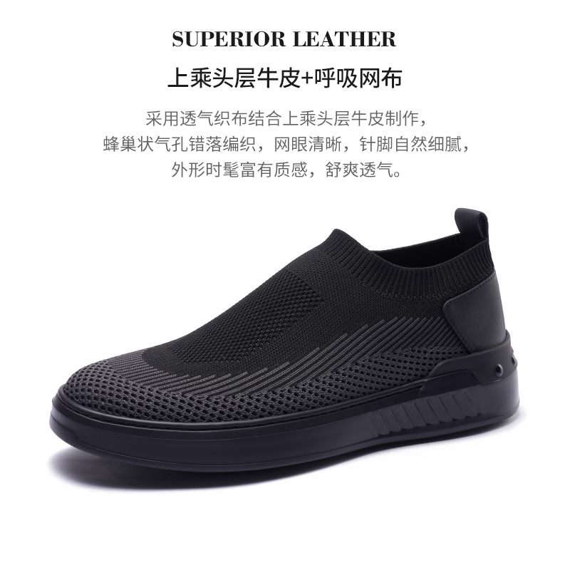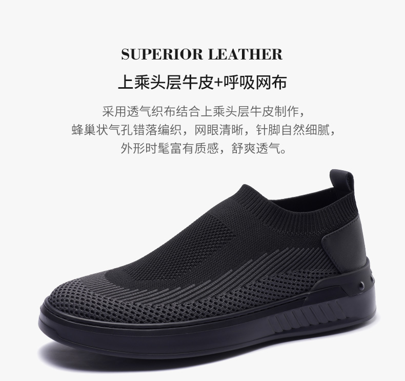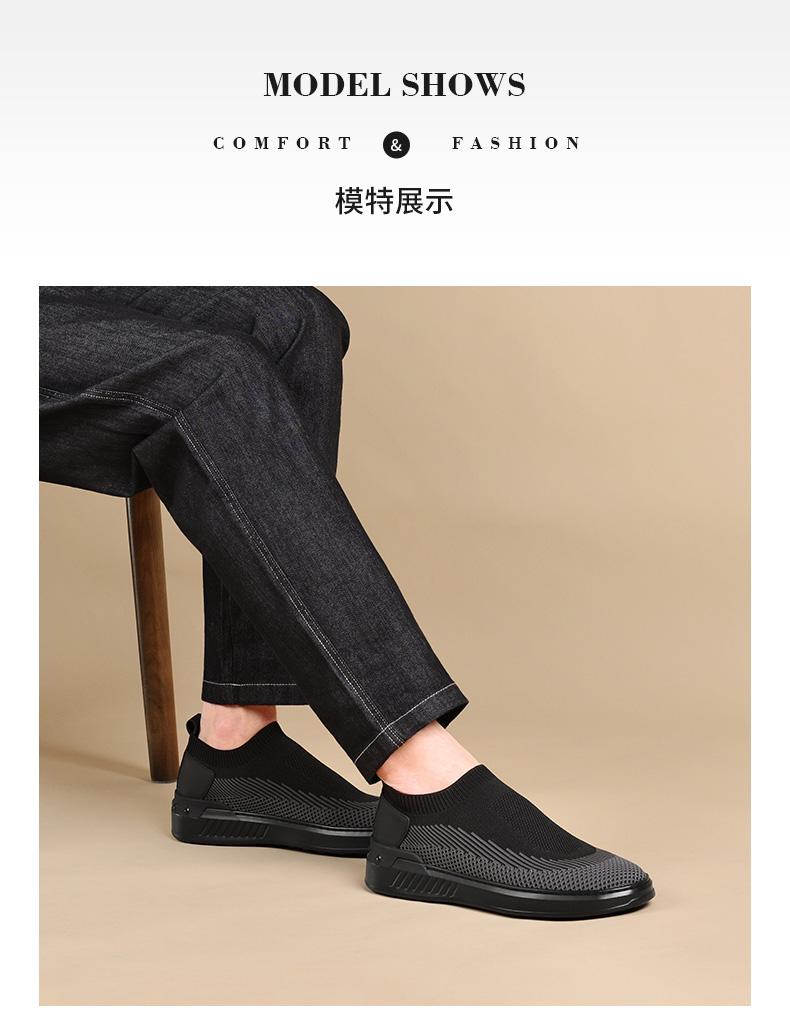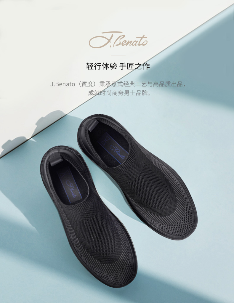 jbenato賓度男鞋男士網面鞋男透氣輕便套腳飛織軟底休閒鞋春夏季