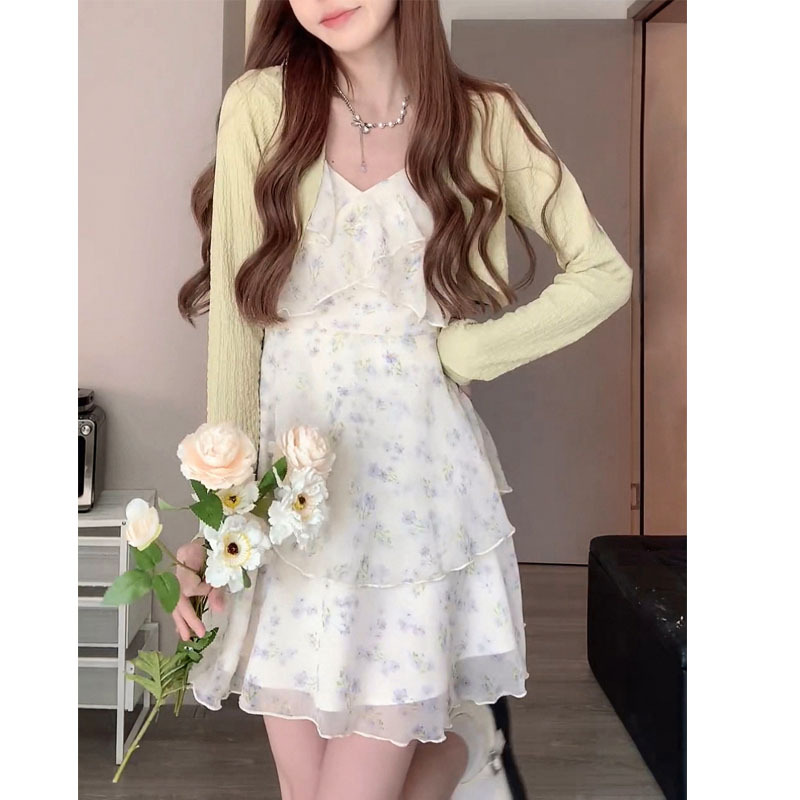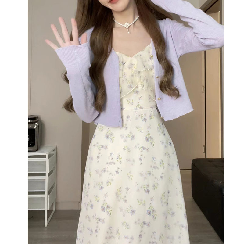 颜色 短款碎花裙,长款碎花裙,白色开衫