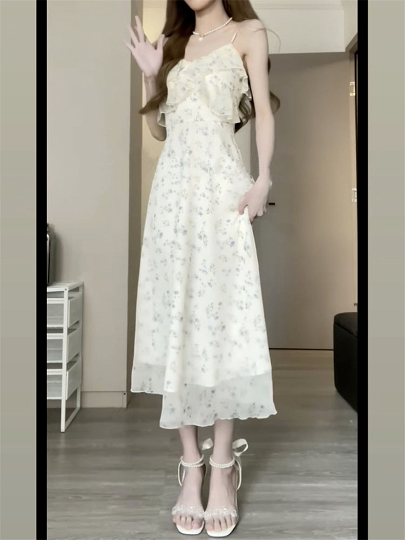 网红 2023夏款茉莉花温柔风碎花吊带连衣裙春季薄款吊带裙子