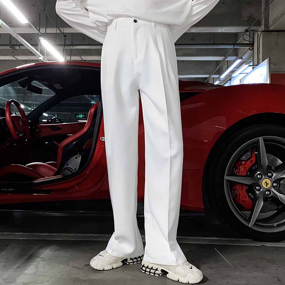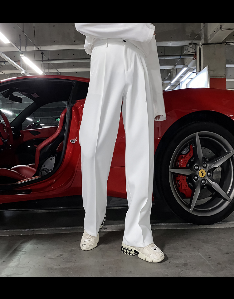 高級感白色褲子男款潮流垂感西裝褲垂墜感男士闊腿寬鬆直筒休閒褲