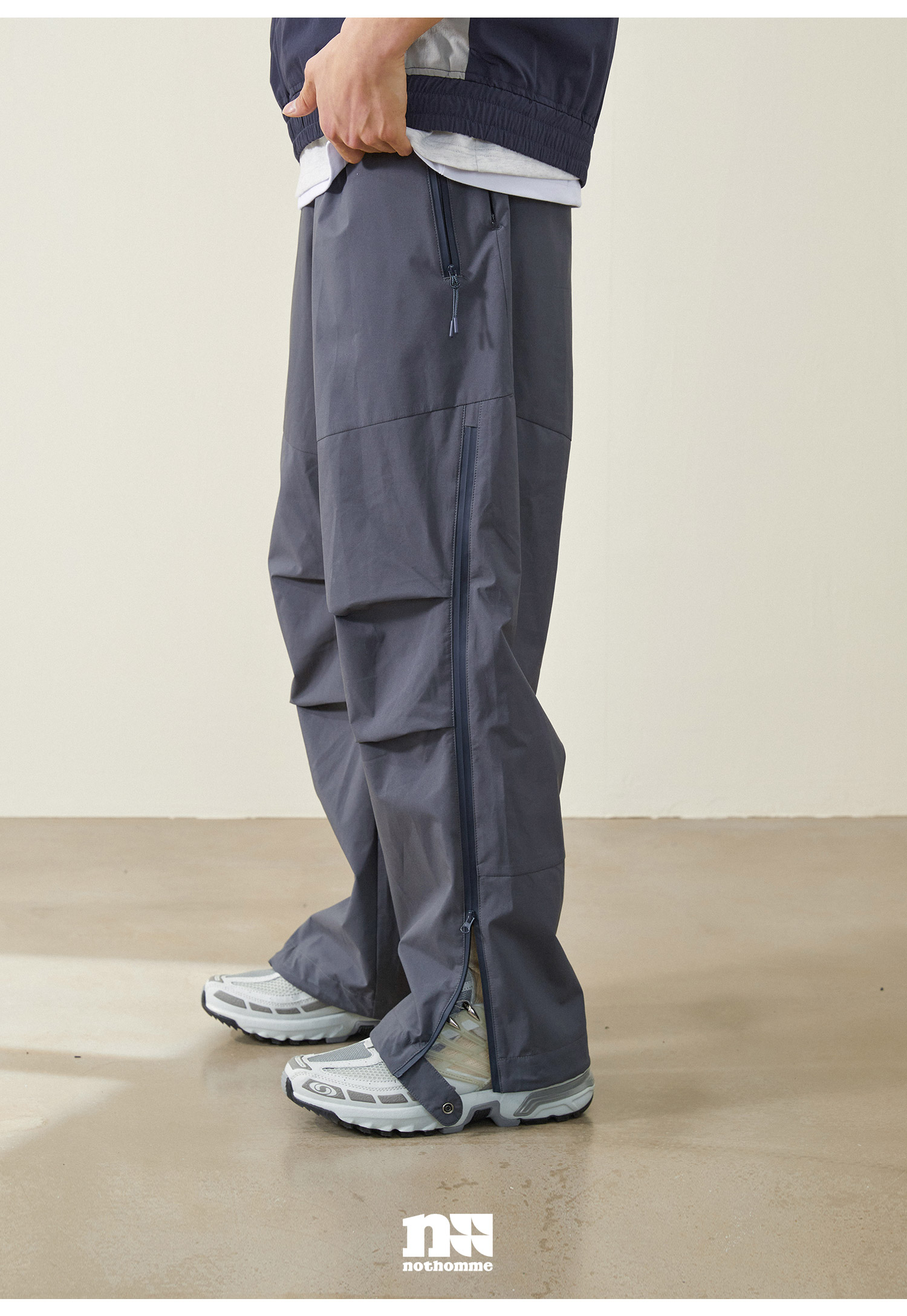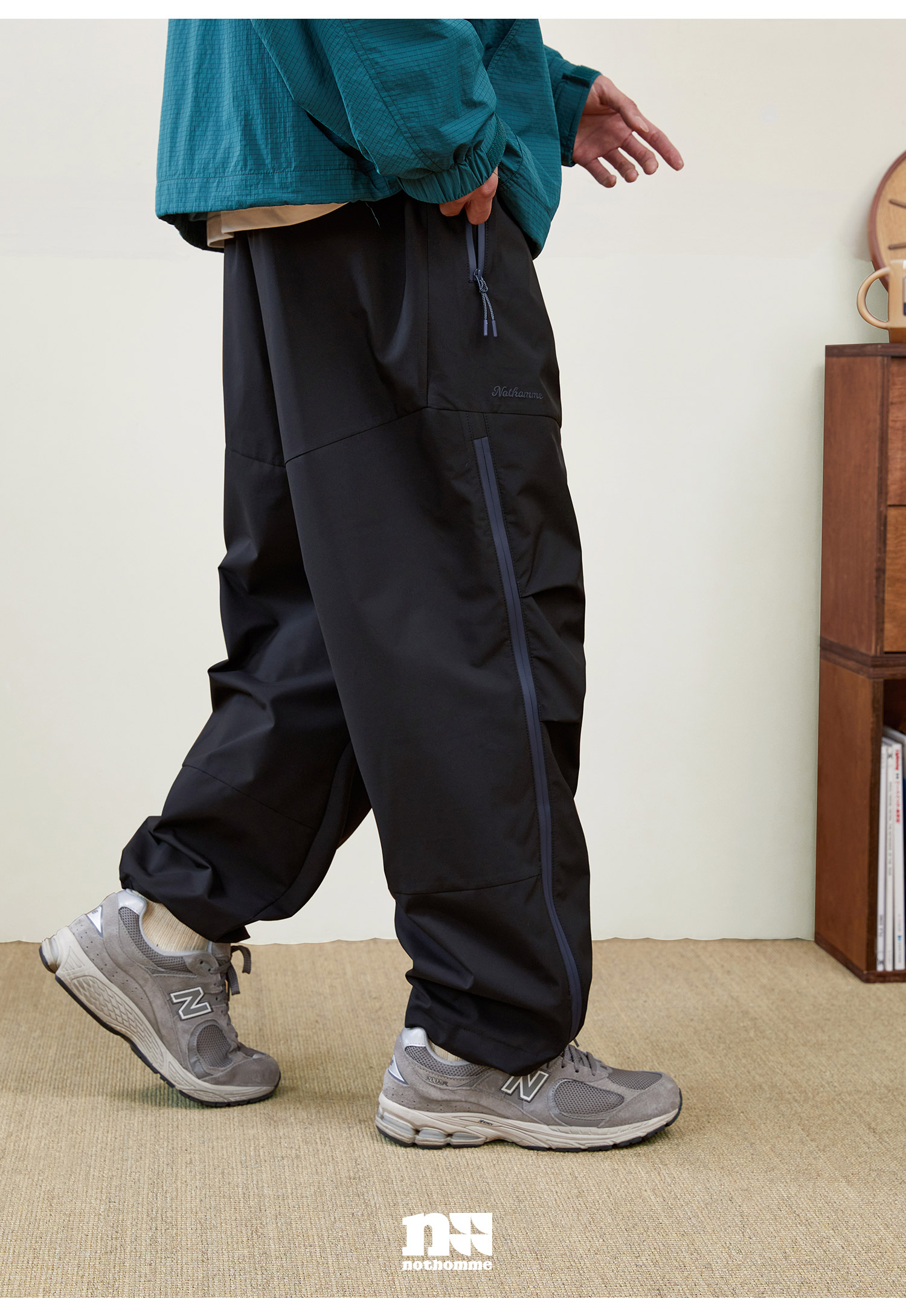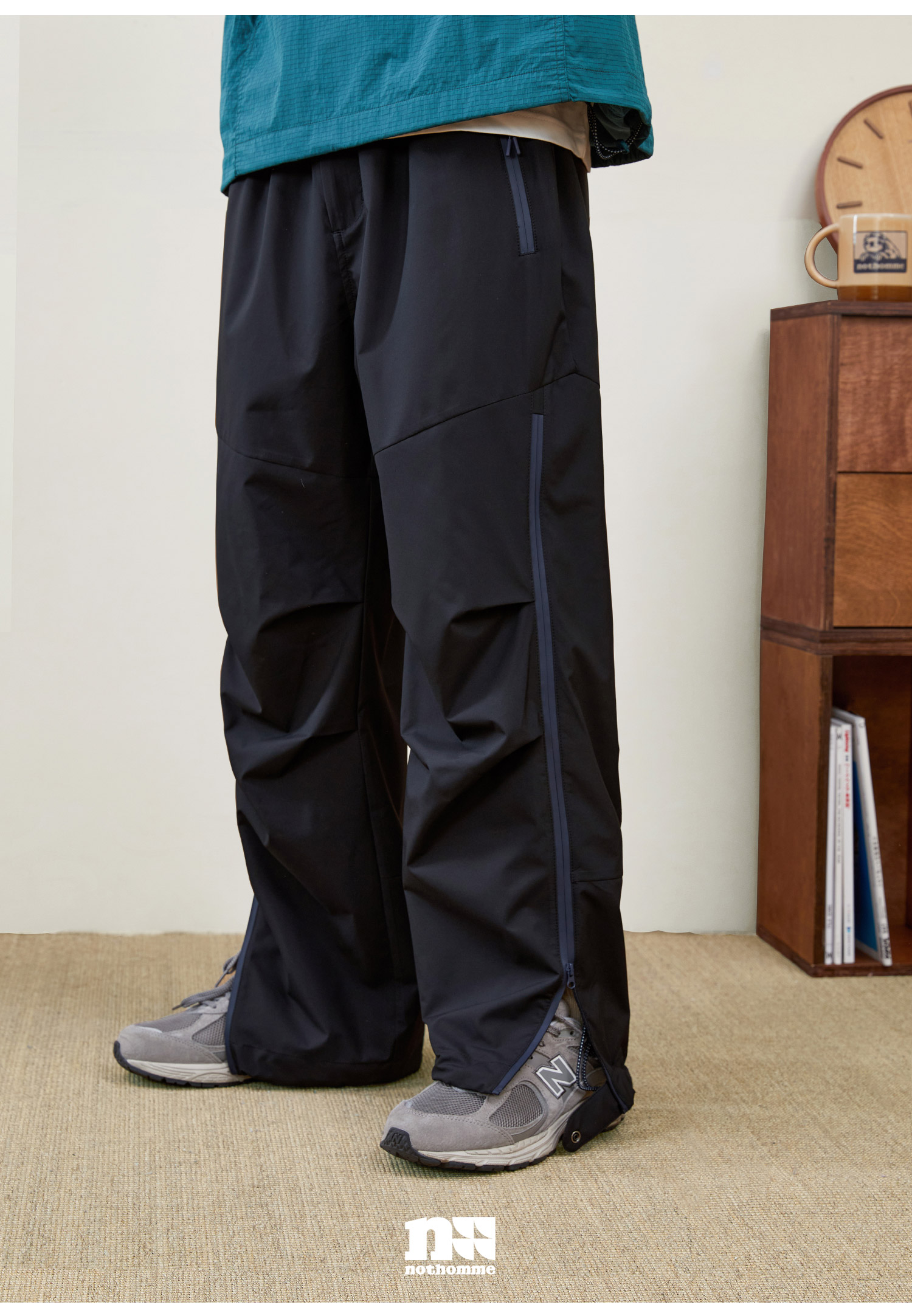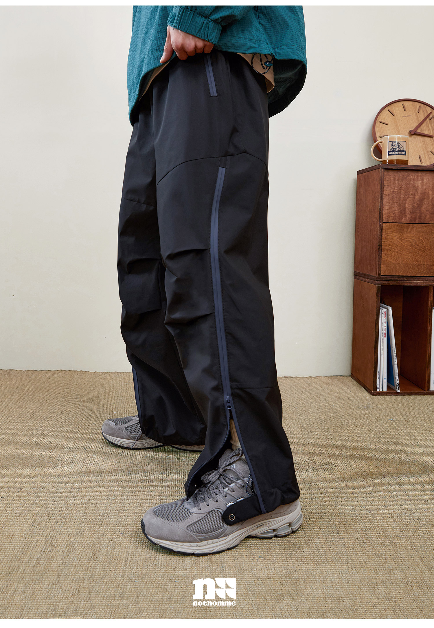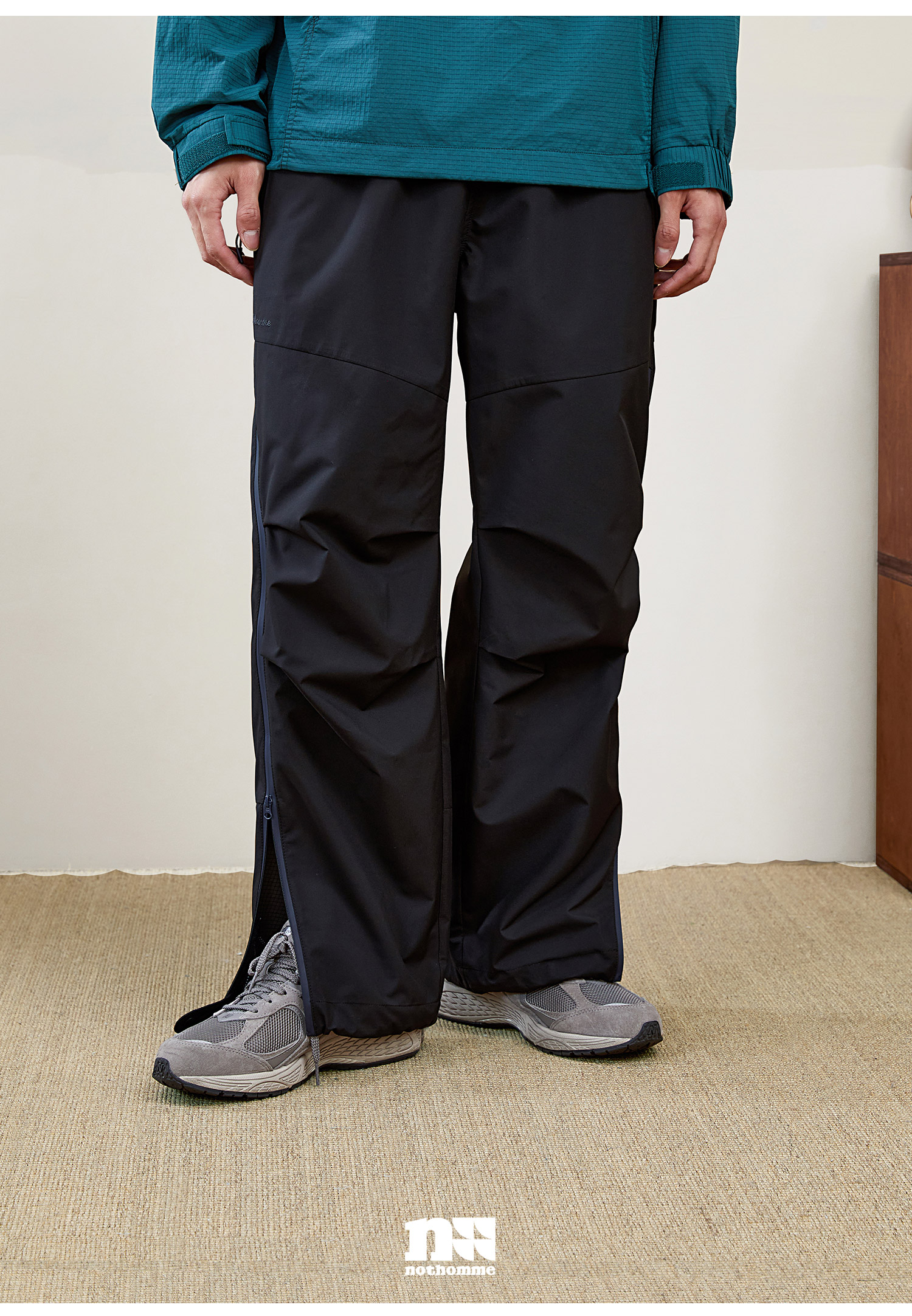 NOTHOMME Teflon三防 日系山系戶外防水拉鍊褲寬鬆直筒休閒長褲男