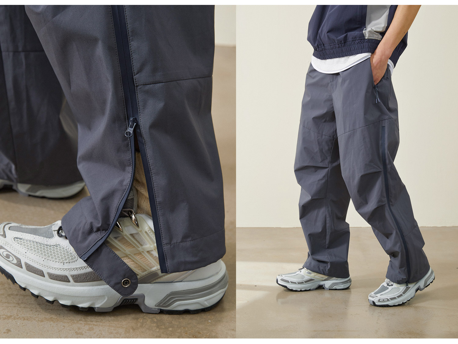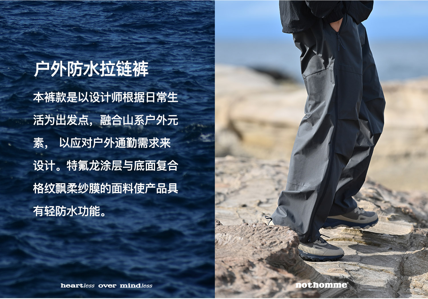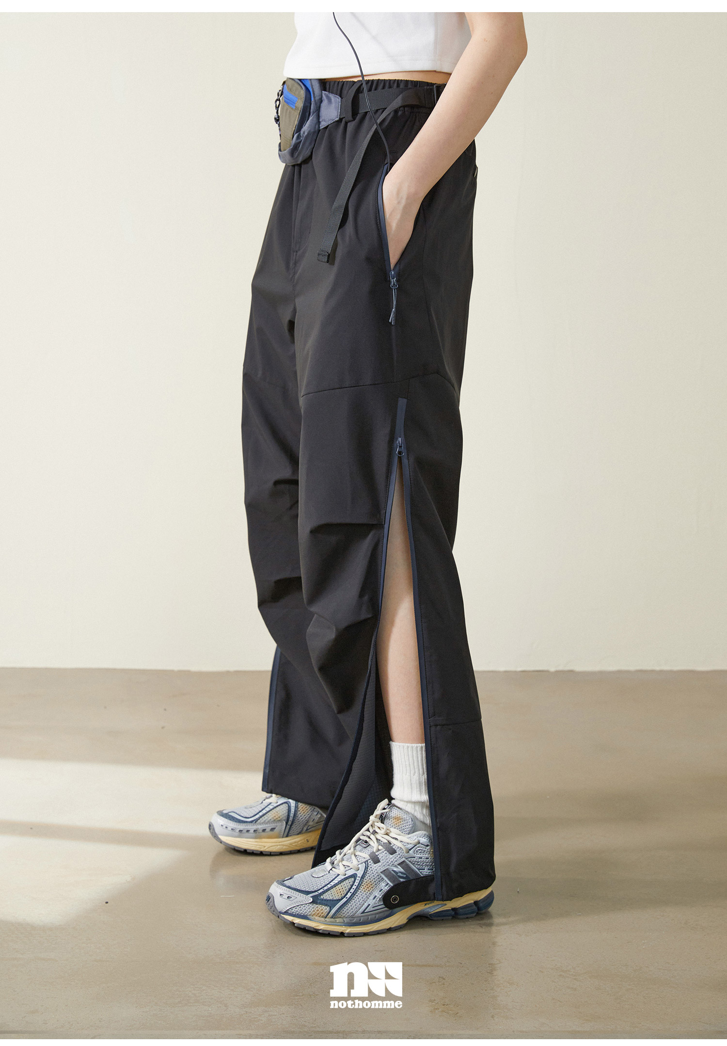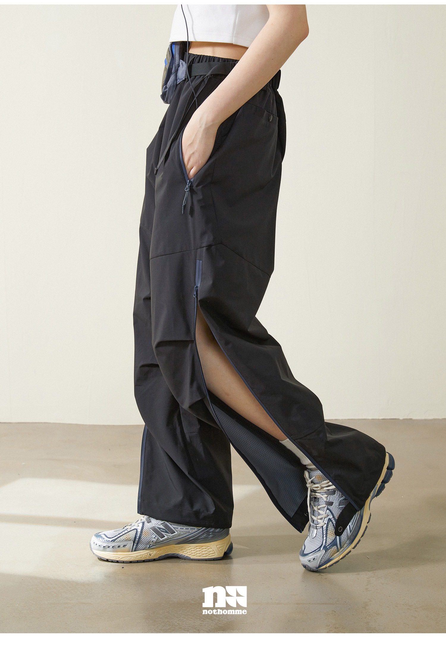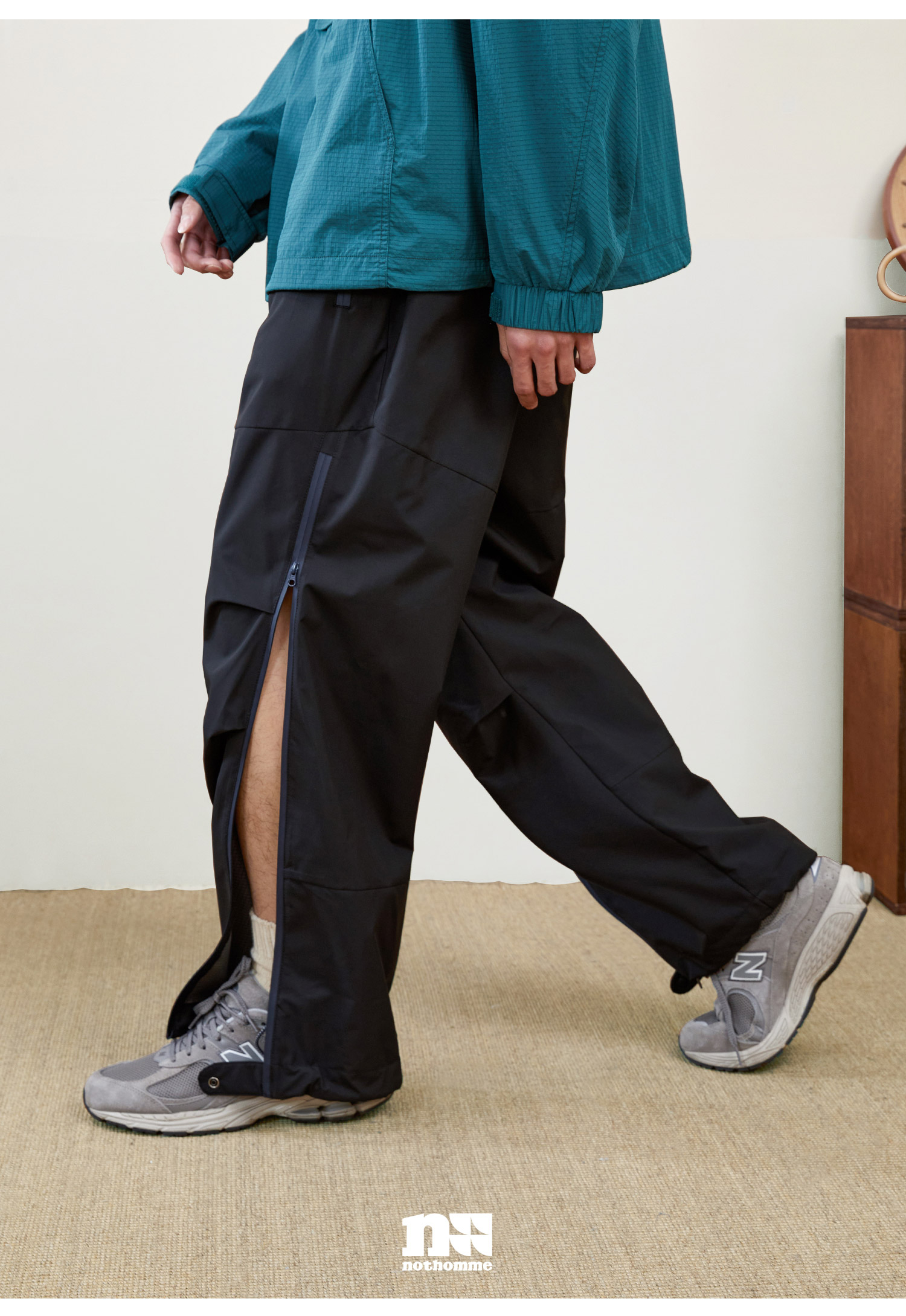 NOTHOMME Teflon三防 日系山系戶外防水拉鍊褲寬鬆直筒休閒長褲男