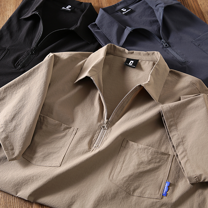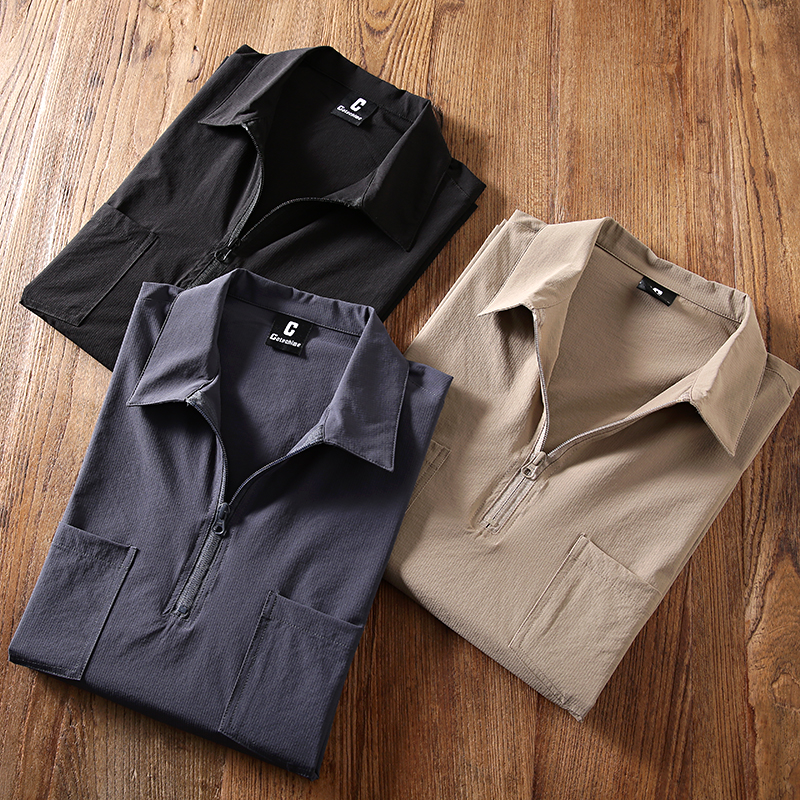 輕量化設計!工裝風速幹四面彈!胸前口袋POLO衫男士休閒拉鍊短袖
